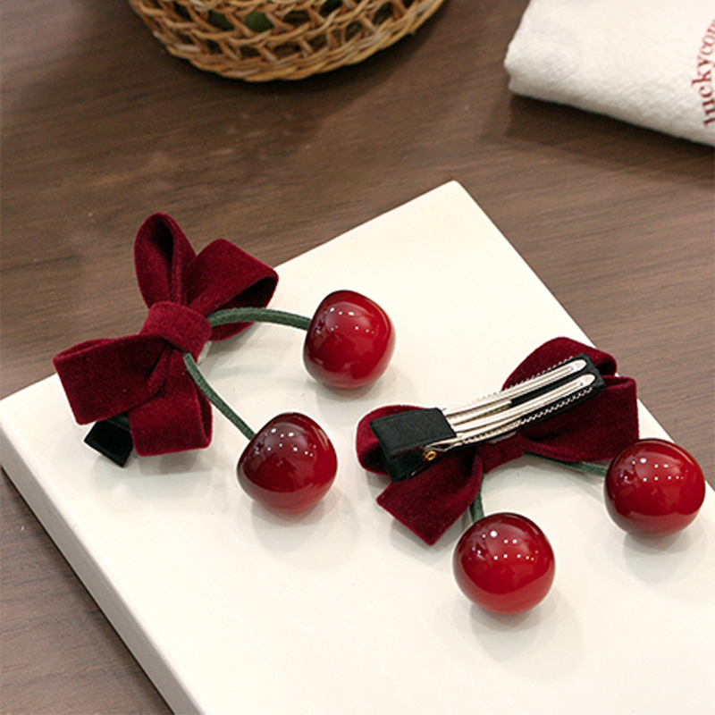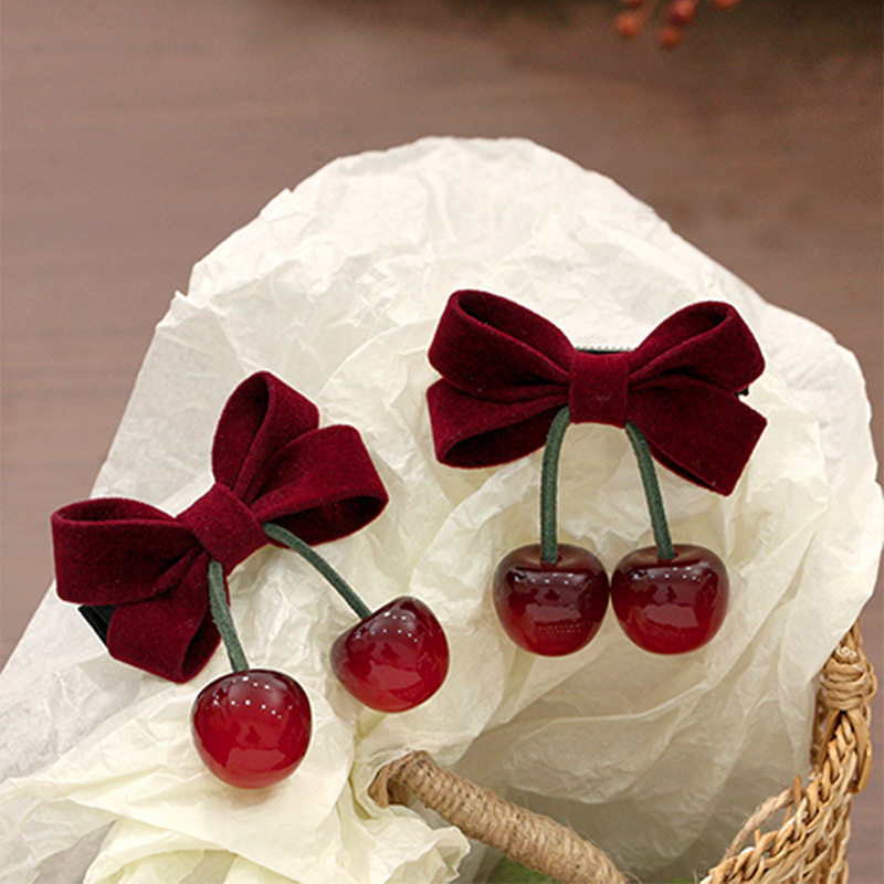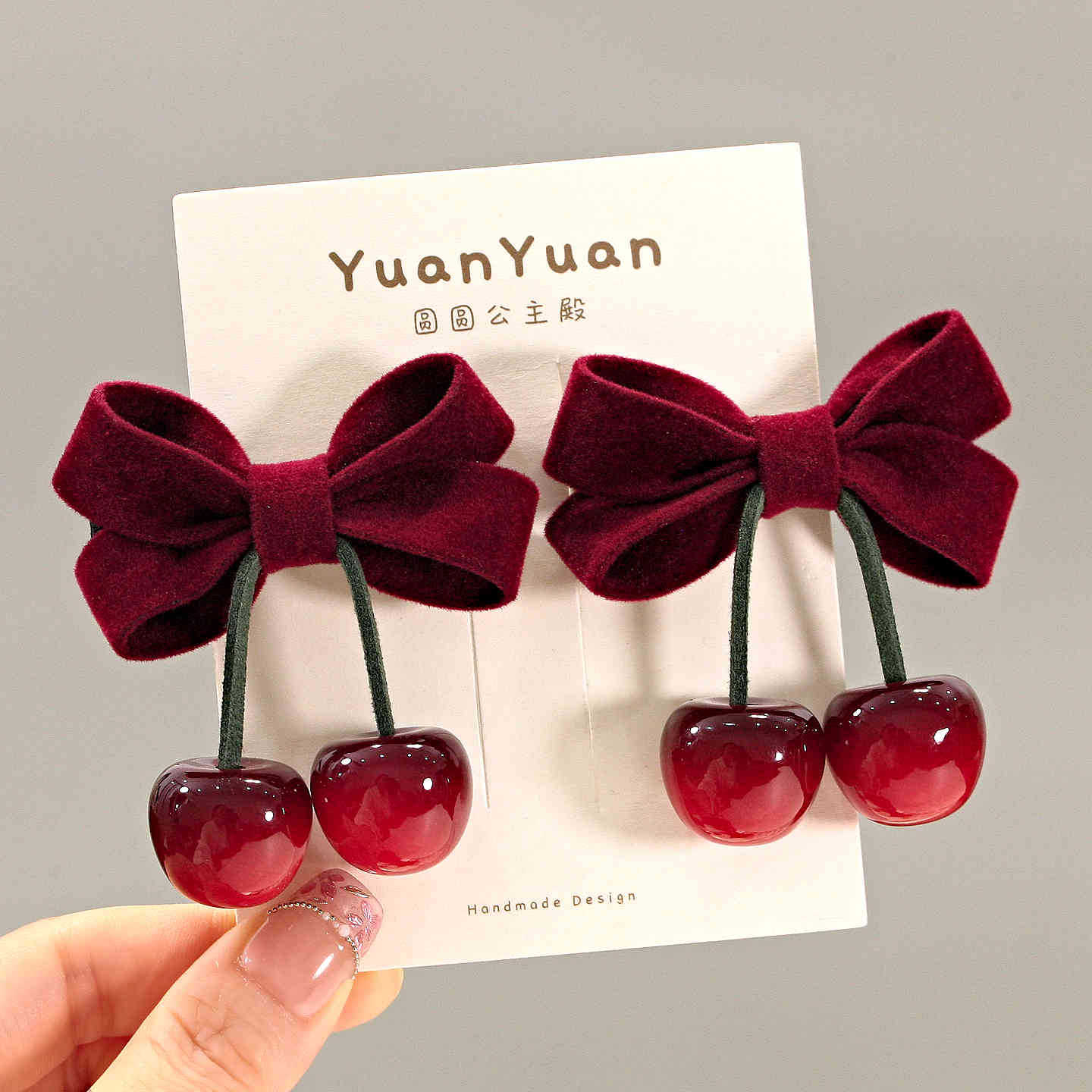春节不打烊【可爱甜妹必备❗️精致小巧百搭】儿童植绒蝴蝶结樱桃发夹头绳女孩扎发丸子头大肠发圈甜美发卡头饰。jc