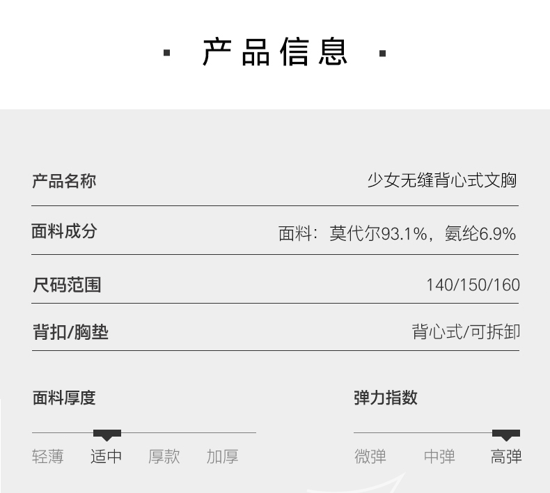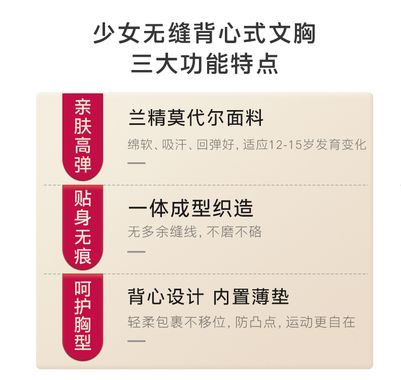 Ubras少女无缝小背心式文胸12-15岁初高中学生内衣无钢圈