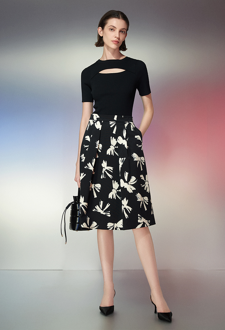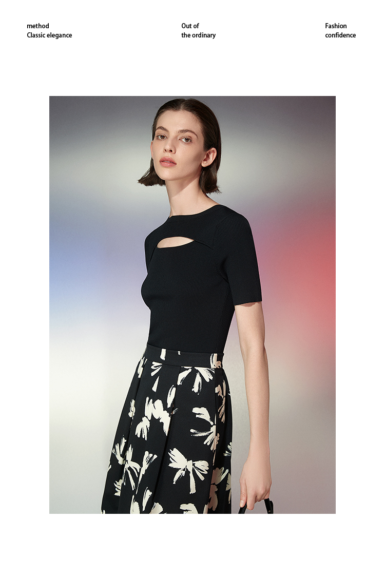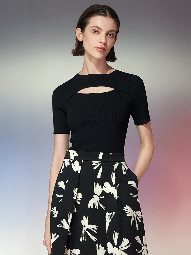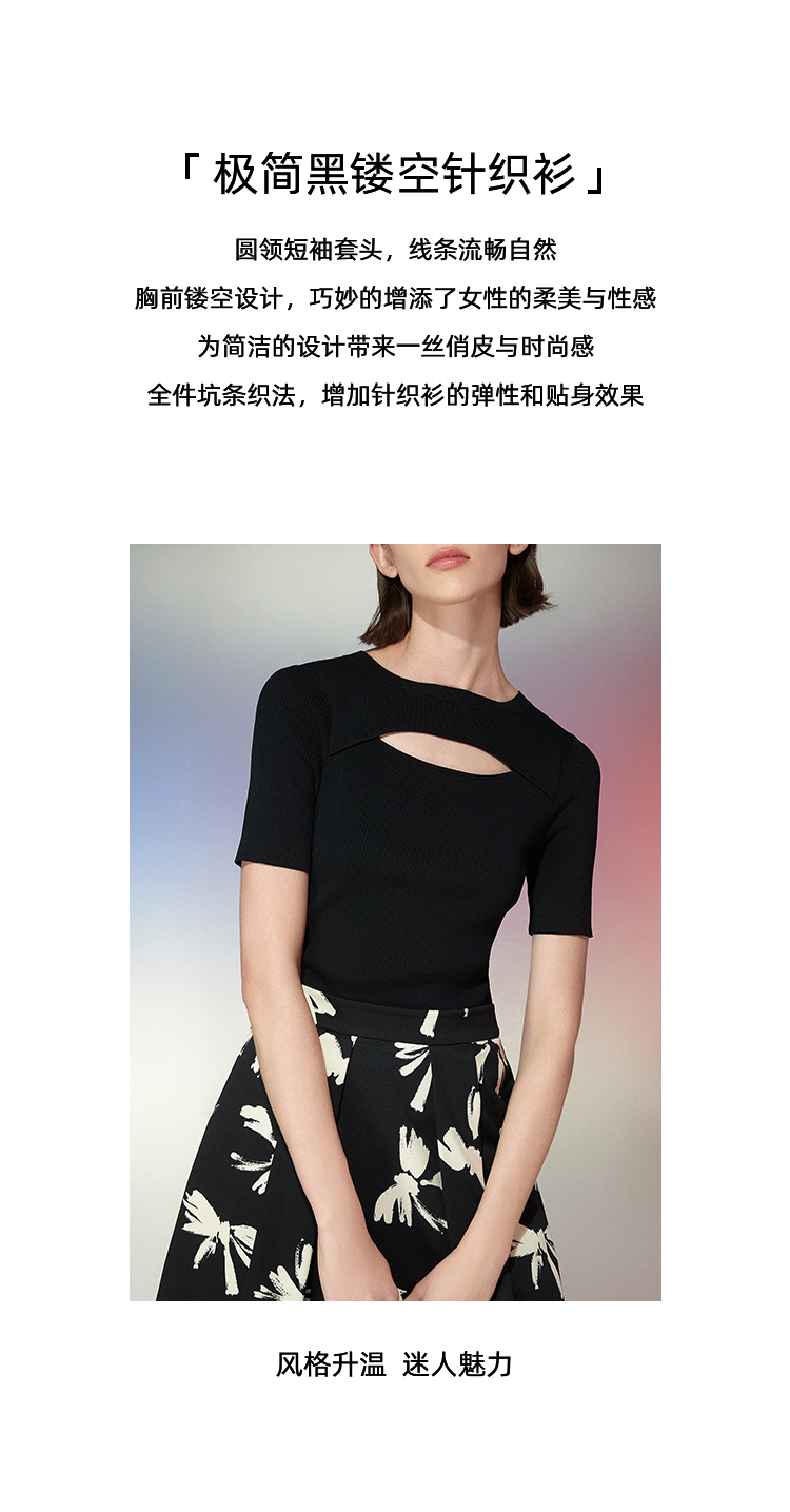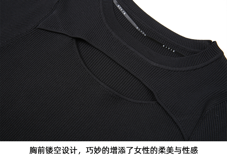 EITIE爱特爱春季新款镂空紧身收腰针织衫上衣7701402