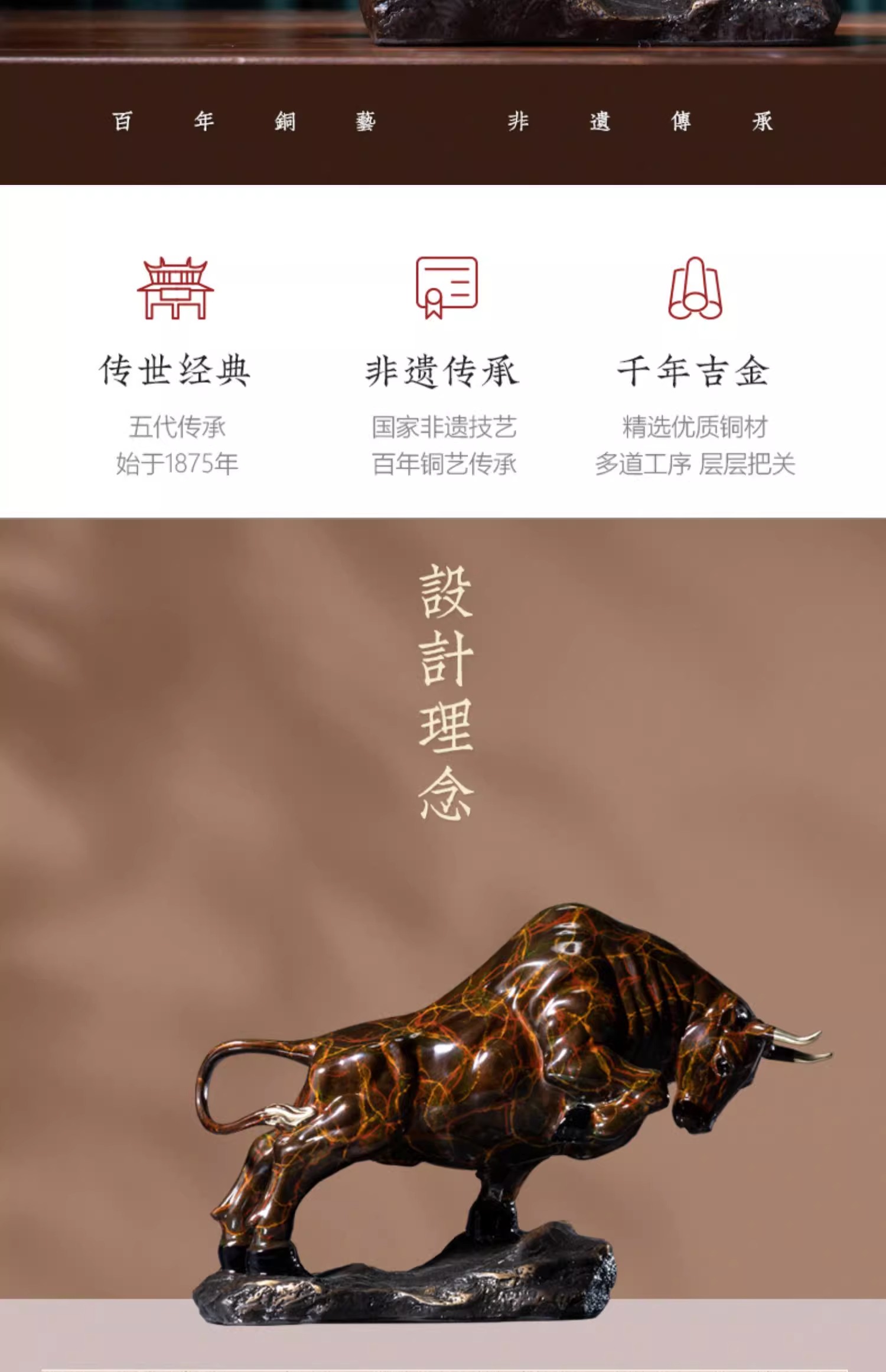 朱炳仁铜大展宏图客厅装饰牛摆件办公桌摆件铜工艺品送人艺术礼品
