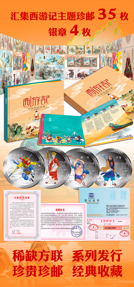 西游记中国传世名著系列 主题珍邮 35枚邮票4枚纪念币珍藏册邮册