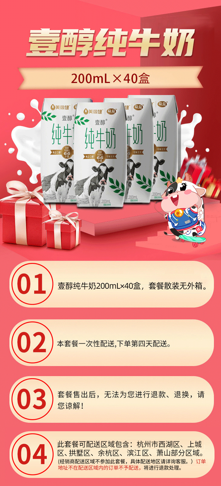 【囤奶】美丽健壹醇200mL钻石包*40盒纯牛奶(散装,一次性配送到家)