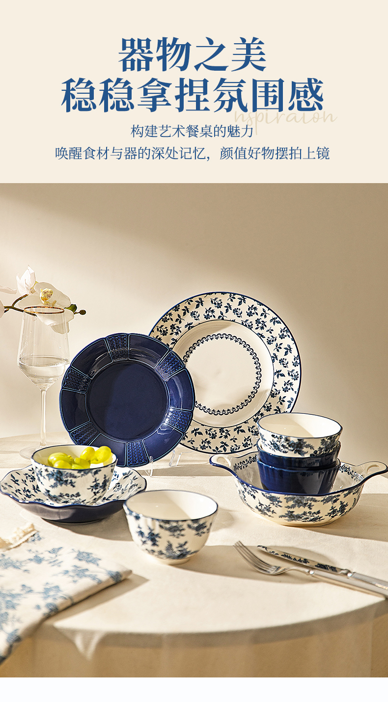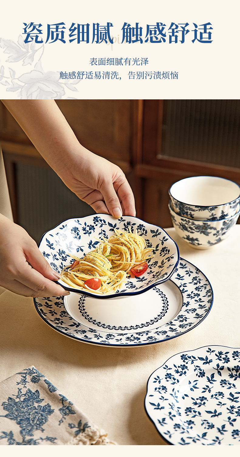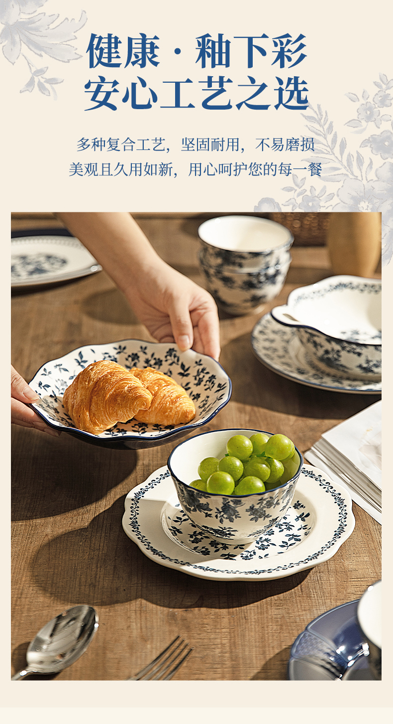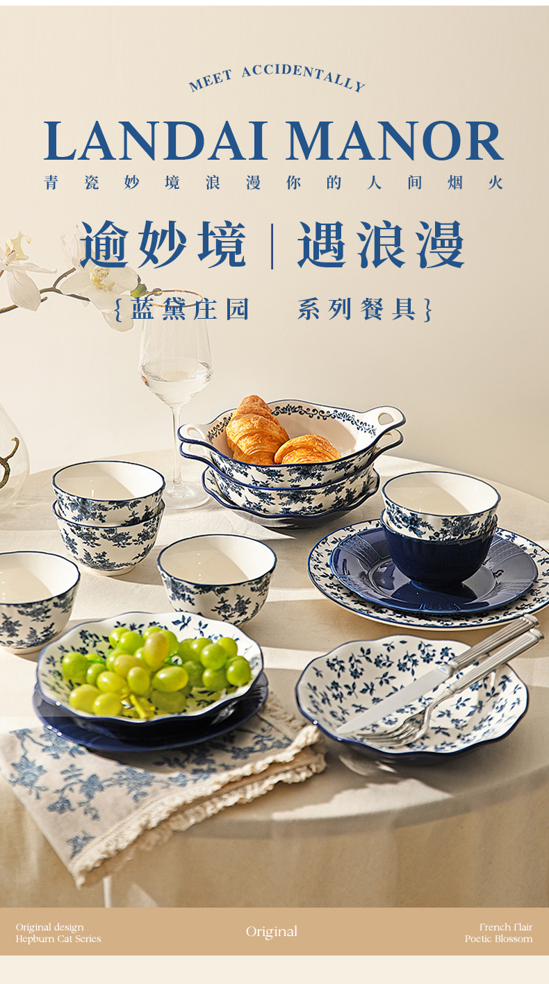 摩登主妇蓝黛庄园釉下彩陶瓷饭碗家用2024新款汤碗高级感餐具盘子