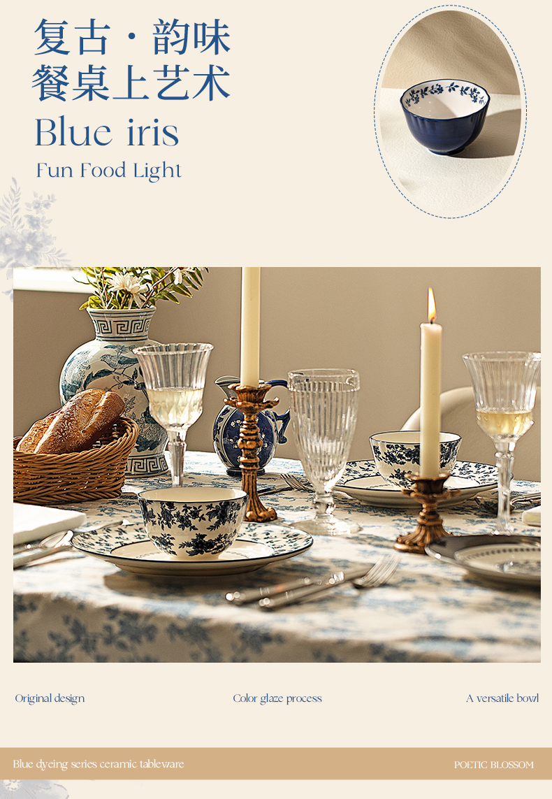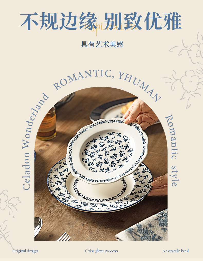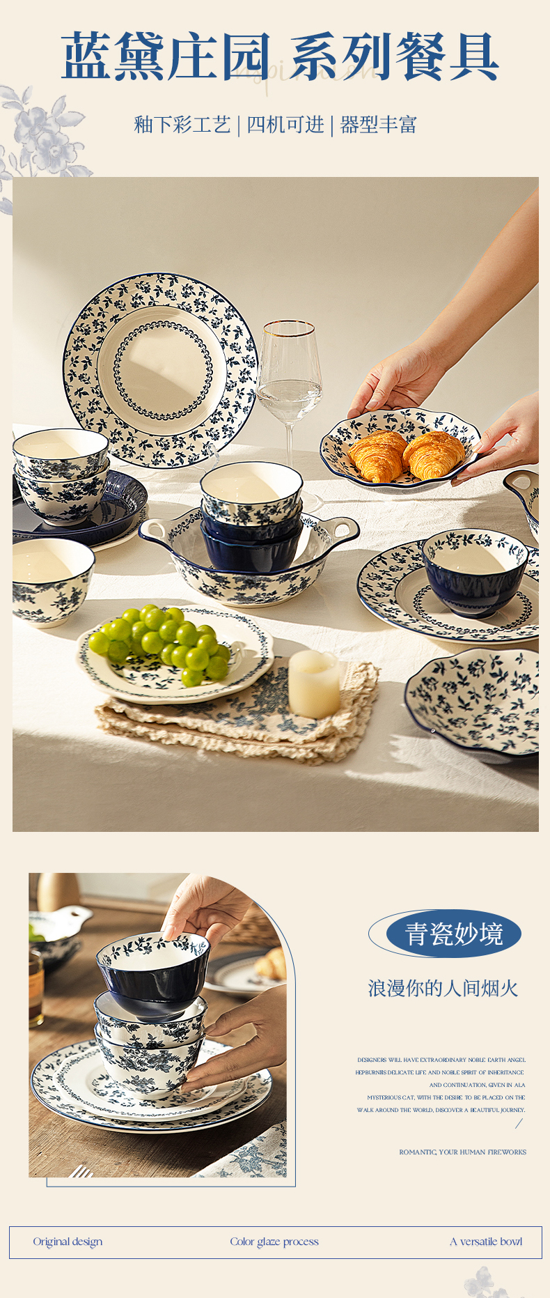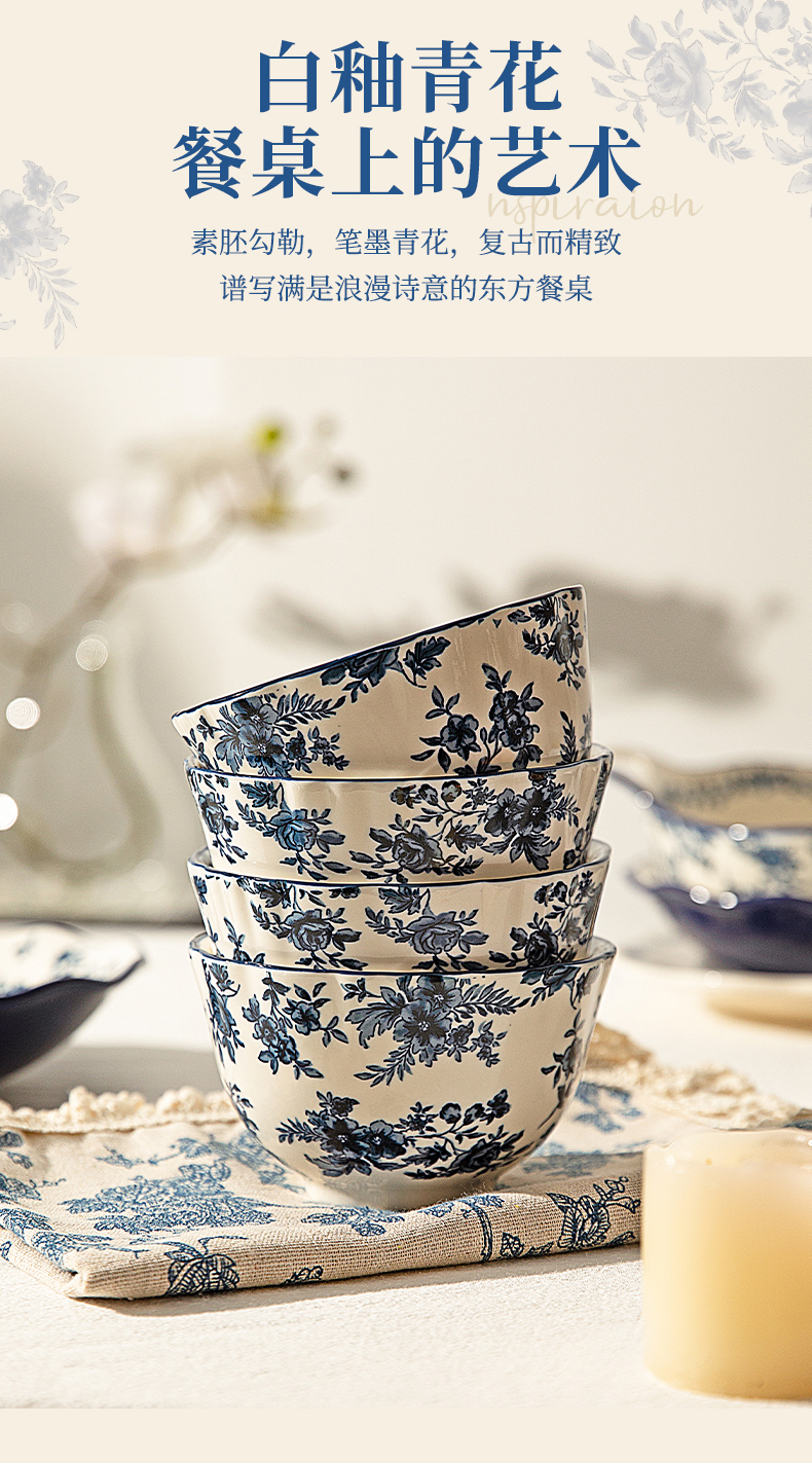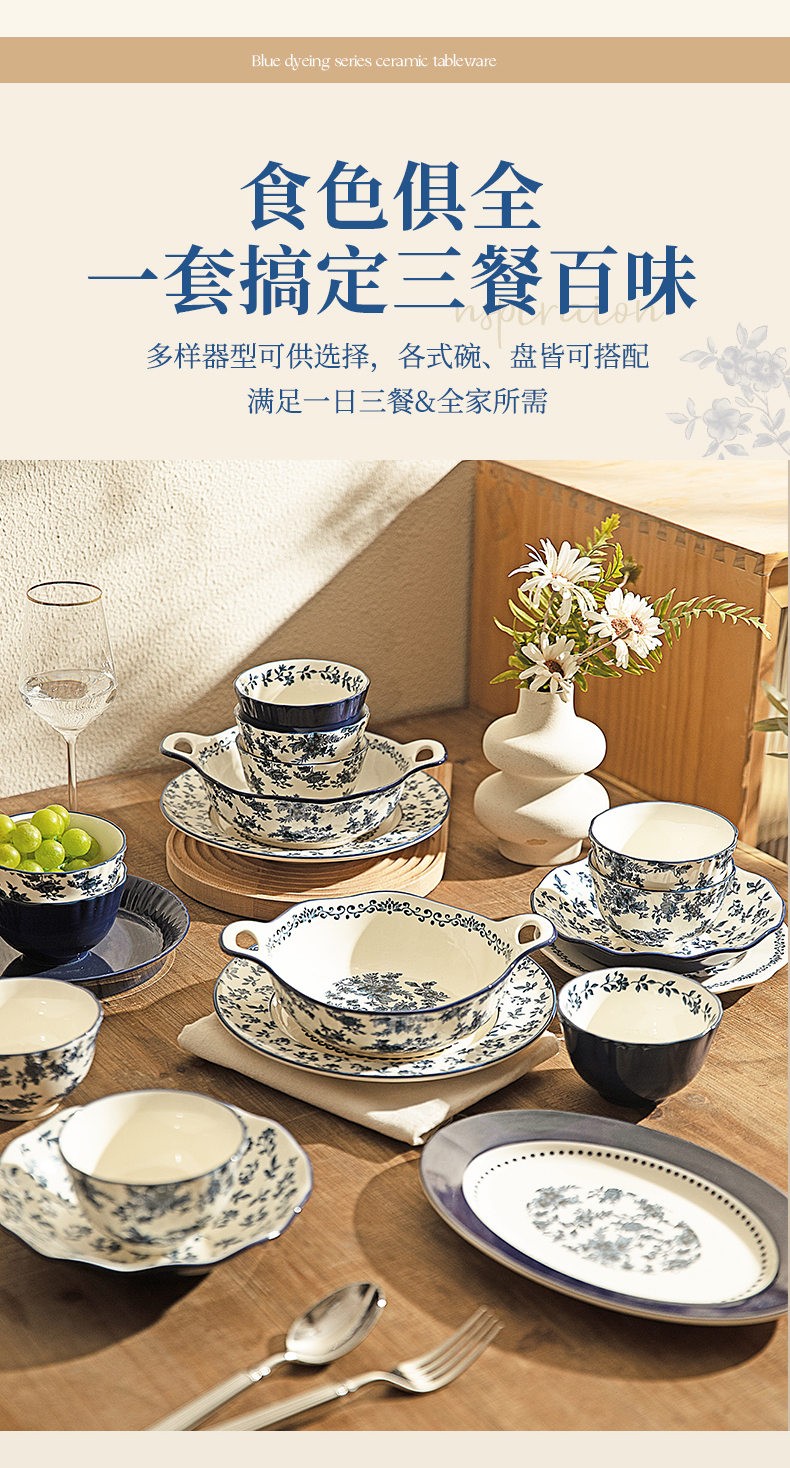 摩登主妇蓝黛庄园釉下彩陶瓷饭碗家用2024新款汤碗高级感餐具盘子