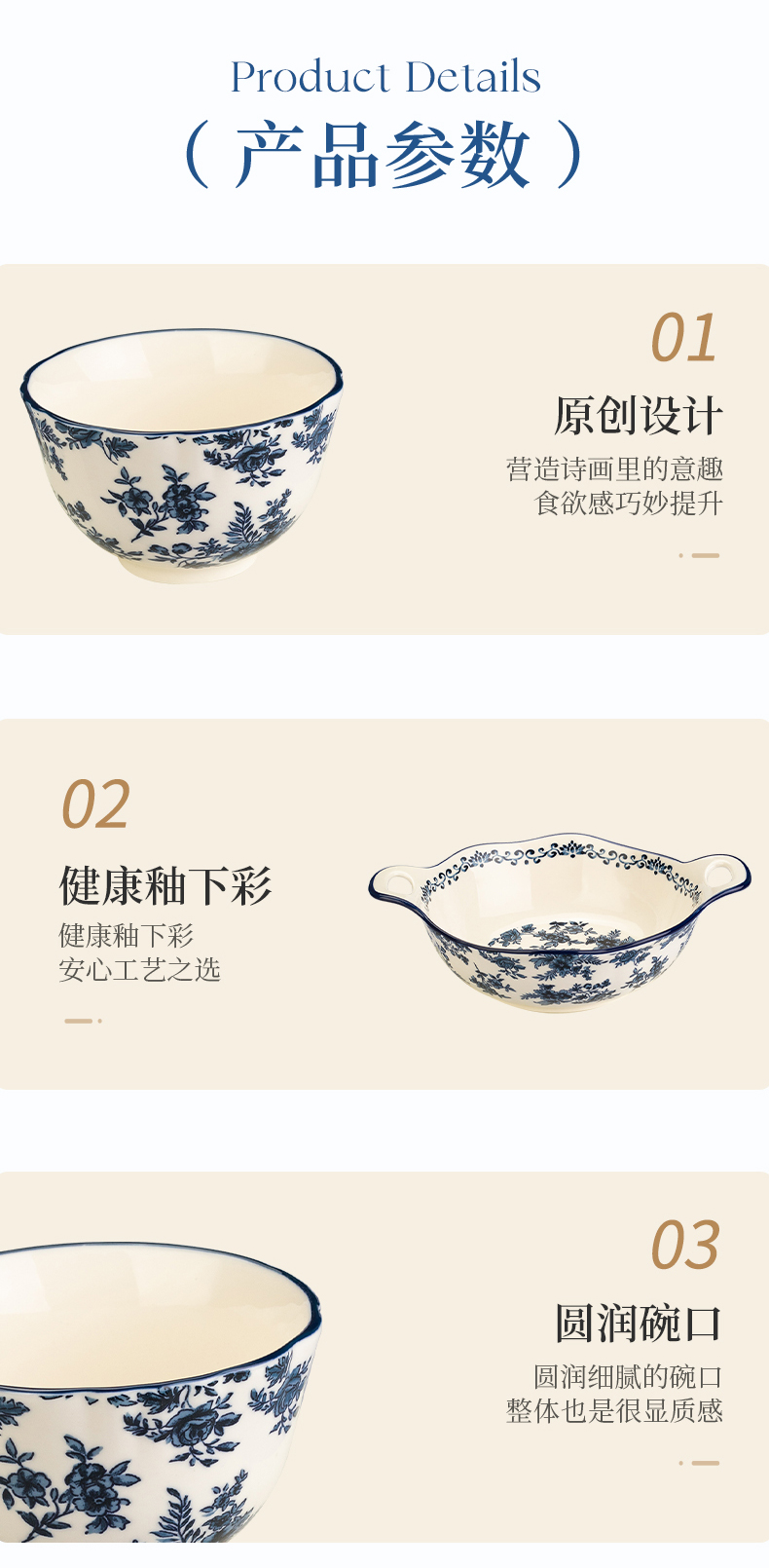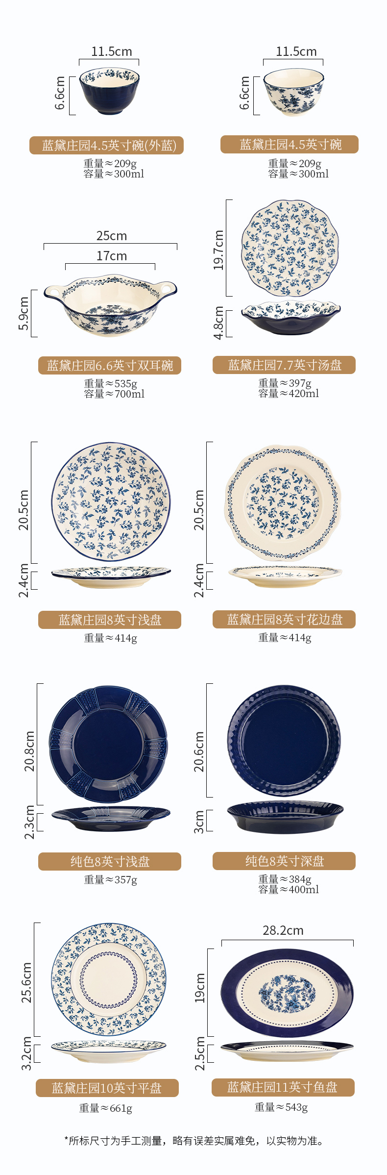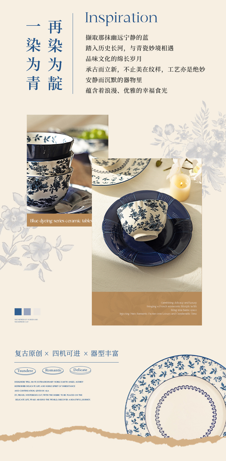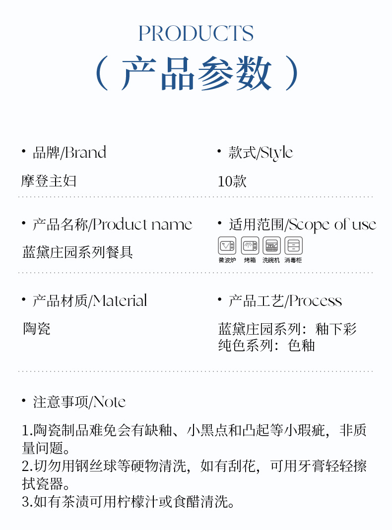摩登主妇蓝黛庄园釉下彩陶瓷饭碗家用2024新款汤碗高级感餐具盘子