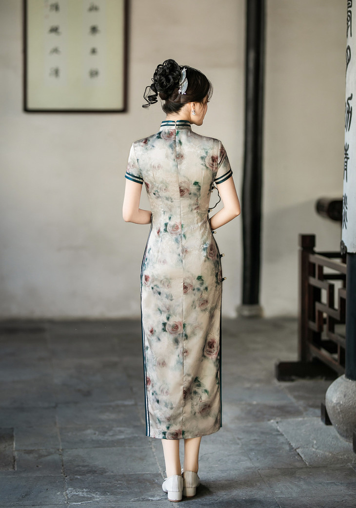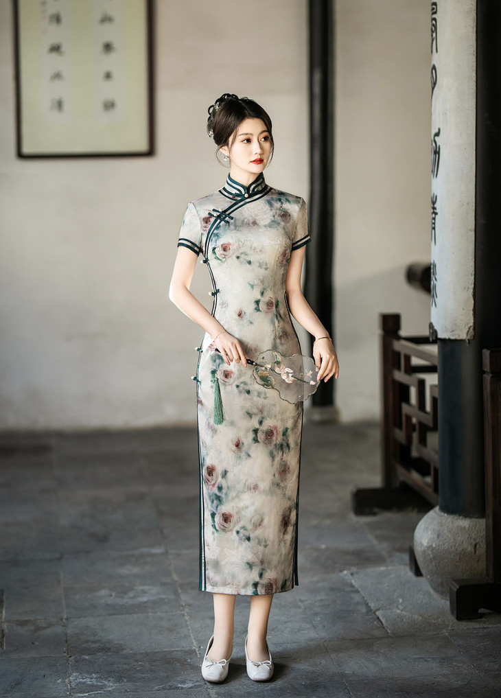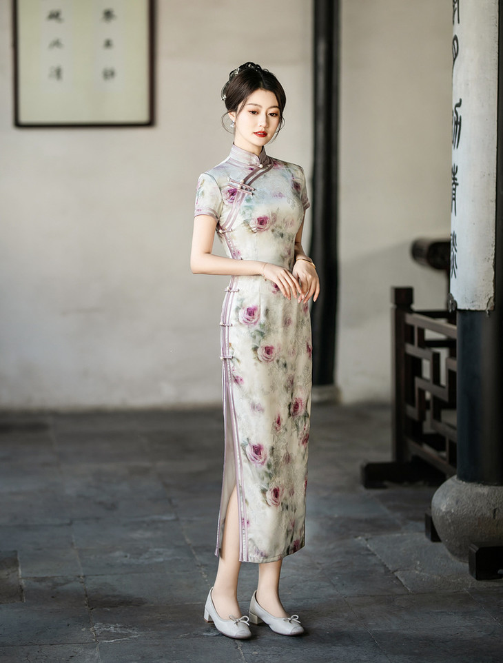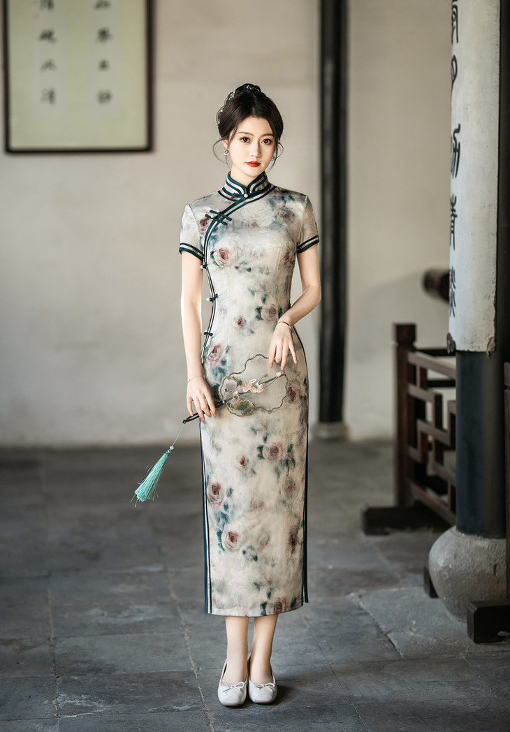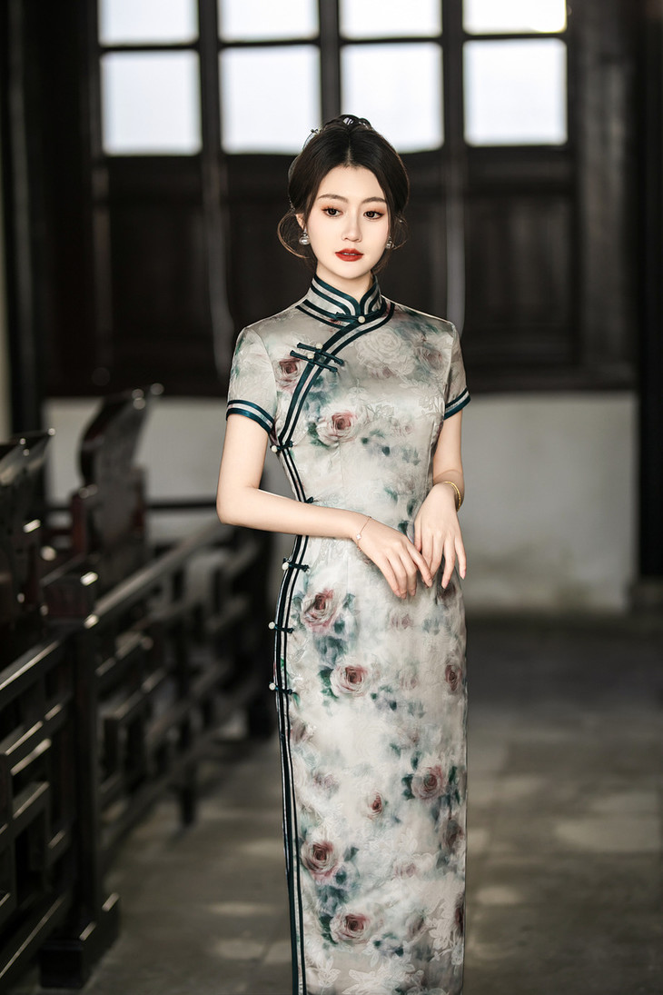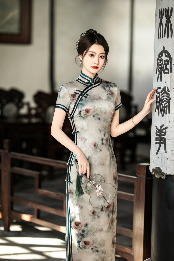 日常高档修身长款,民国风年轻款旗袍LJX-7794