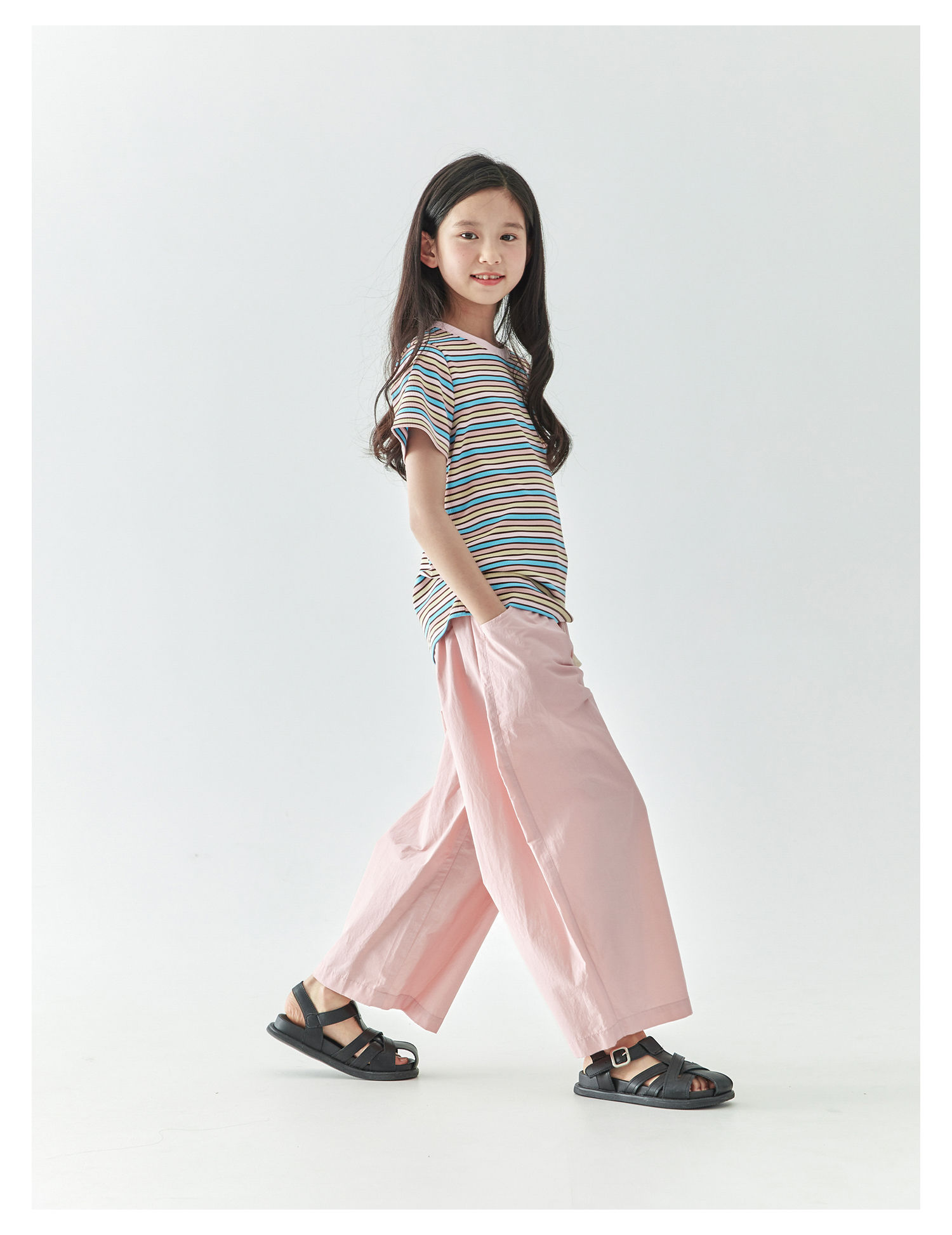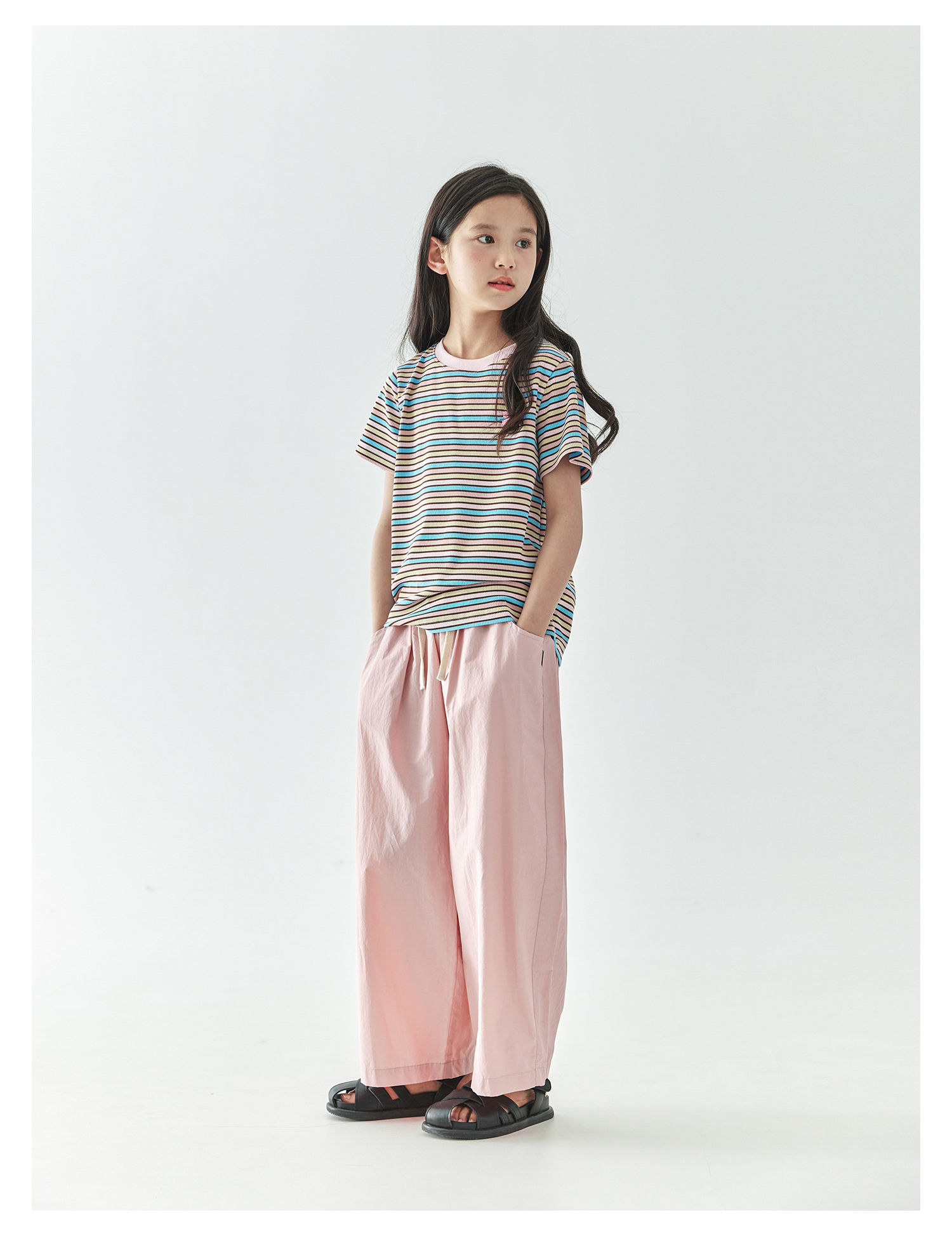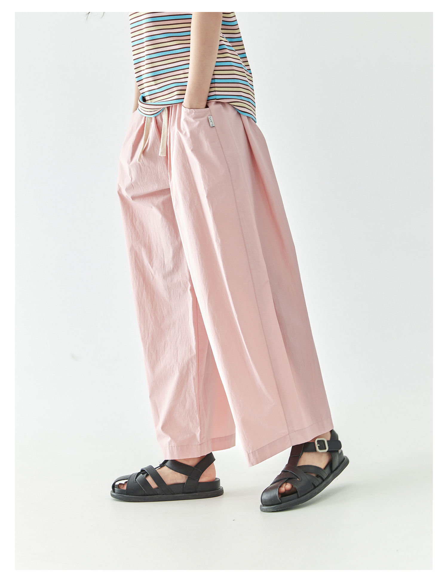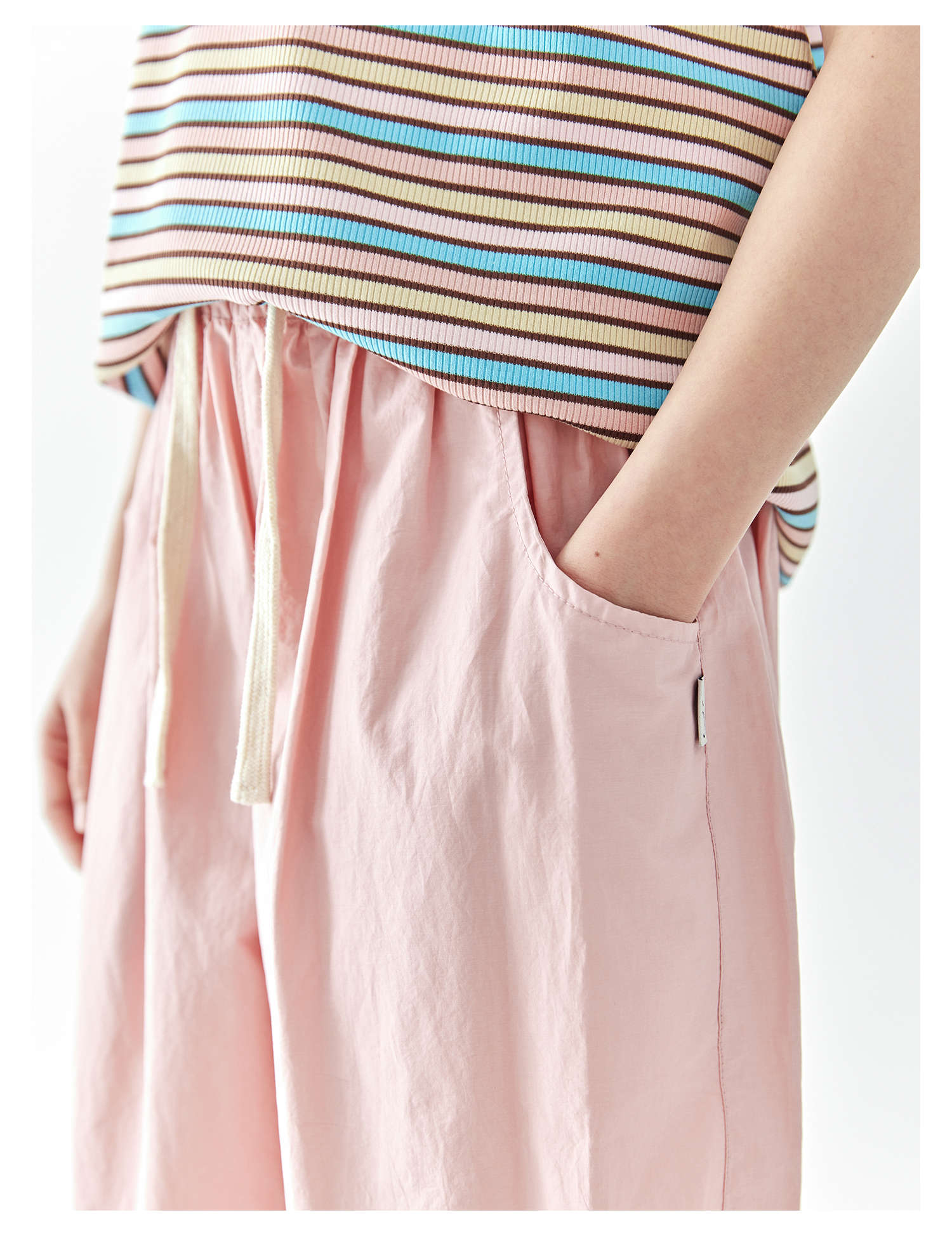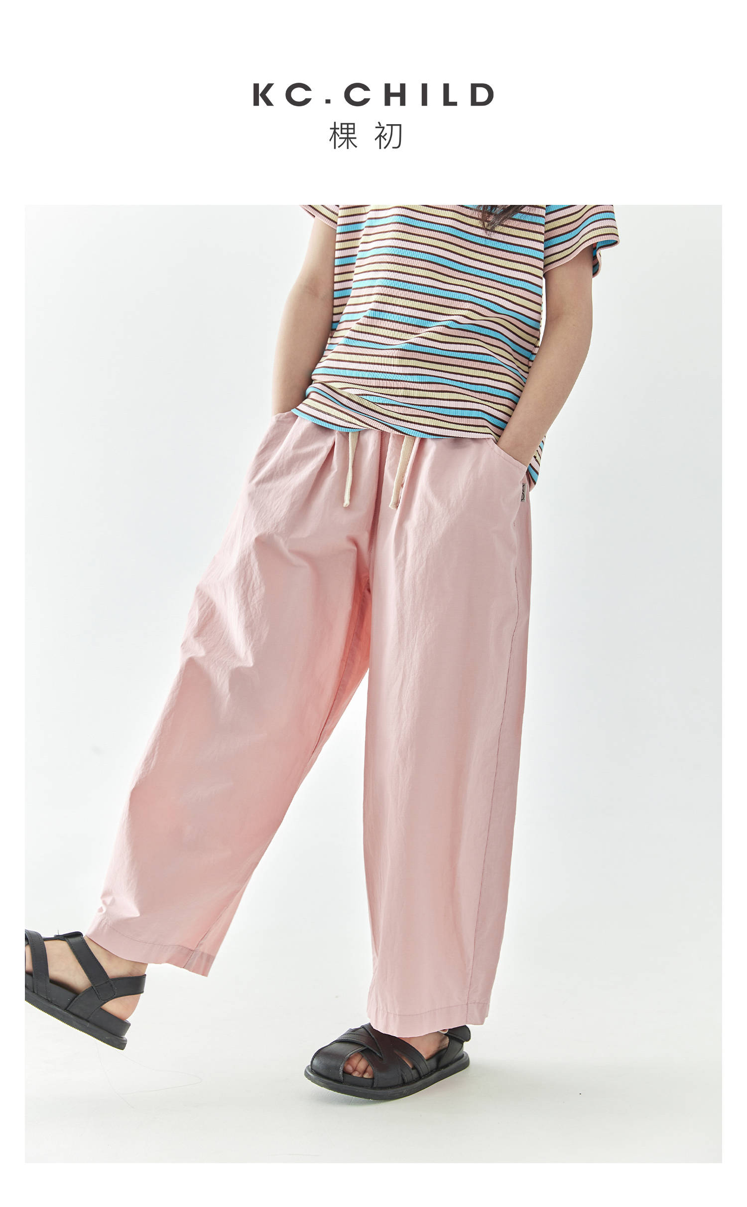 棵初2025年春夏新款童装宽松随性阔腿裤粉色慵懒百搭亲子休闲裤