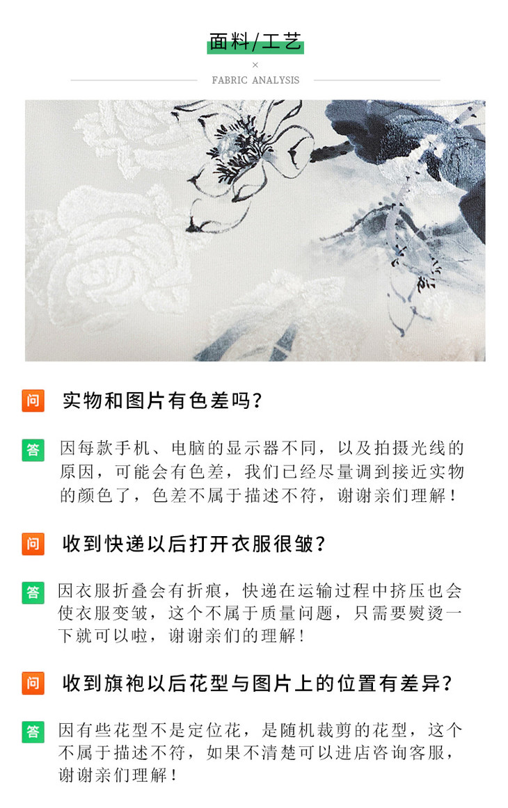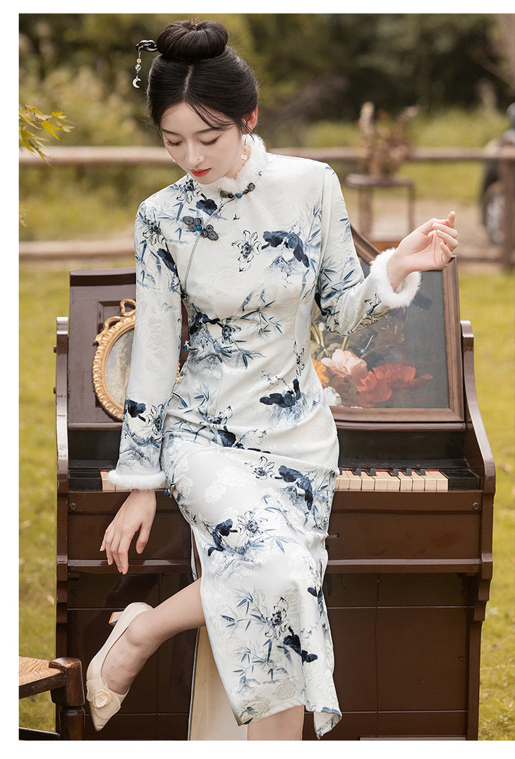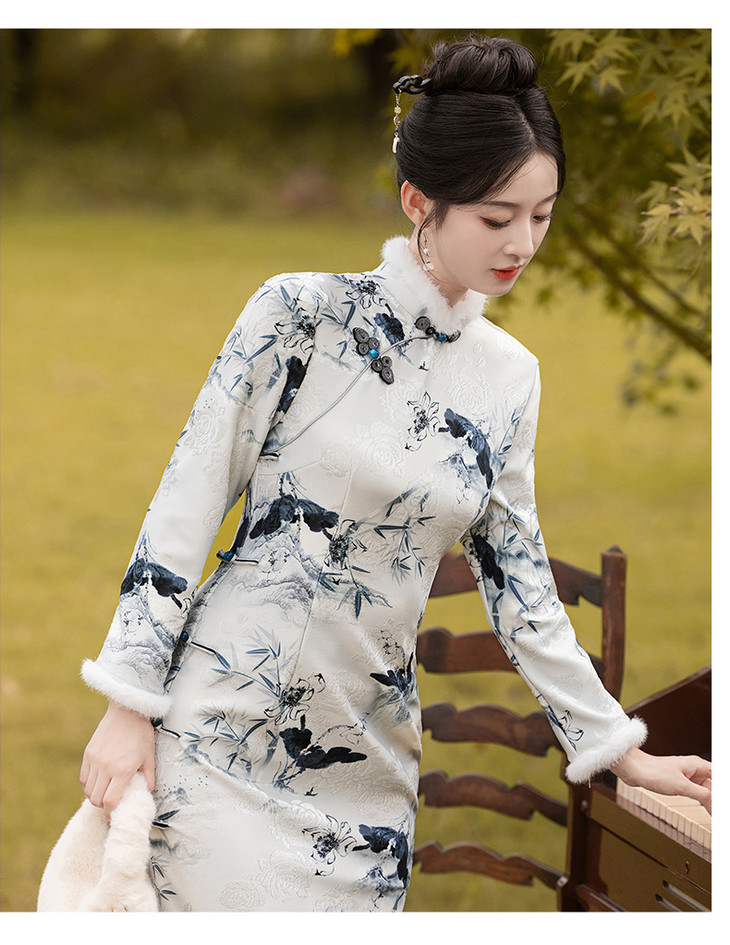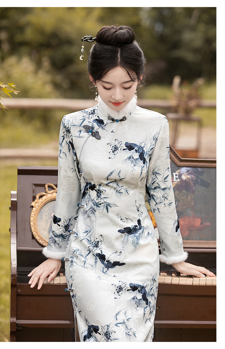 新中式国风水墨花,植绒加厚复古气质显瘦旗袍MLS7087