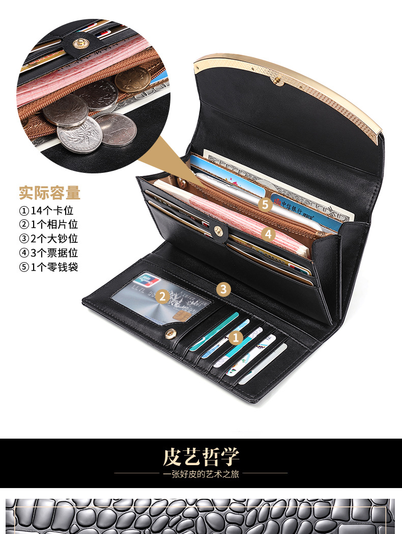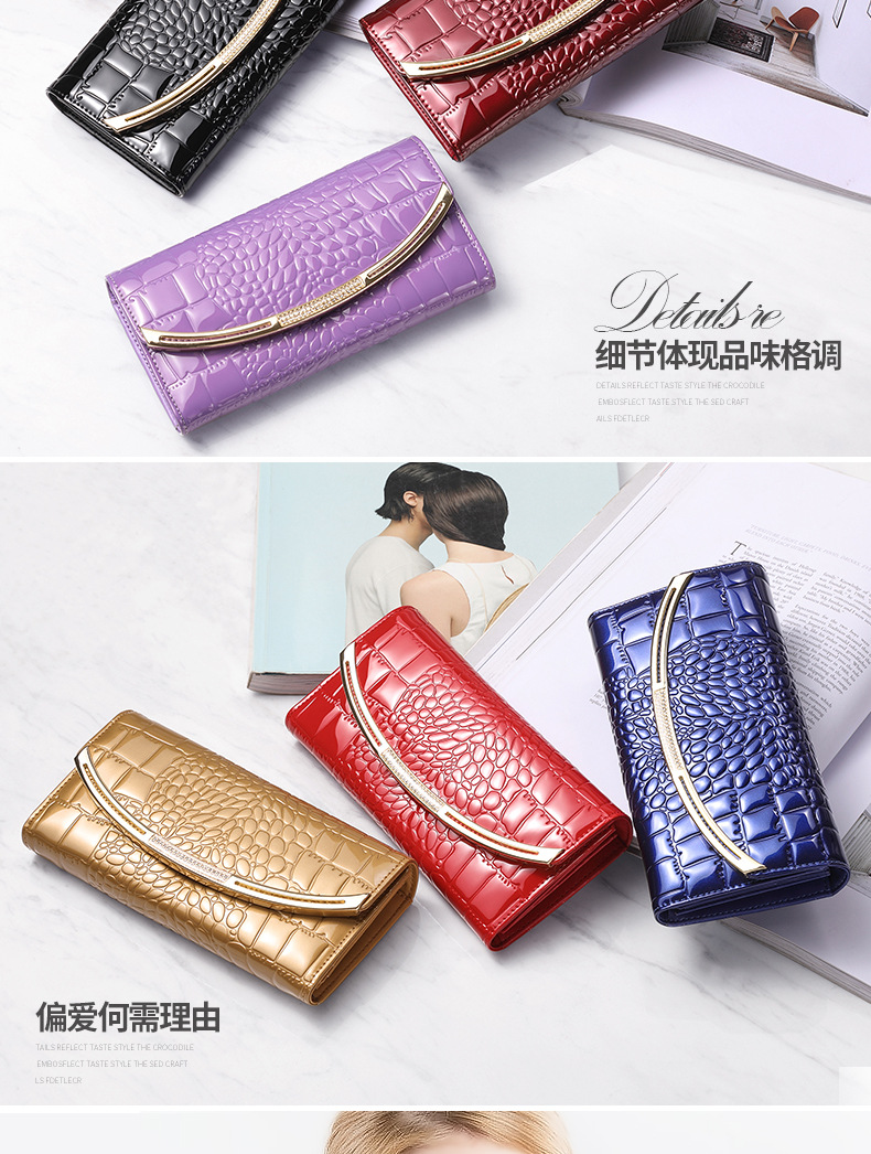 BYN-7533新款韩版女式长款真皮三折大容量牛皮钱包TZW