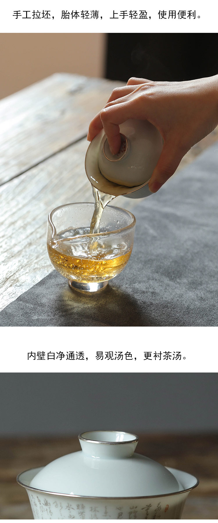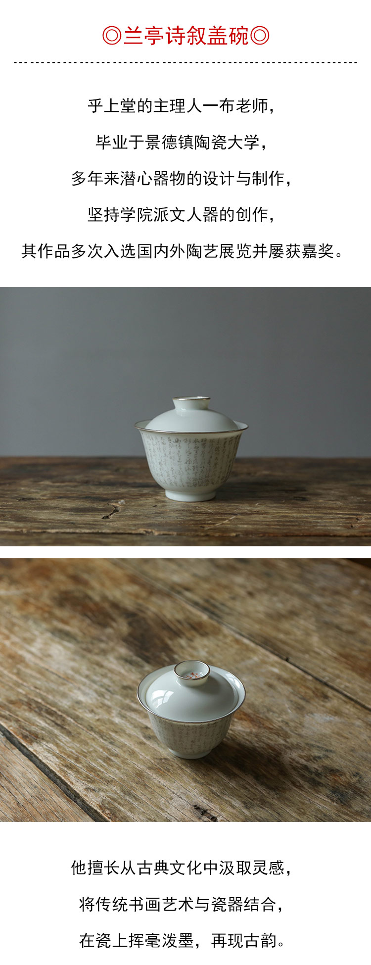 茶香记 景德镇乎上堂兰亭诗叙盖碗130ml薄胎描银手作陶瓷泡茶器