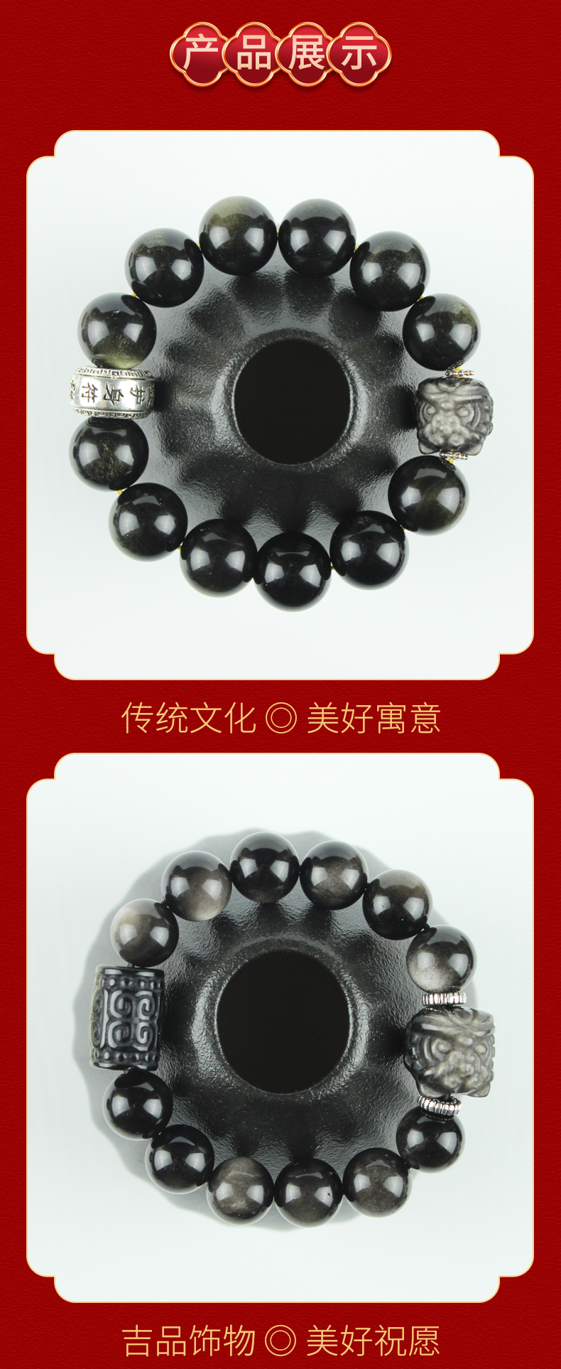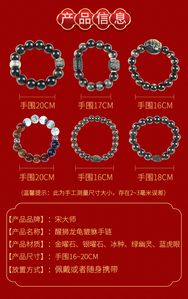 宋韶光大师新款 狮子貔貅 龙龟 银曜石金曜石转珠手链手机挂件