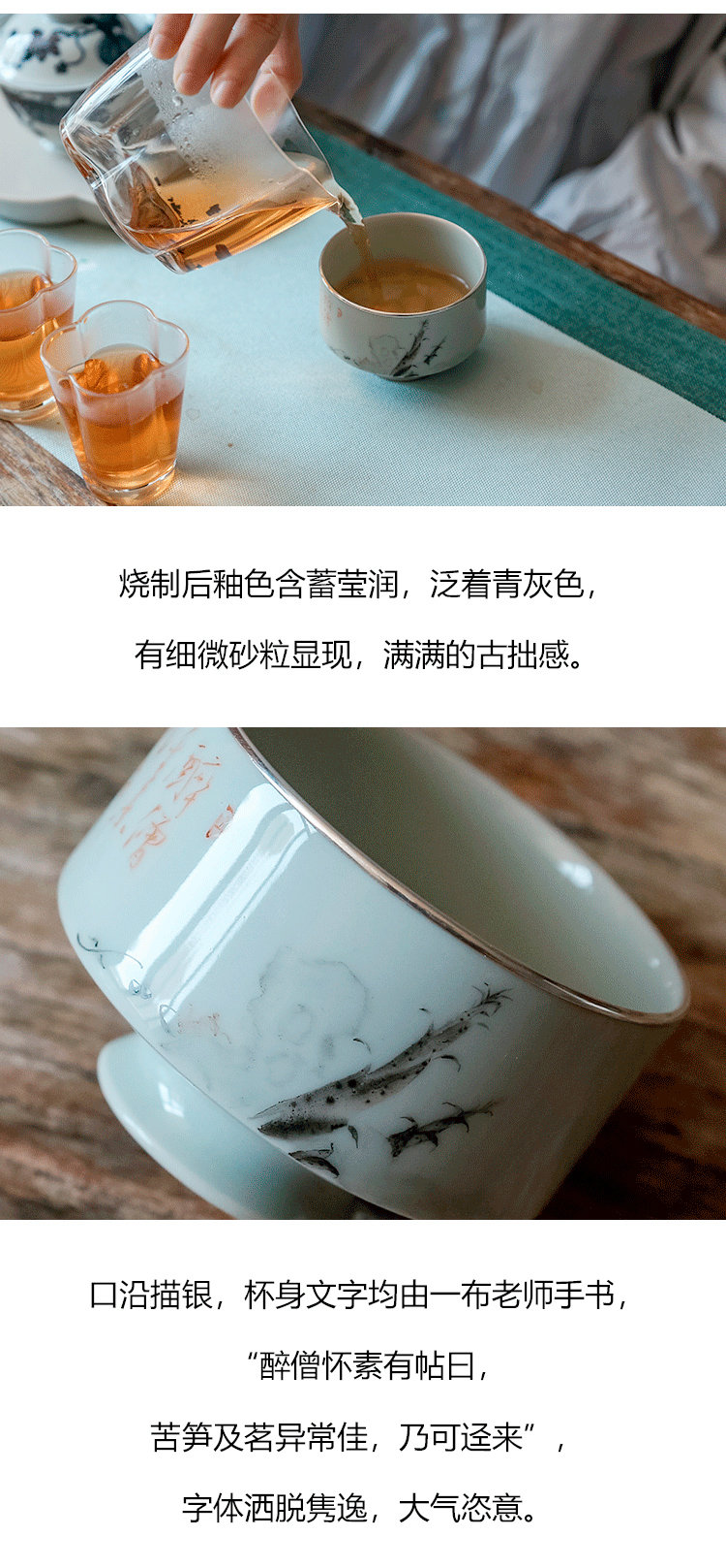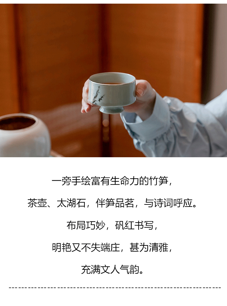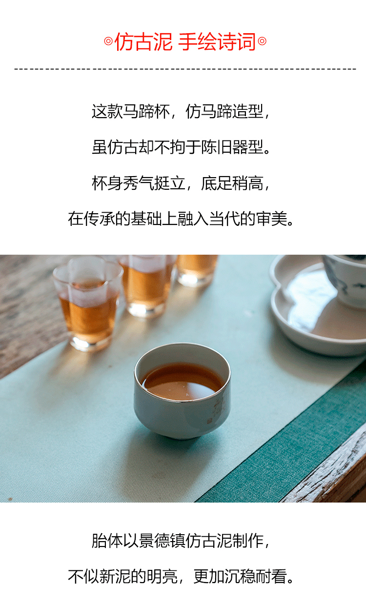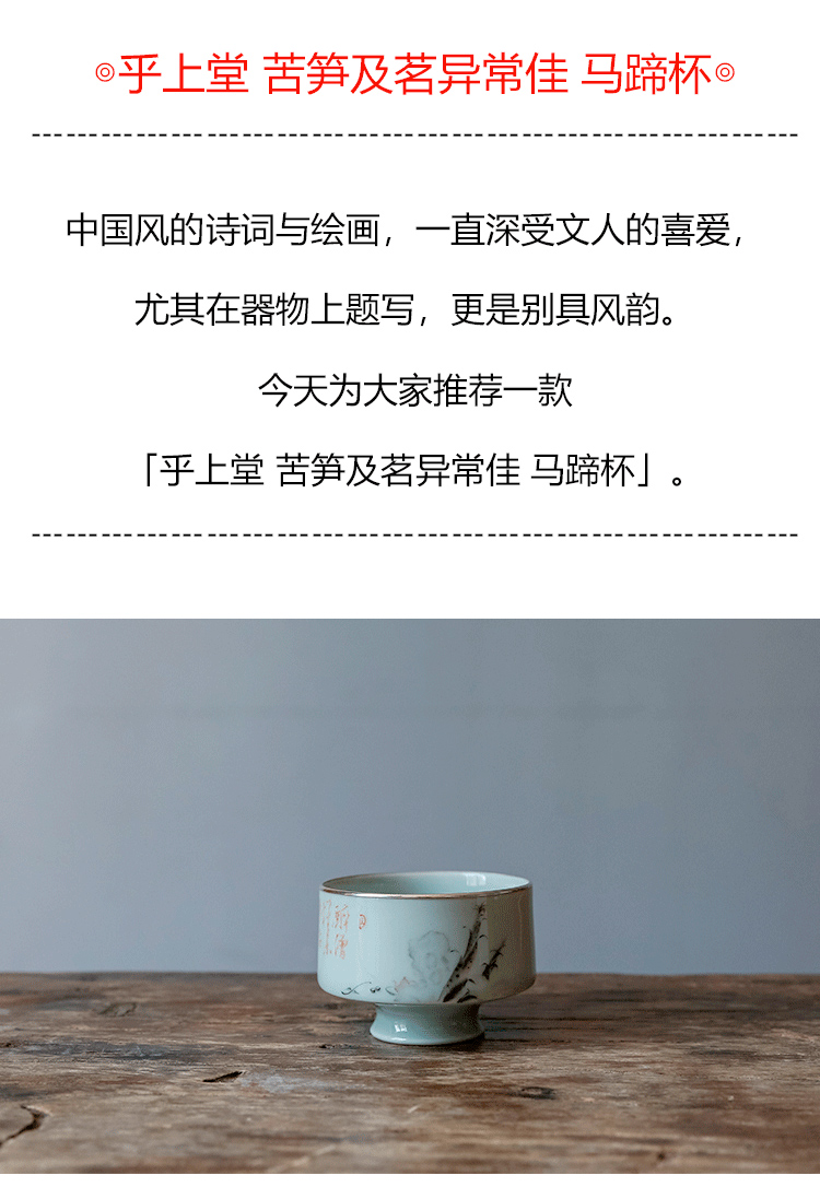 茶香记 乎上堂 苦笋及茗异常佳 马蹄杯 仿古泥 手绘诗词 文人气韵