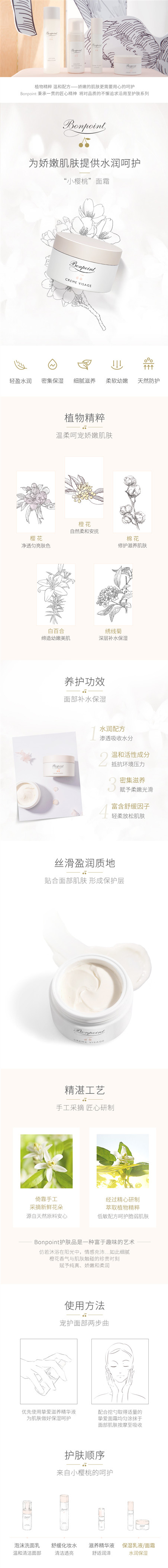 Bonpoint小樱桃面霜bp保湿滋润面霜敏感肌肤补水温和润肤霜50ml