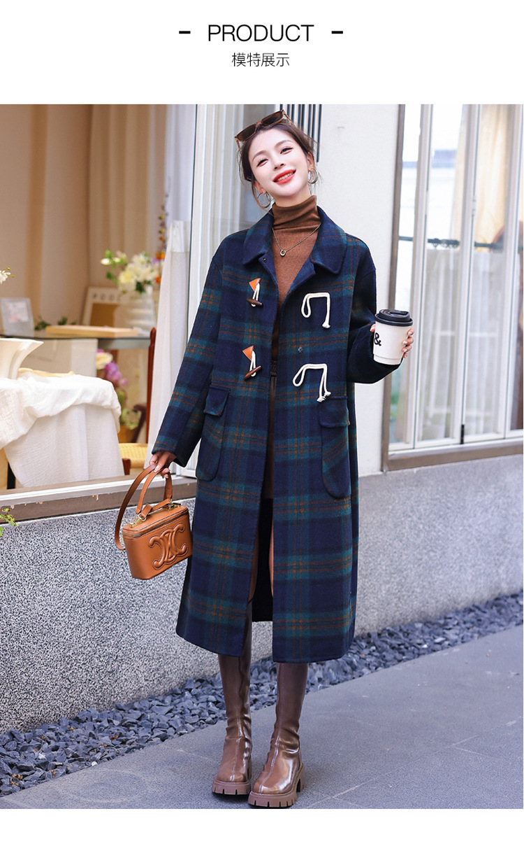 WZNH-WY80589 时尚格纹双面羊绒大衣女2023年秋季上新高端轻奢长款毛呢外套 商品图2