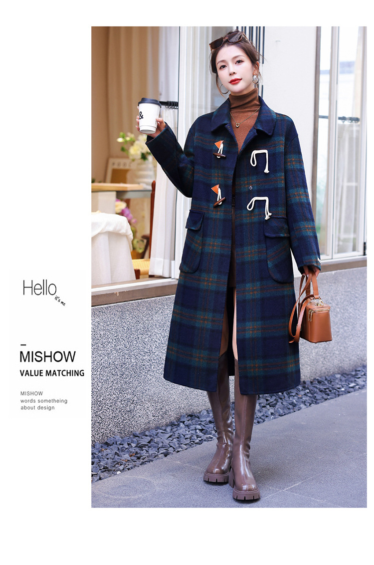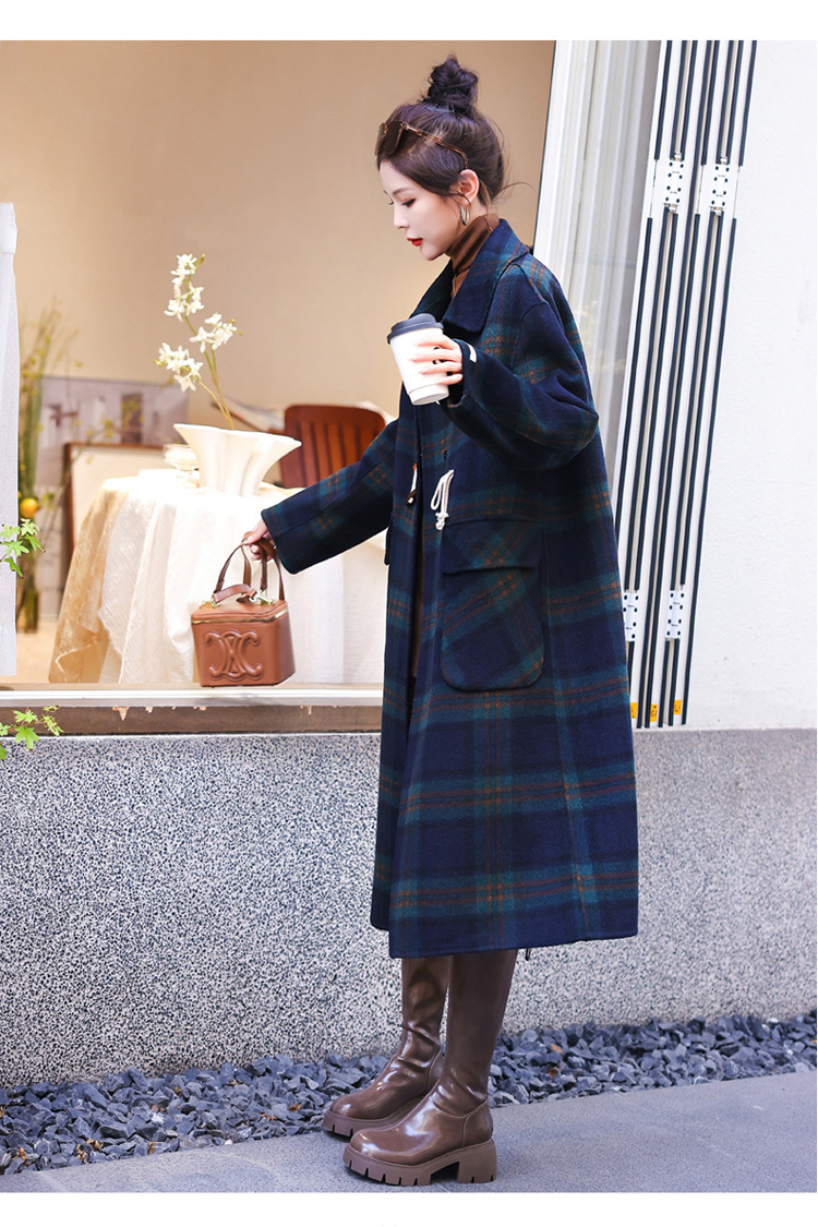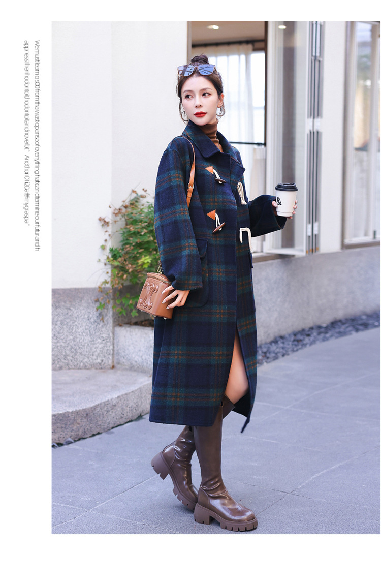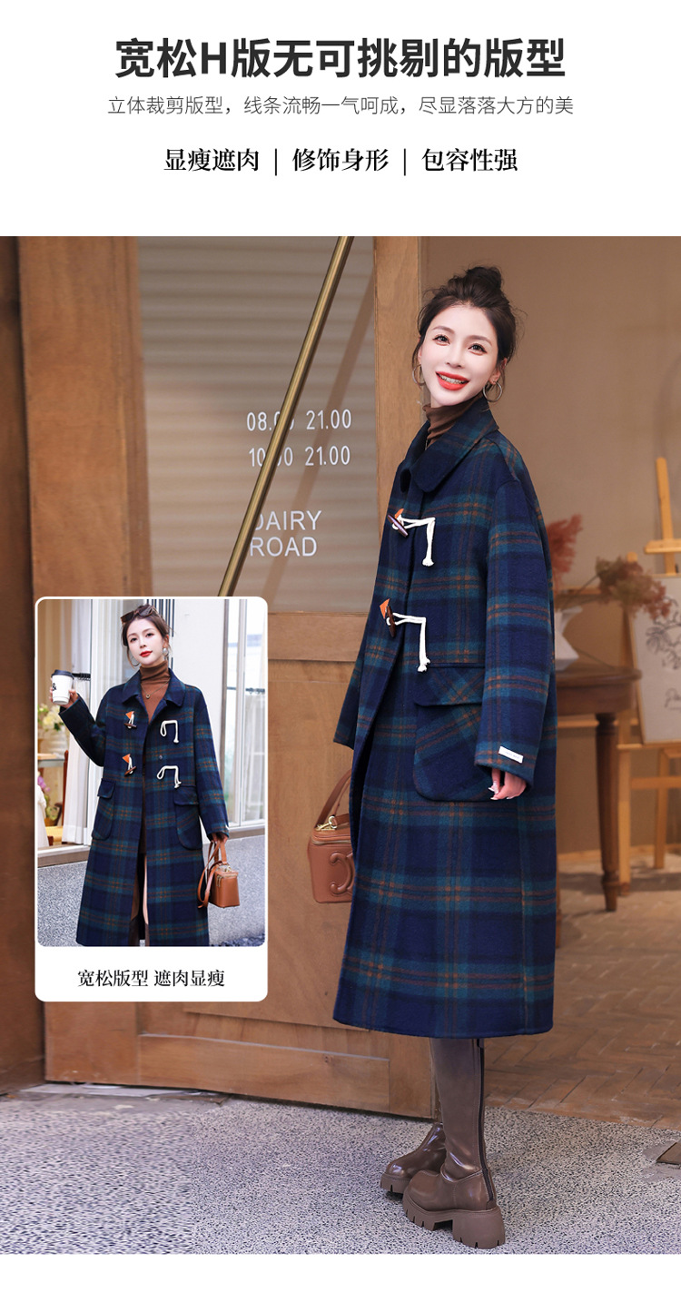 WZNH-WY80589 时尚格纹双面羊绒大衣女2023年秋季上新高端轻奢长款毛呢外套 商品图4