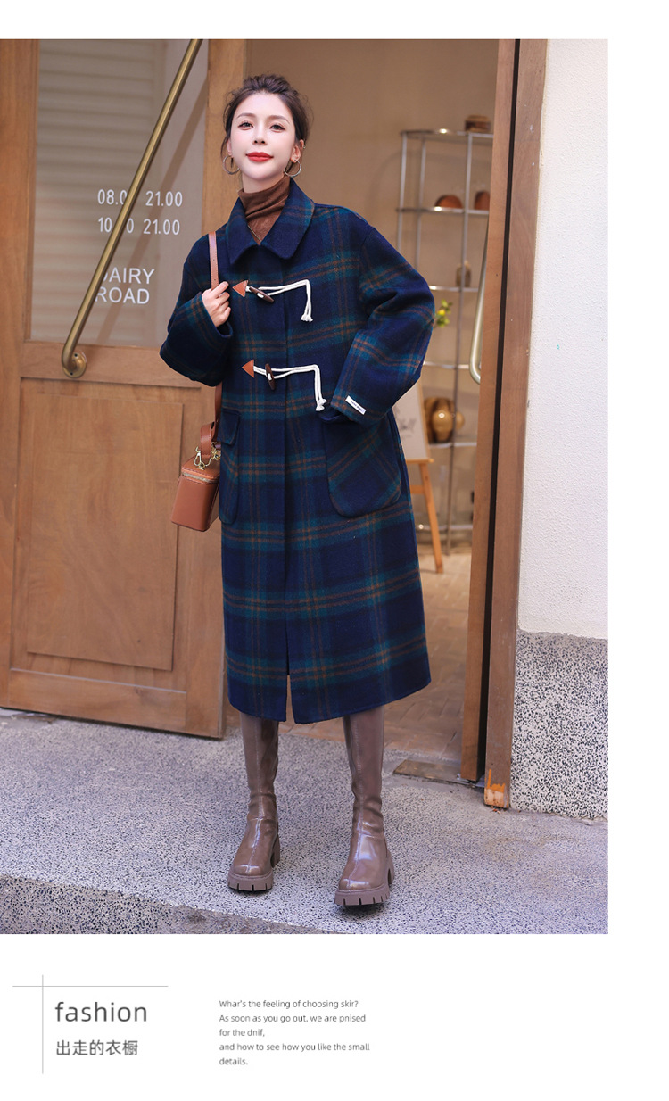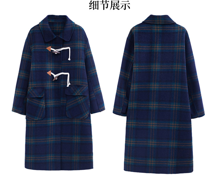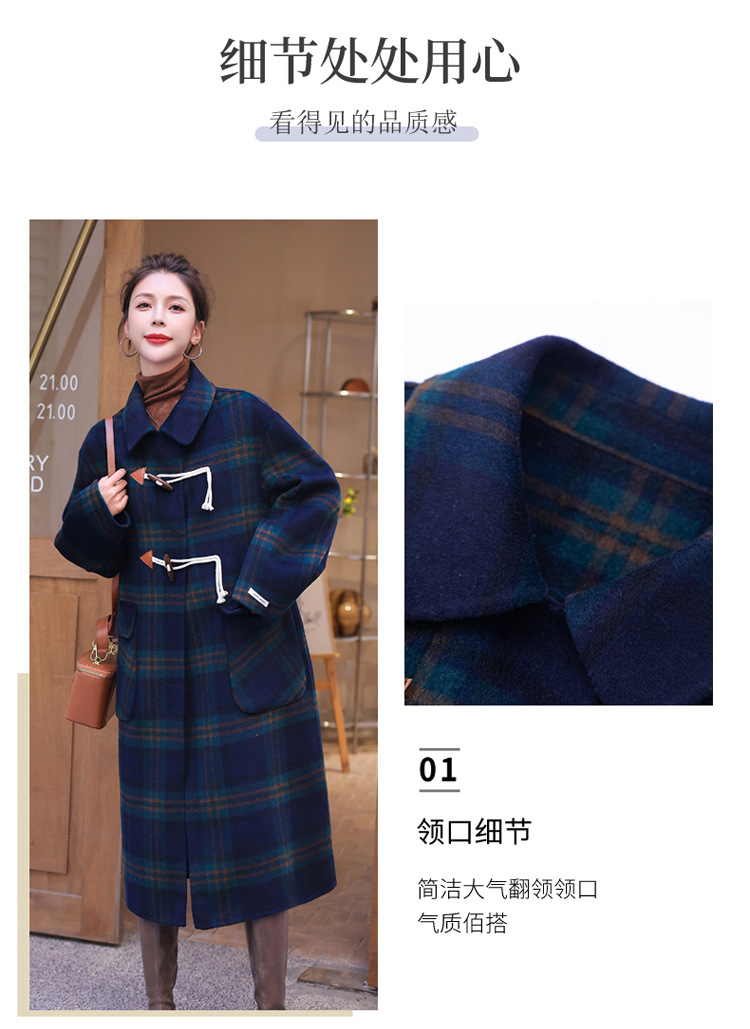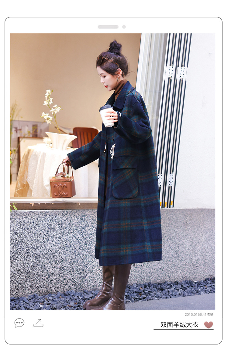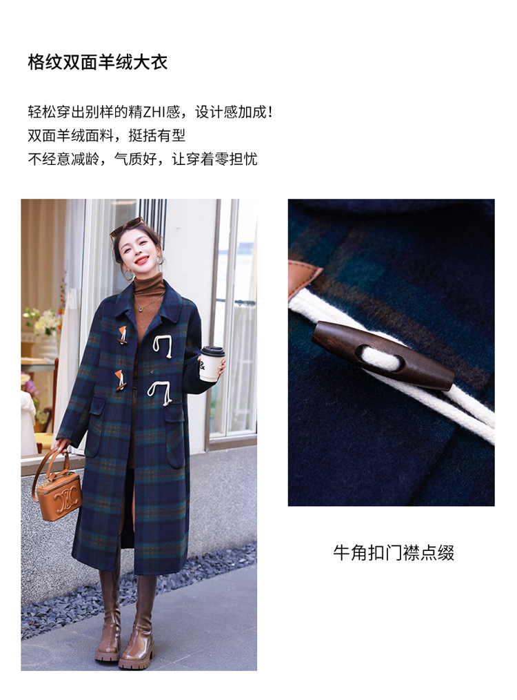 WZNH-WY80589 时尚格纹双面羊绒大衣女2023年秋季上新高端轻奢长款毛呢外套 商品图3