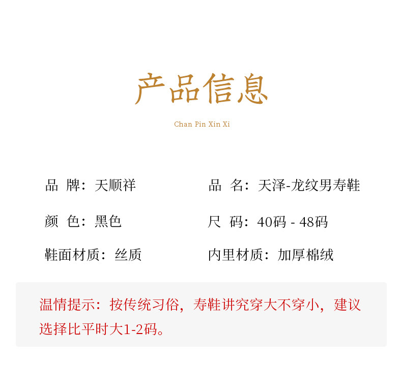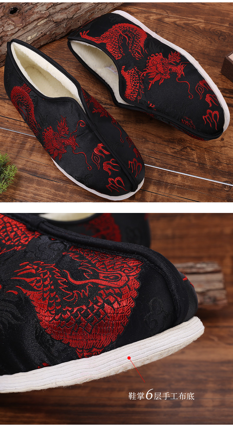 天泽-男款寿鞋黑底红龙