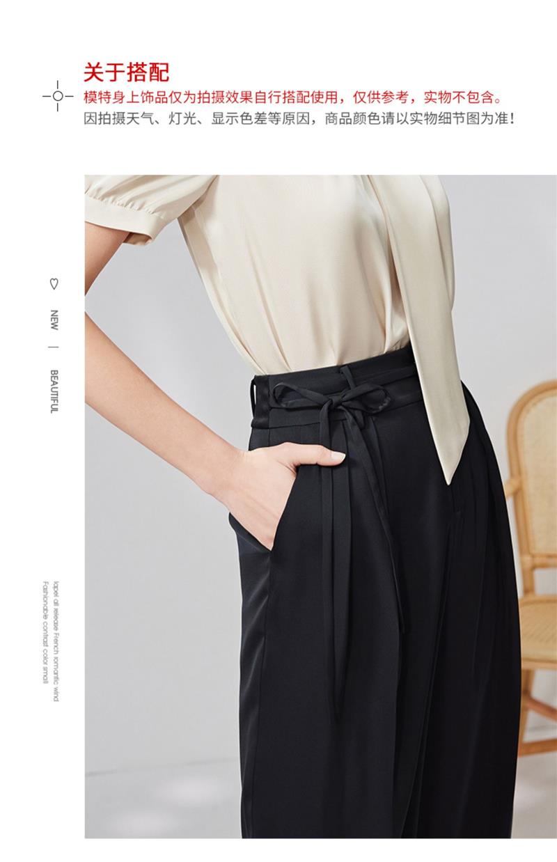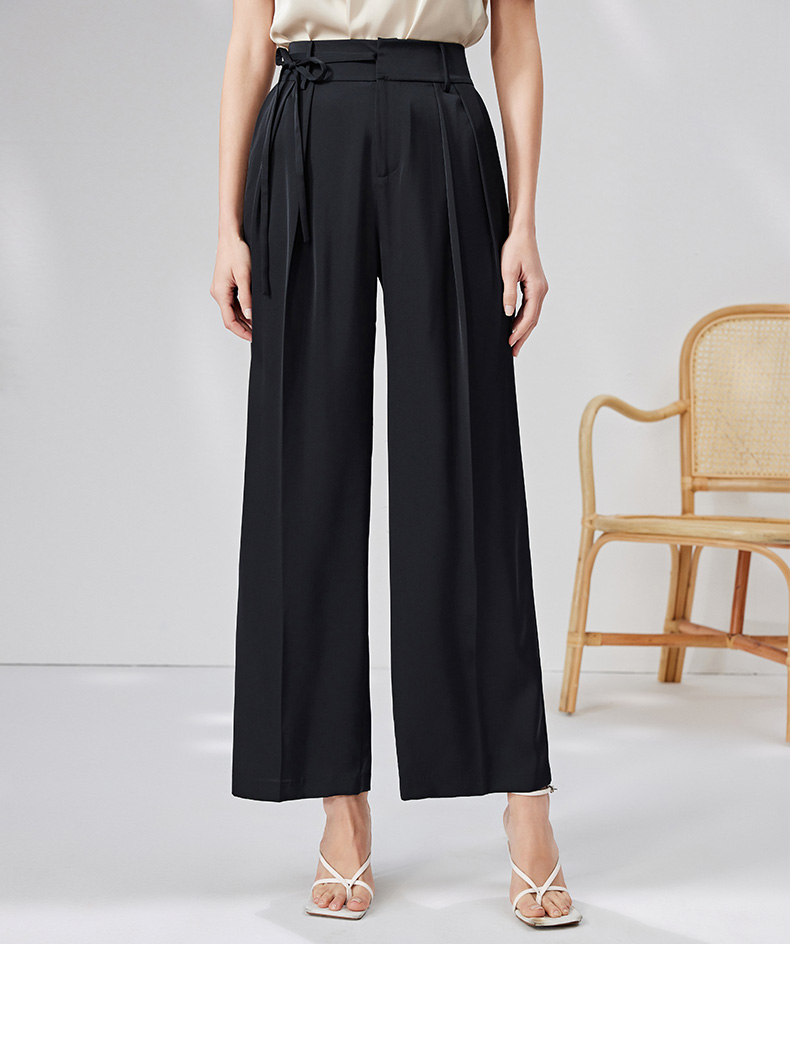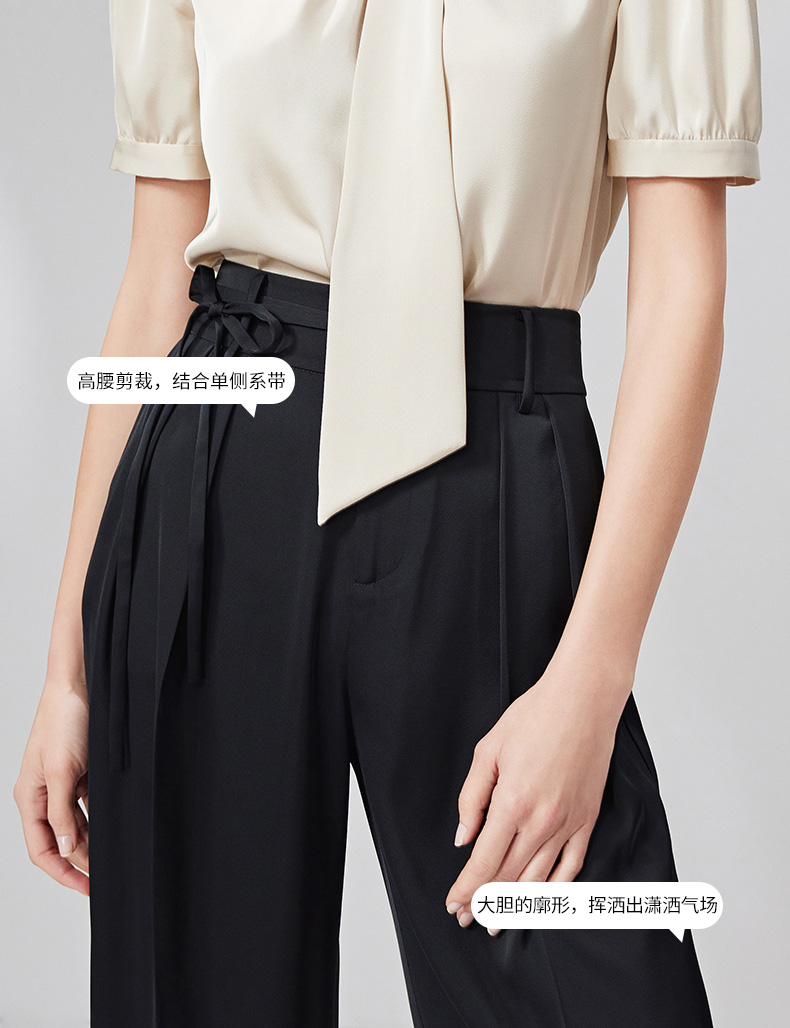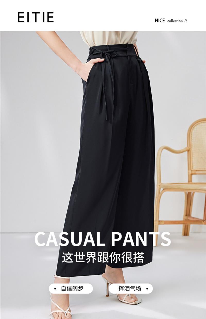 EITIE爱特爱系带高腰直筒阔腿休闲裤黑色通勤大气显瘦夏季新款B05104