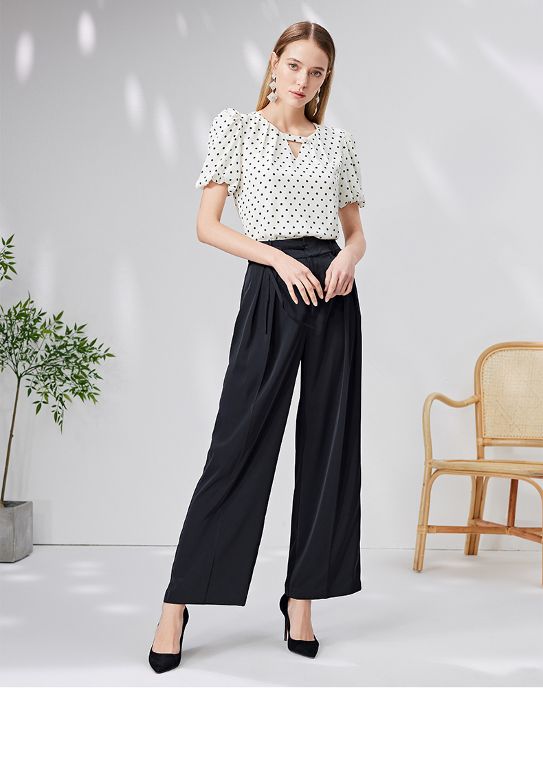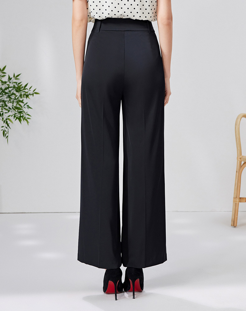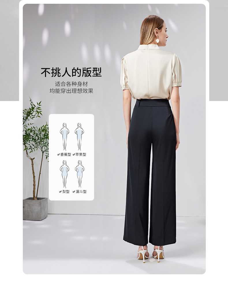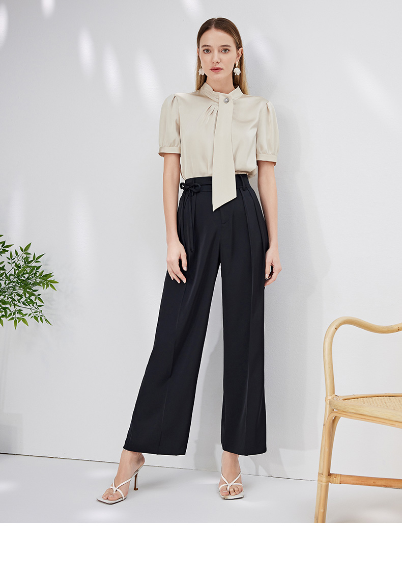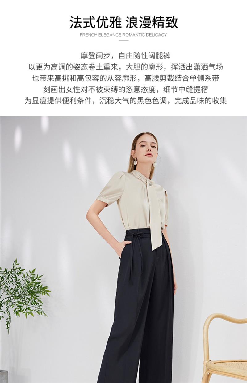 EITIE爱特爱系带高腰直筒阔腿休闲裤黑色通勤大气显瘦夏季新款B05104