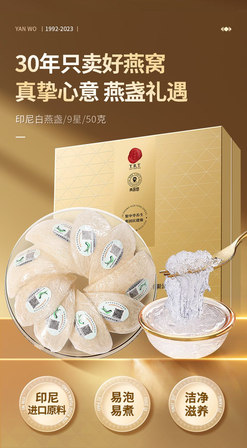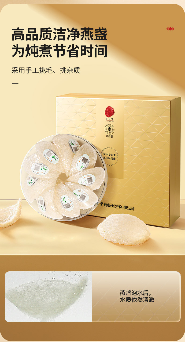 【正宗同仁堂品牌】北京同仁堂 青源堂 白燕盏9星50克 印尼进口食用燕窝 溯源干燕窝 老人孕妇送长辈孝敬父母滋补礼品SY
