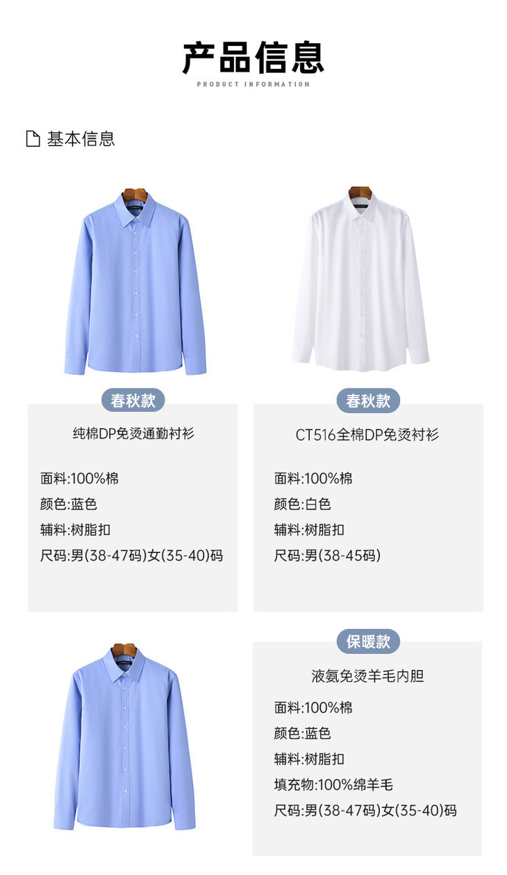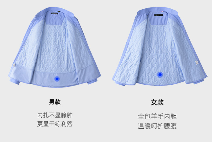 【通勤羊毛内胆保暖衬衫(液氨免烫)】羊毛内胆加厚外套免烫保暖长衬