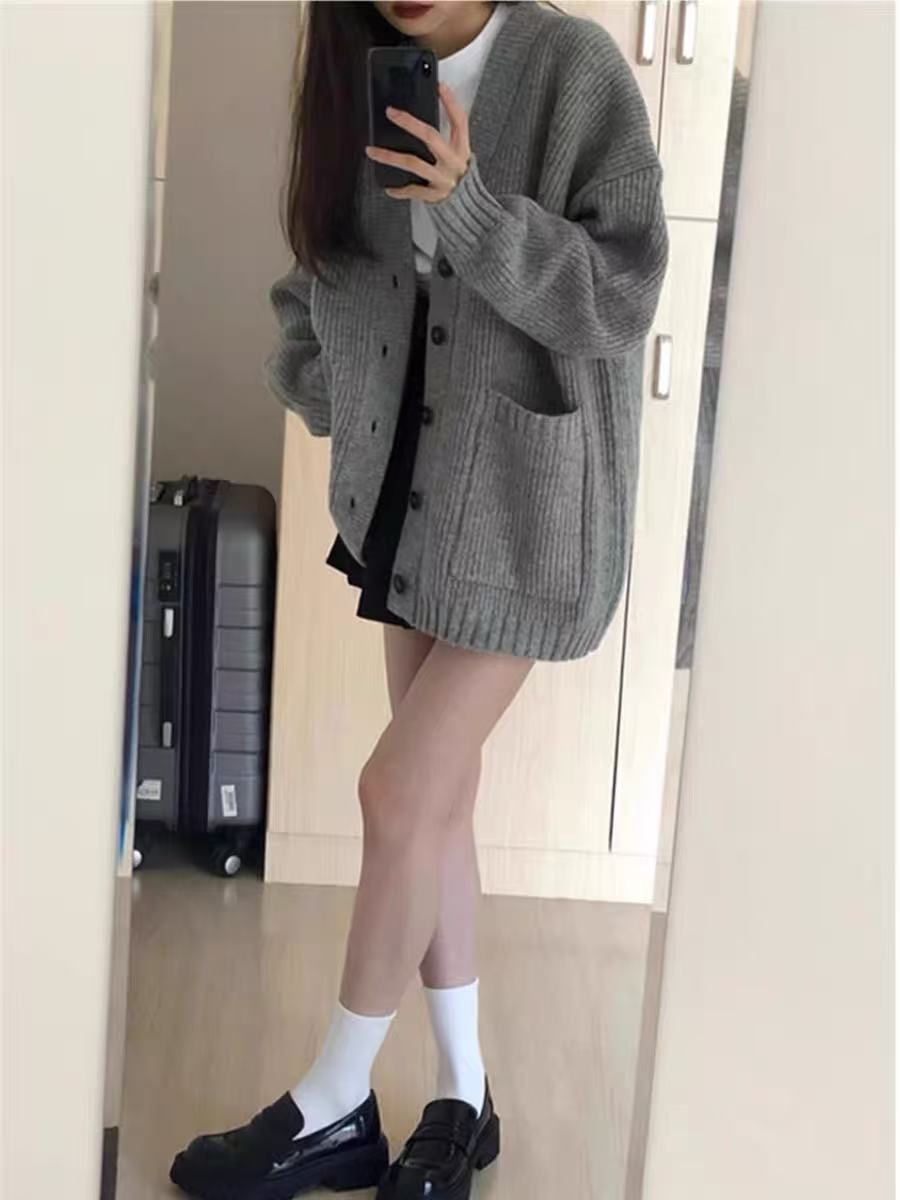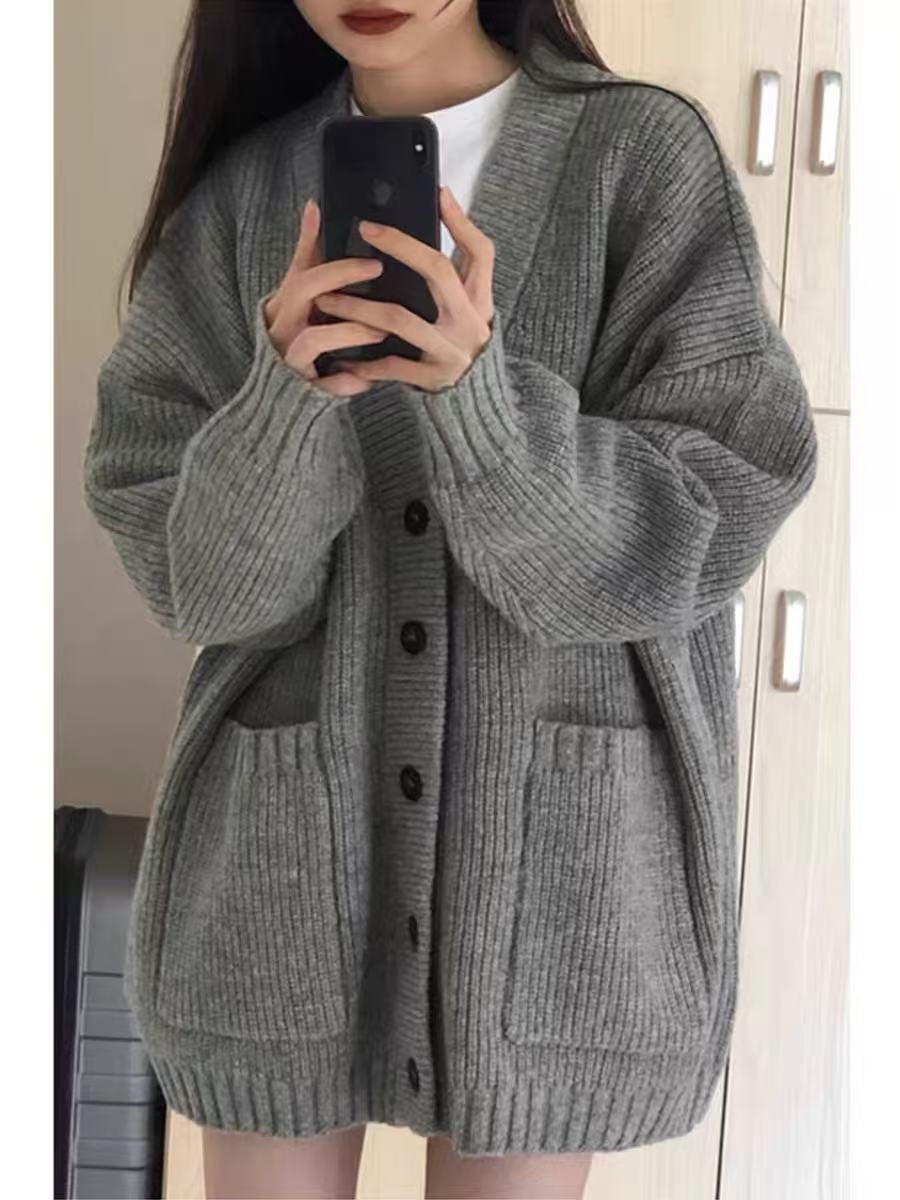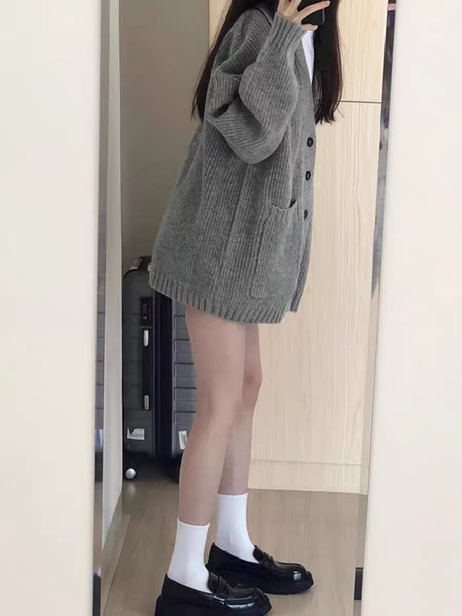 【孤品捡漏】G155灰色五粒扣开衫毛衣-喜出