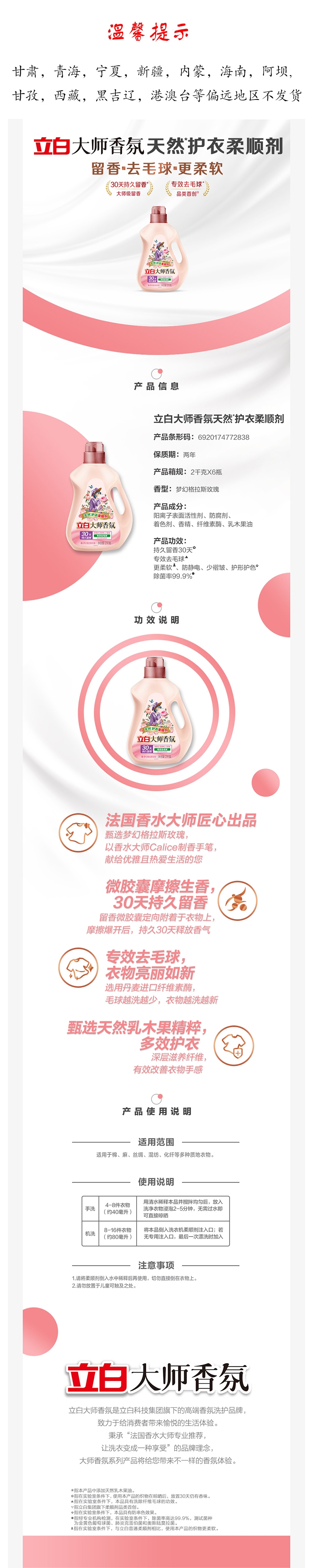 立白 大师香氛防静电柔顺剂2kg*1瓶 YQTZ033