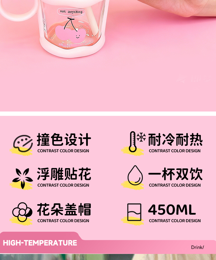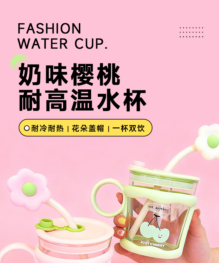奶味樱桃耐高温水杯