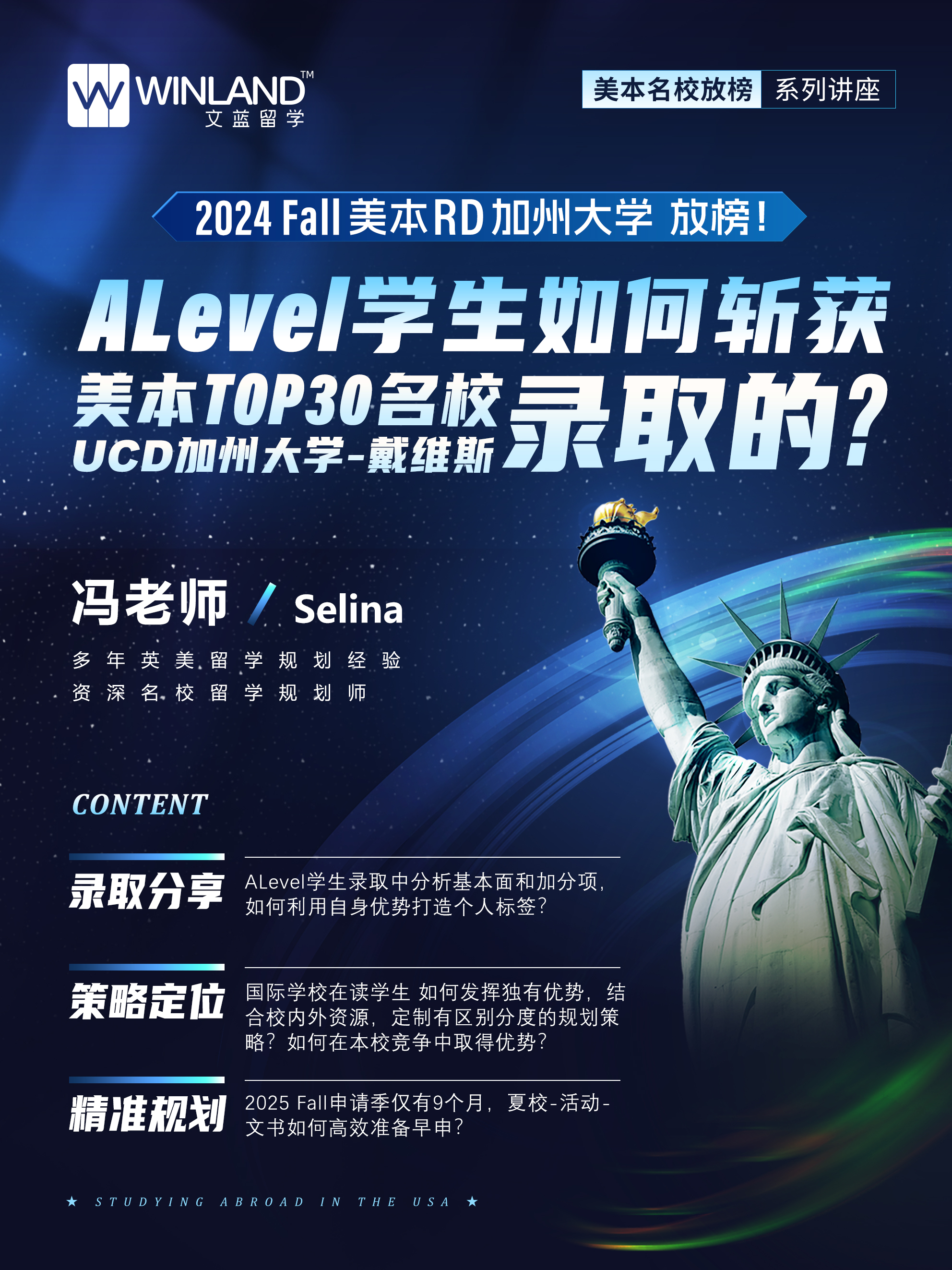 【3.16】2024fall美本RD加州大学放榜!Alevel学生如何斩获美本TOP30名校UCD加州大学-戴维斯录取的?
