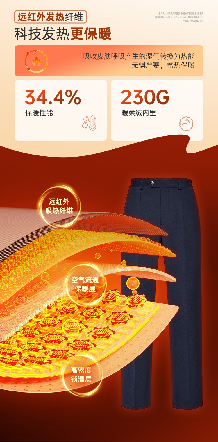 (下单2件立减80)【八代暖行者加绒通勤裤】男女款修身商务通勤长裤高弹直筒加绒西裤
