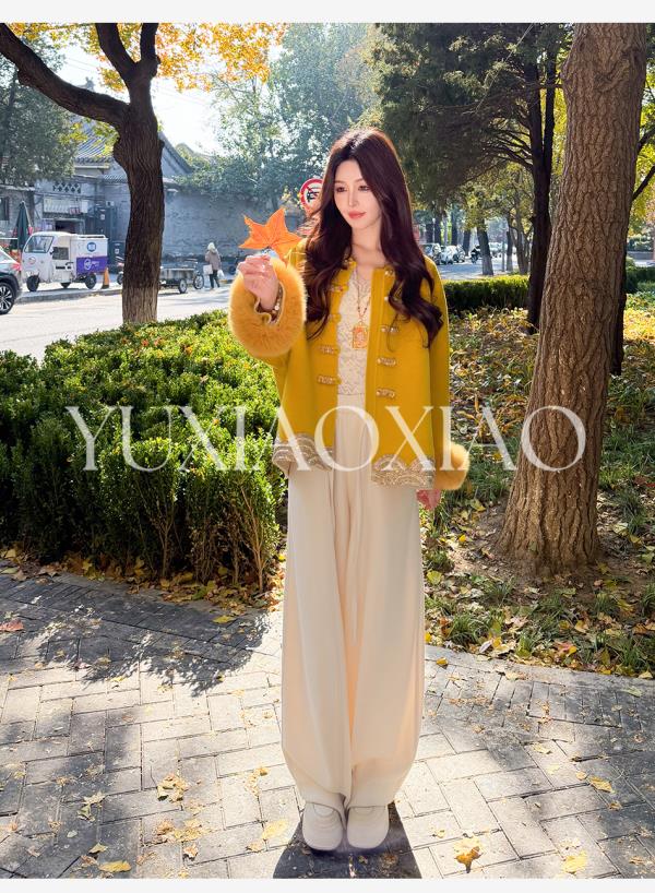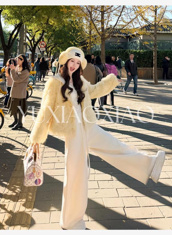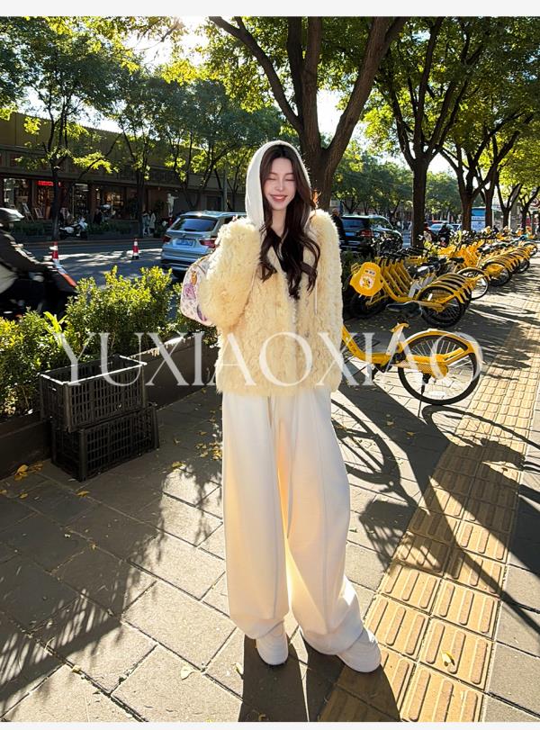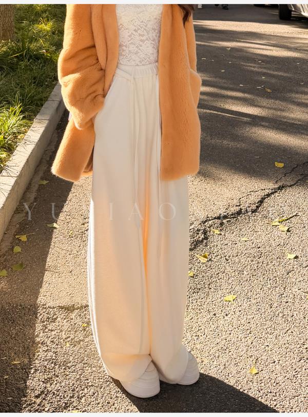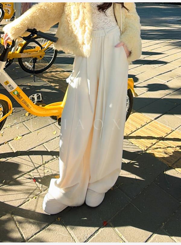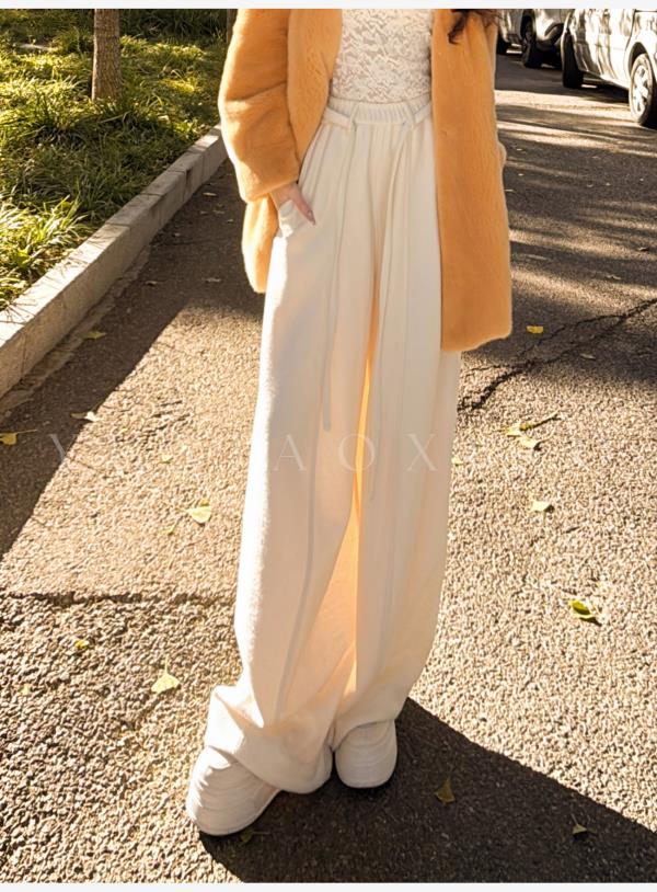 余潇潇【自在老钱】绵羊毛混纺垂坠慵懒风百搭舒适抽绳阔腿休闲裤