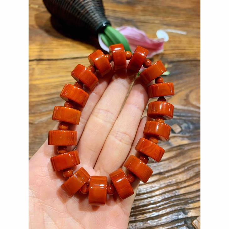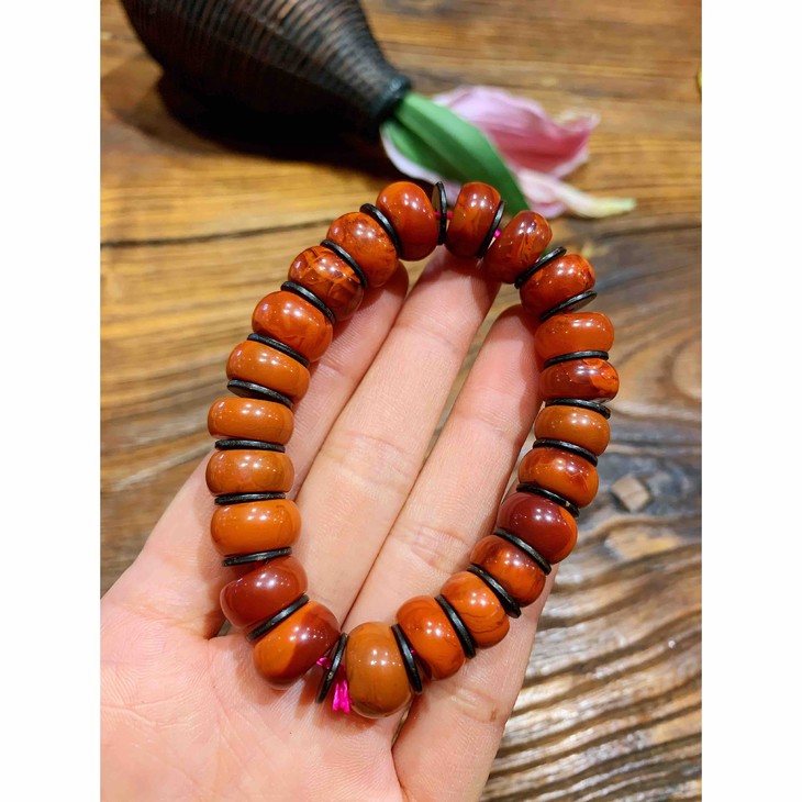 南红玛瑙 蜜蜡金珀手链手串 男女士蜜蜡圆珠桶珠手链蜜蜡手镯