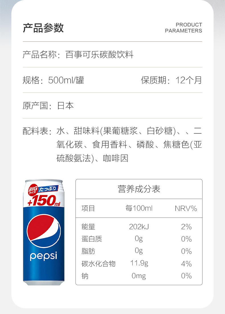 百事可乐碳酸饮料500ml/020967 蓝罐增量版劲爽口感