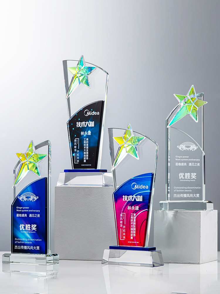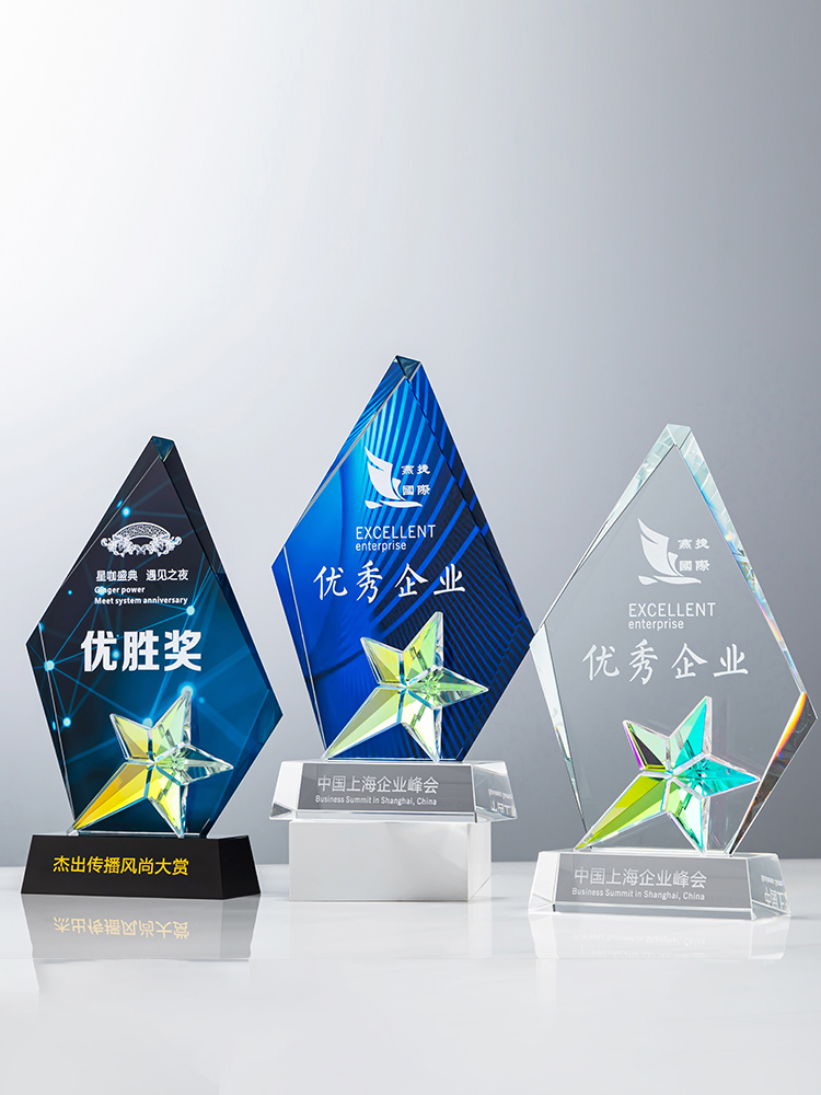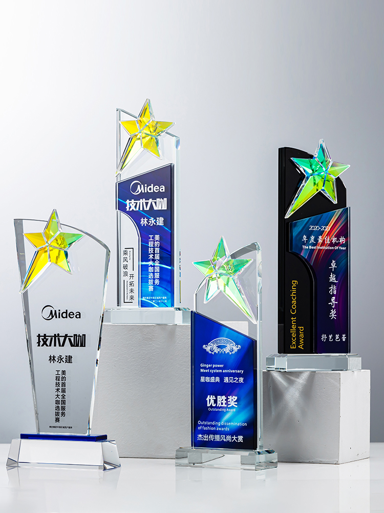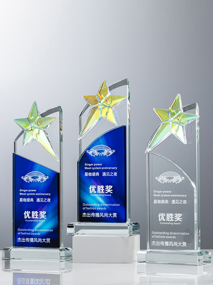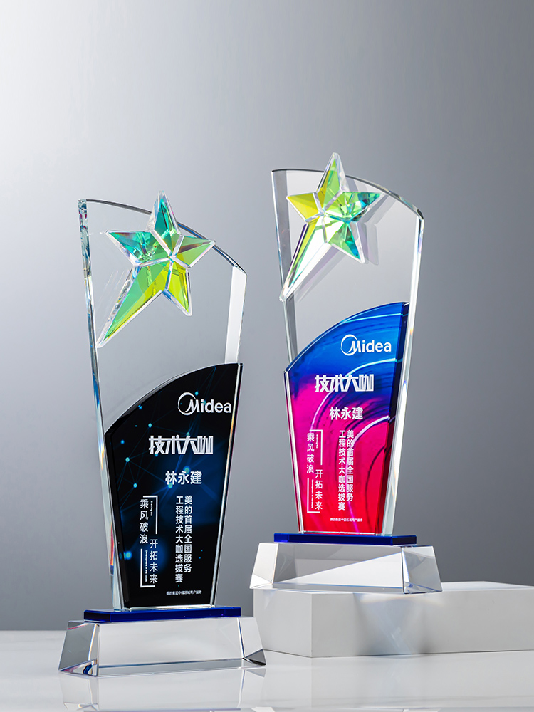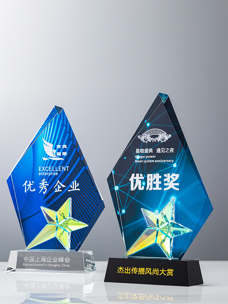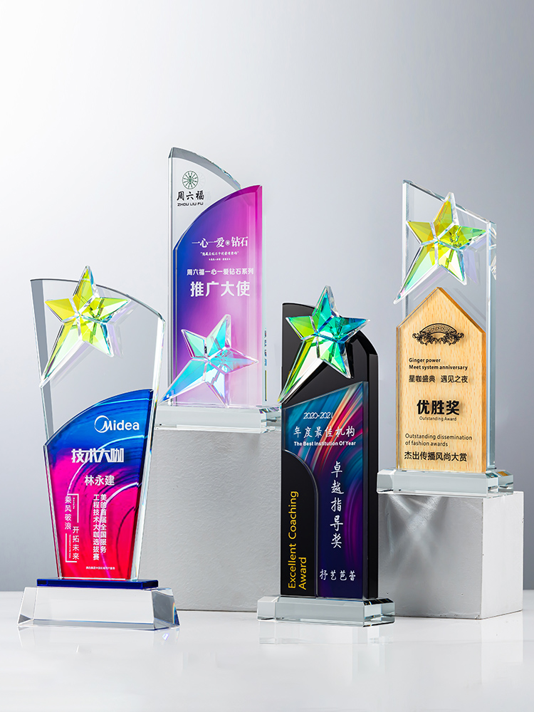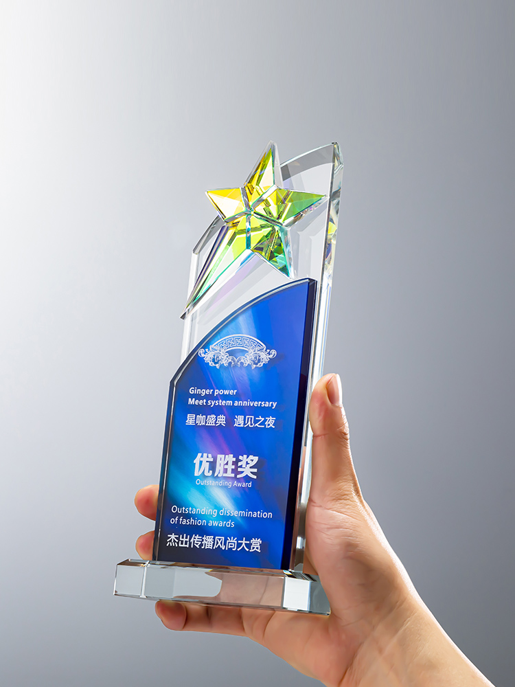 定制水晶奖杯炫彩五角星公司年会优秀员工运动会颁奖高档彩印纪念