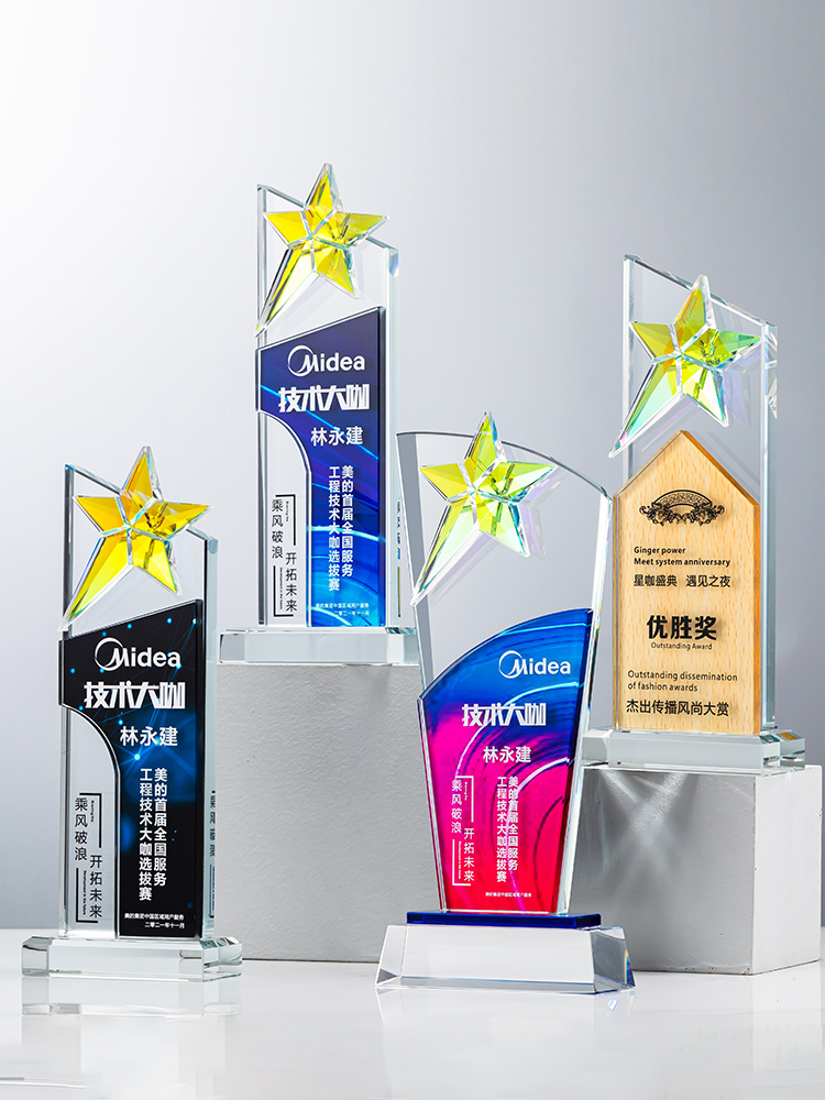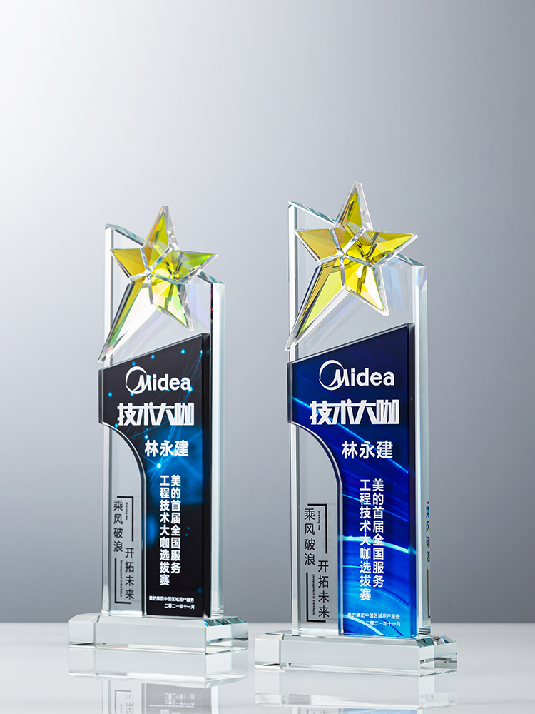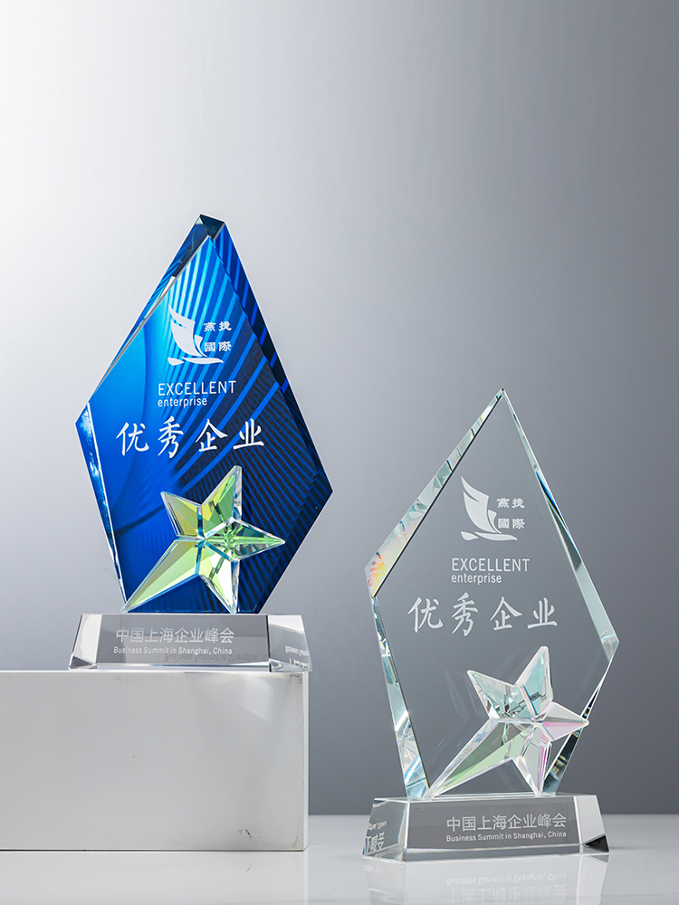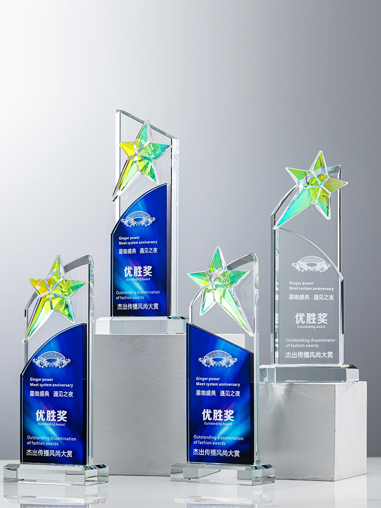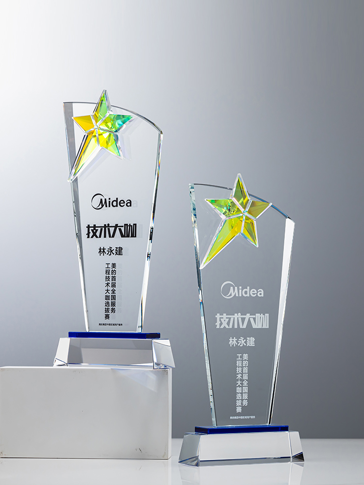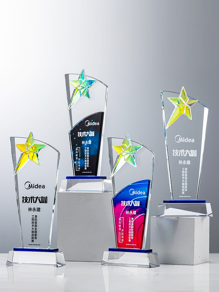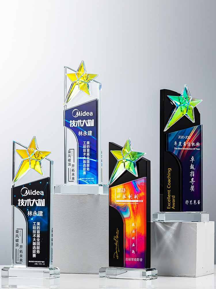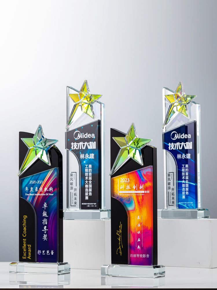 定制水晶奖杯炫彩五角星公司年会优秀员工运动会颁奖高档彩印纪念