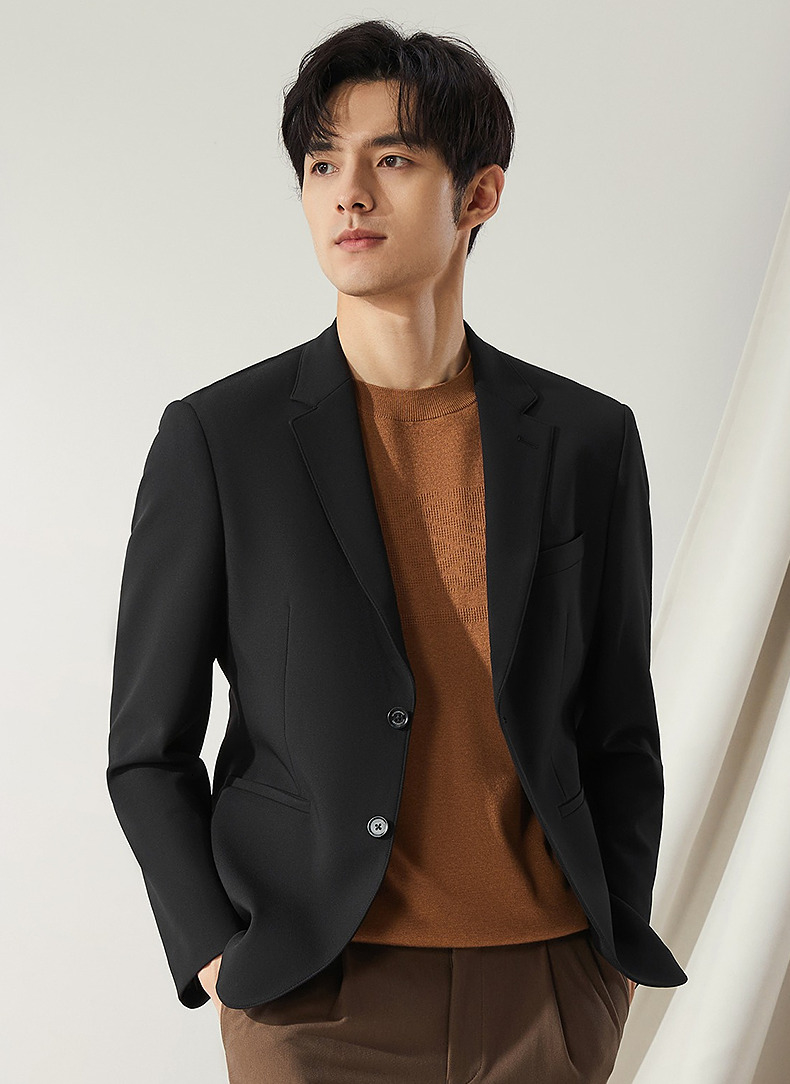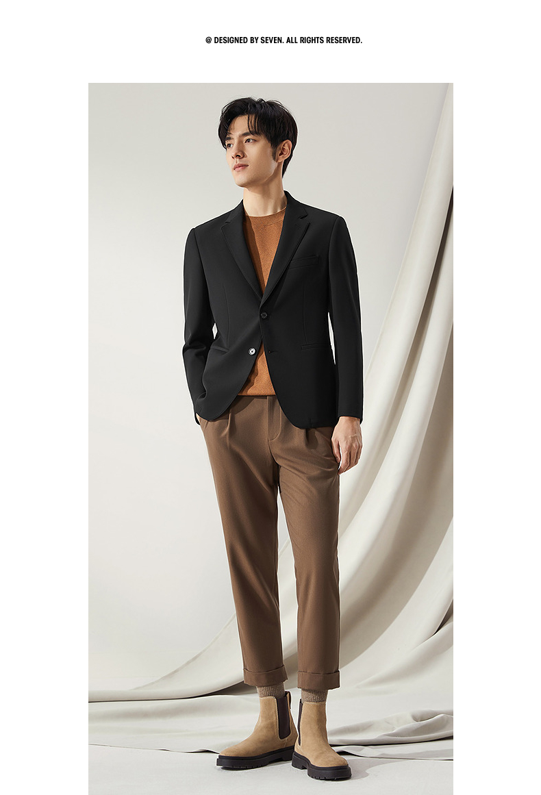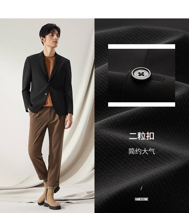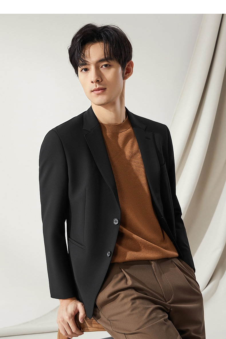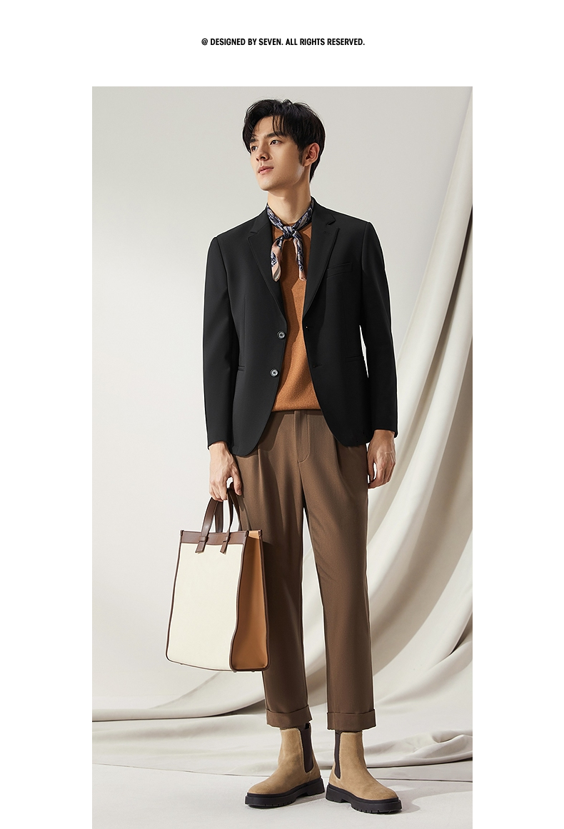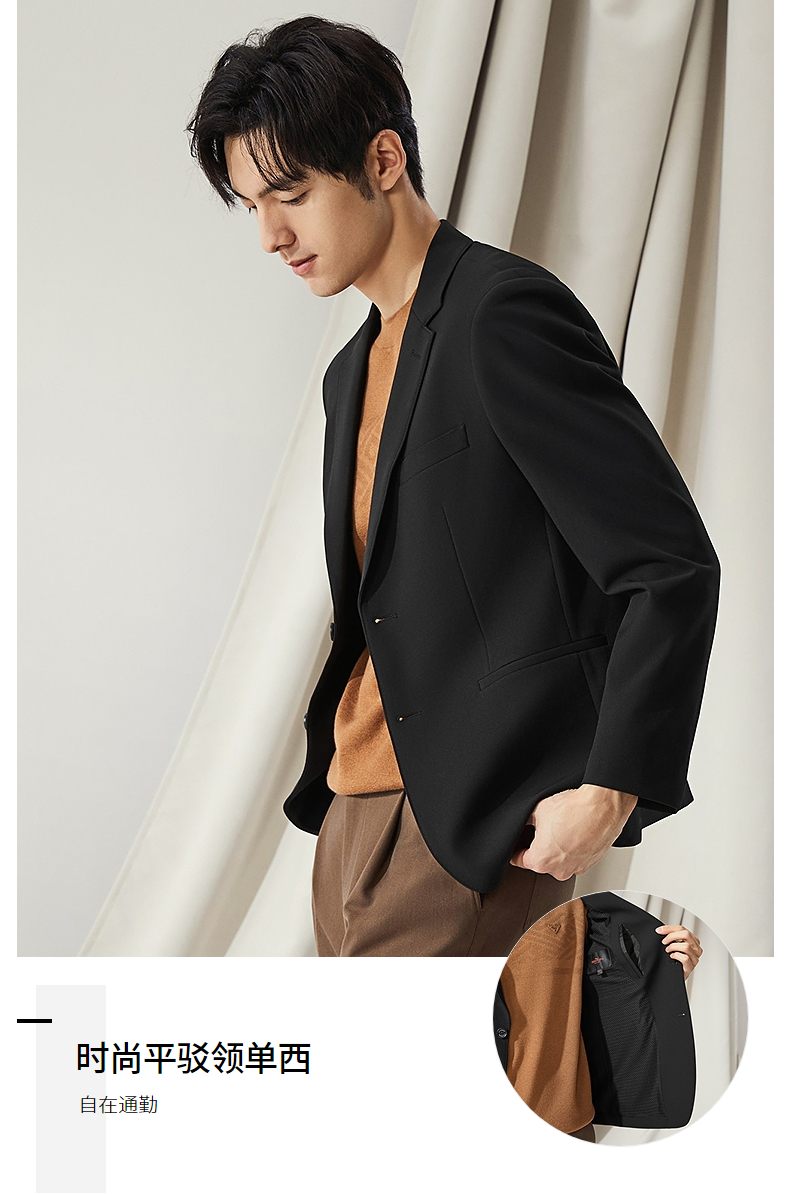 【高端系列】柒牌西装男士2024秋季新款面试新郎结婚礼服黑色西服 127C70460