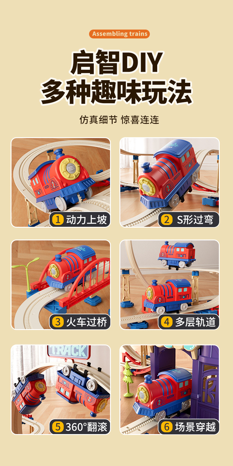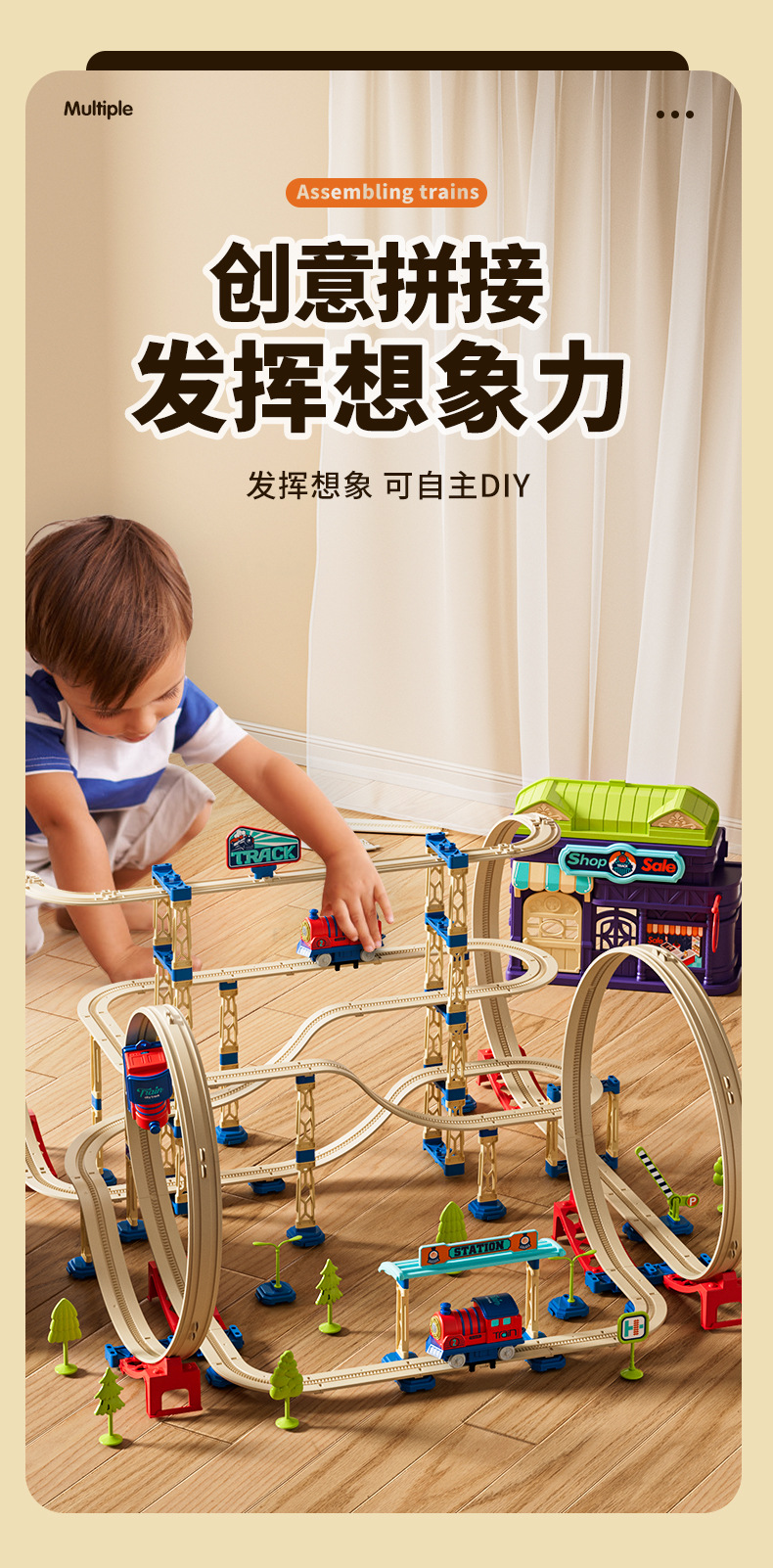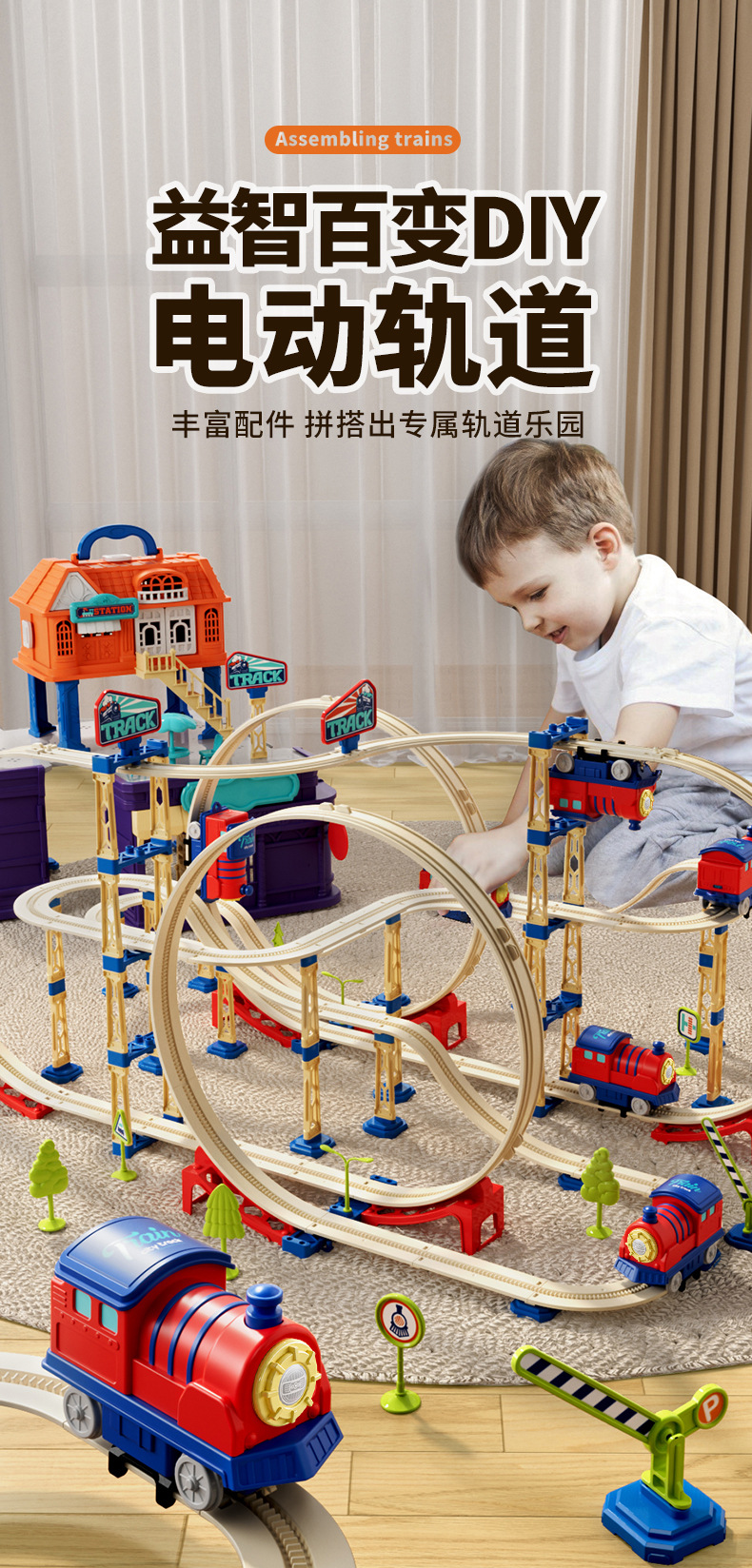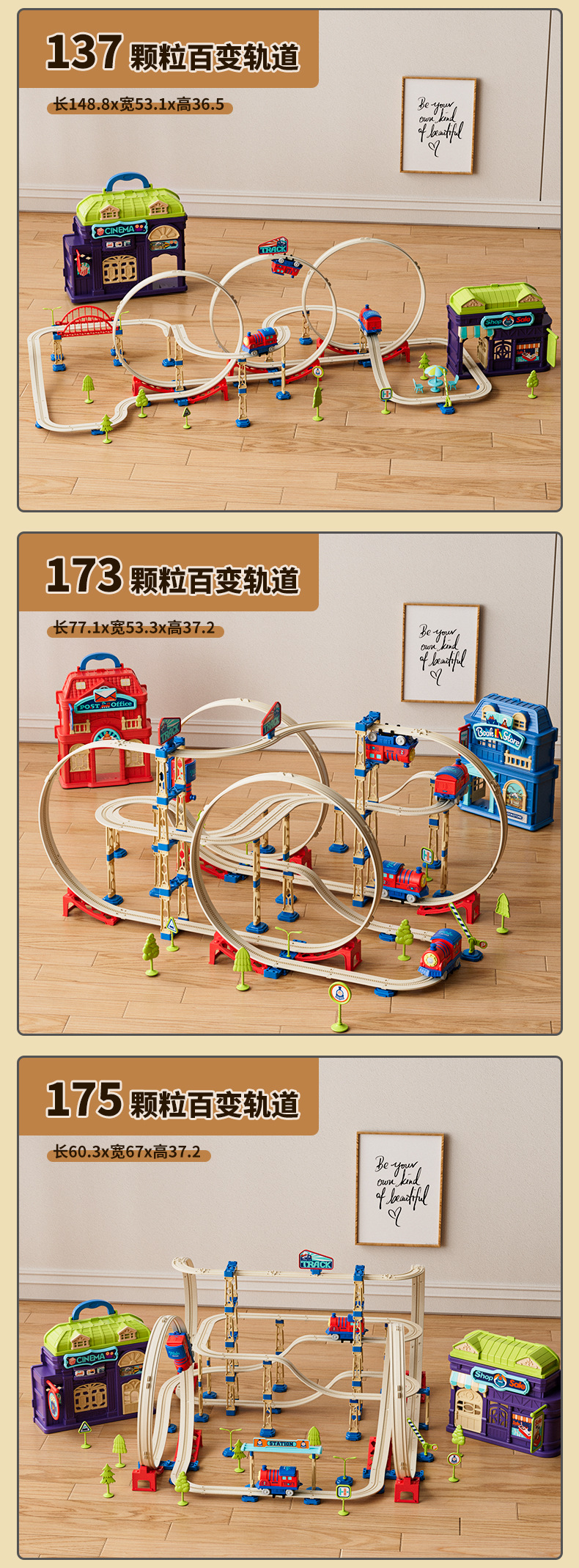 【拼搭出专属轨道乐园】益智百变DIY电动轨道 城市轨道交通滑行轨道车大冒险 129颗粒百变轨道玩具