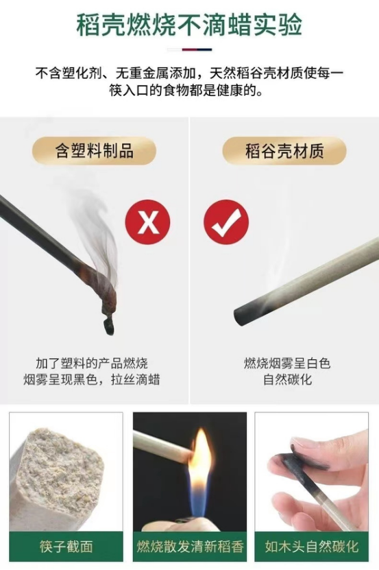 采用食用级稻壳材质,高温高压一体成型。这种天然稻壳可以再生利用,可降解、无公害,非常的绿色环保! 抑菌、不发霉的稻壳筷来了!不沾油、易清洗、无异味,解锁筷子的终极奥义~~
