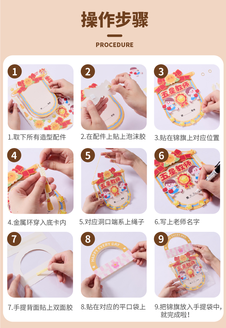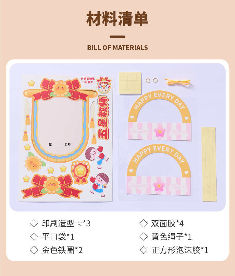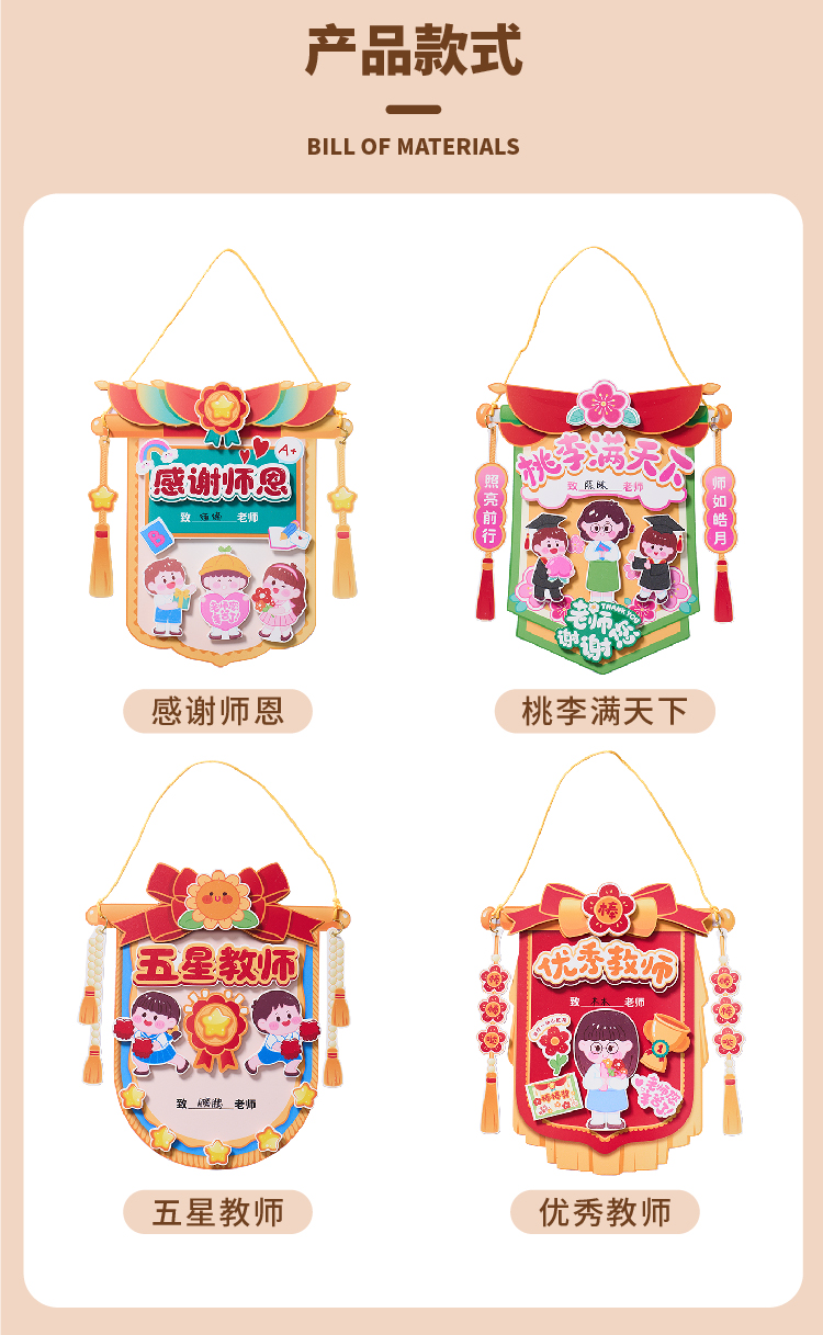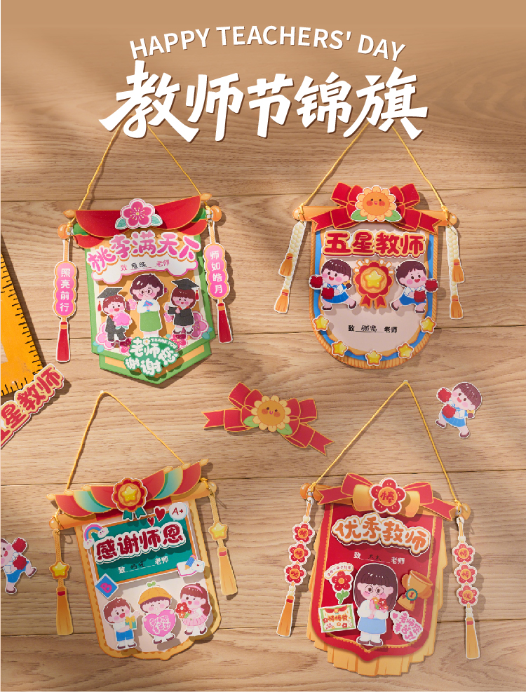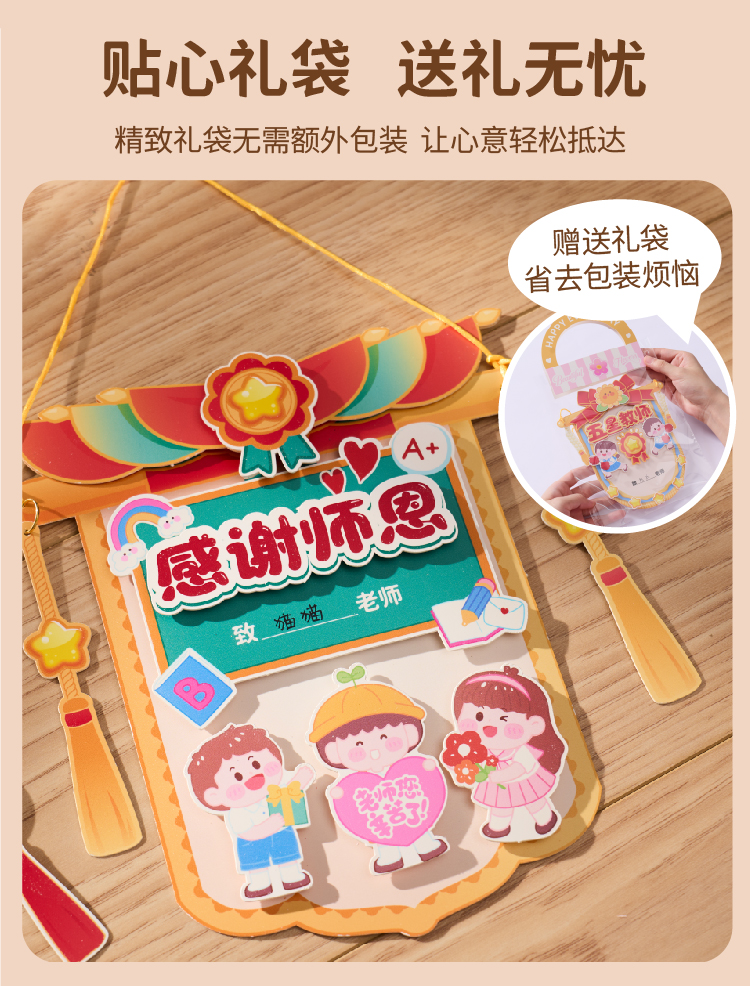 【供】教师节礼物手工diy锦旗贺卡儿童制作材料包幼儿园送老师2025新款