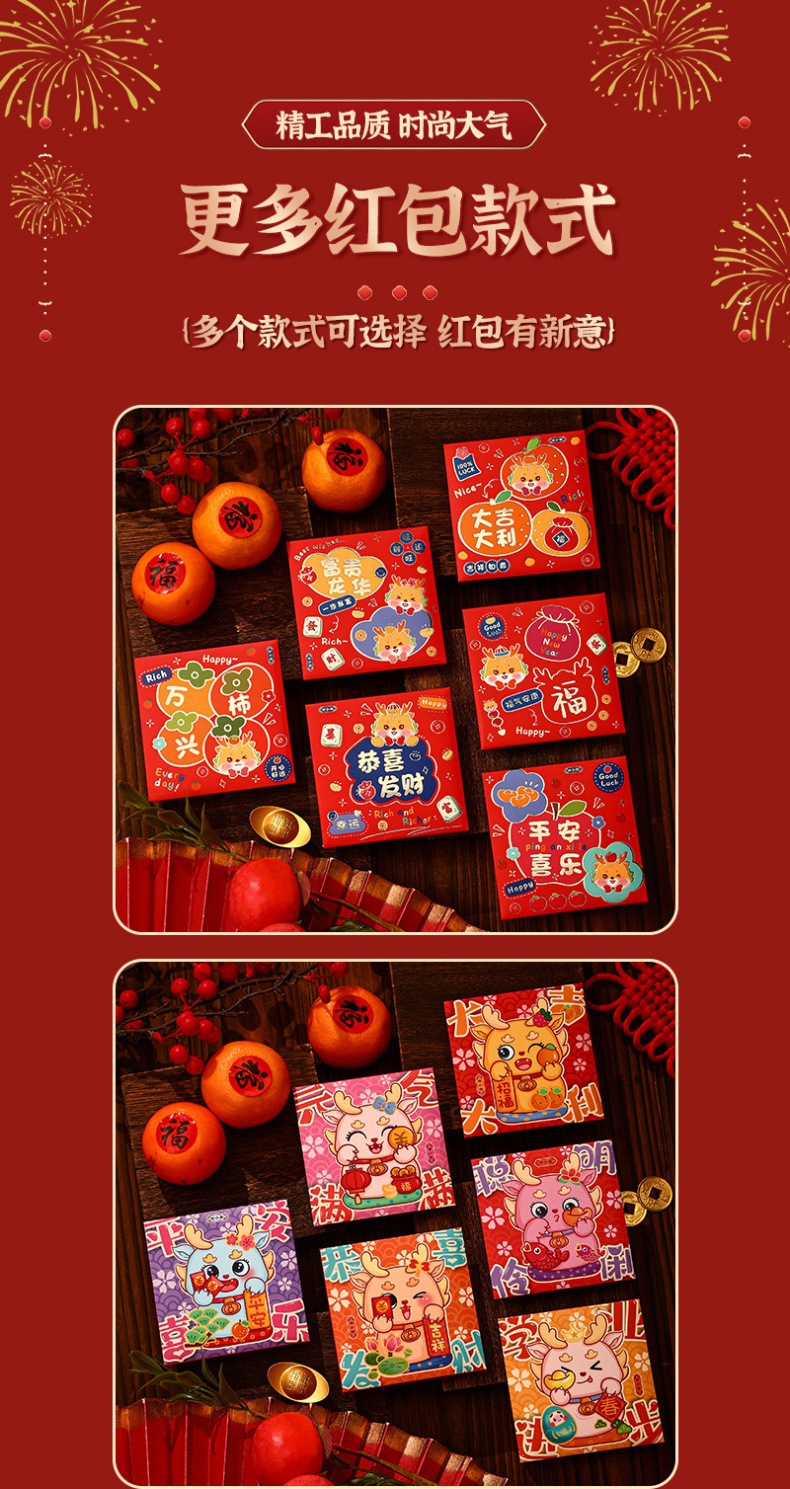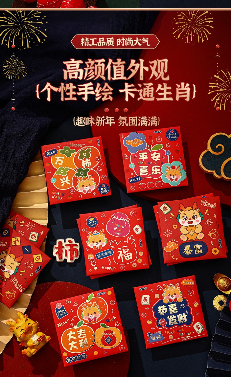 新年好物!【卡通喜品!韵味十足】卡通红包2024新款新年压岁包春节利是封个性创意龙年中式儿童可爱,高颜值外观,个性手绘,卡通生肖。共庆龙年佳节!