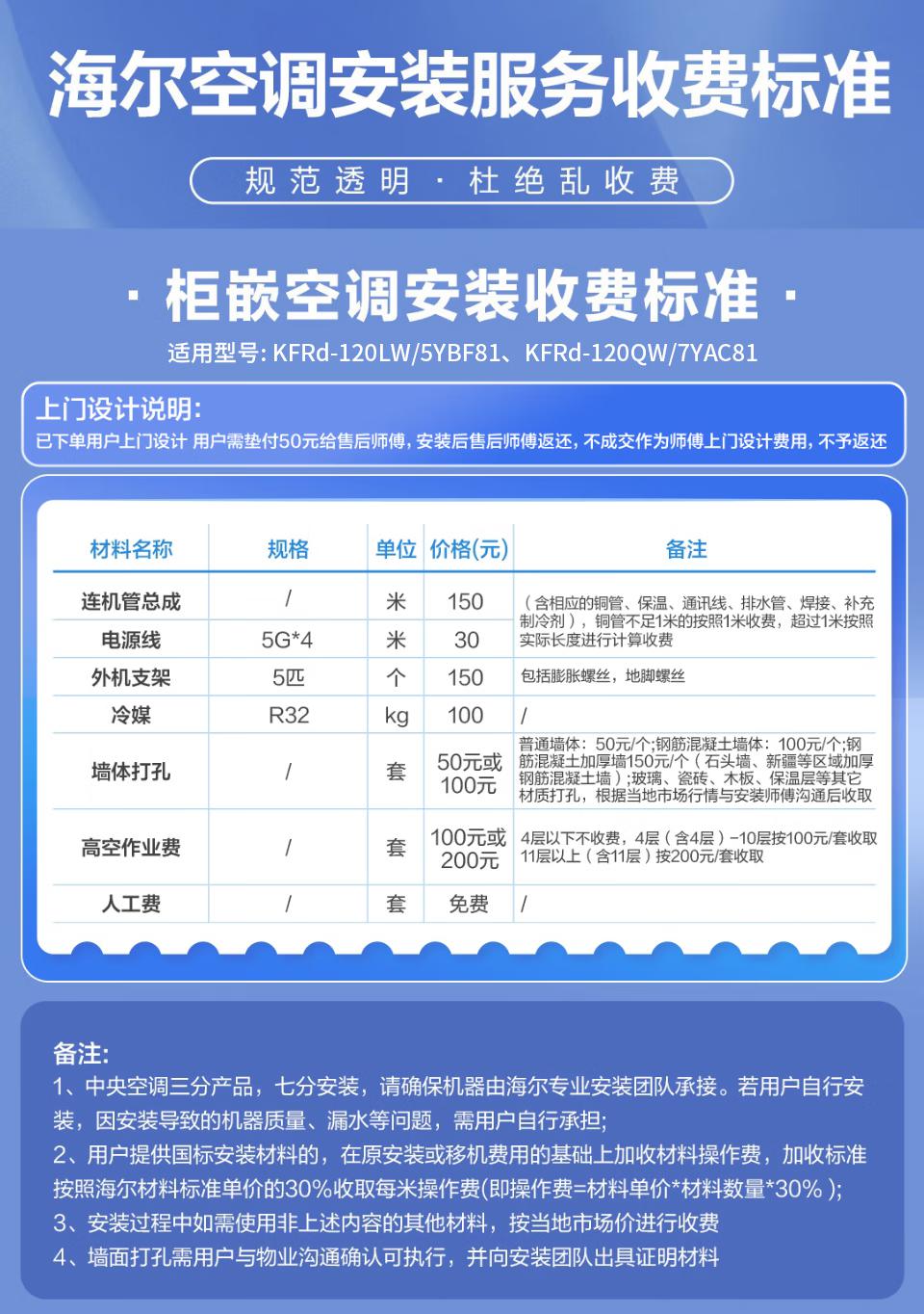 海尔中央空调快速冷暖商用一键防直吹智能冷暖5匹变频柜式空调柜机380V一级能效KFRd-120LW/5YBF81 5匹 一级能效 立柜式380V澎湃风量