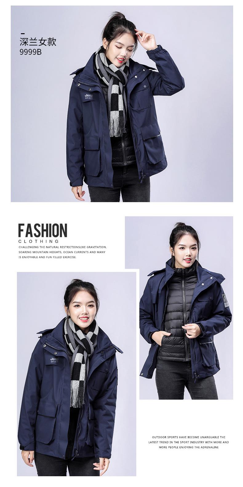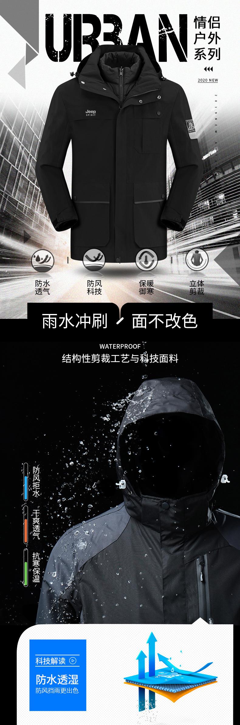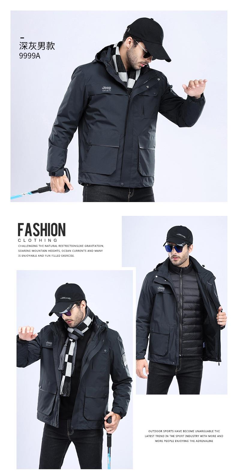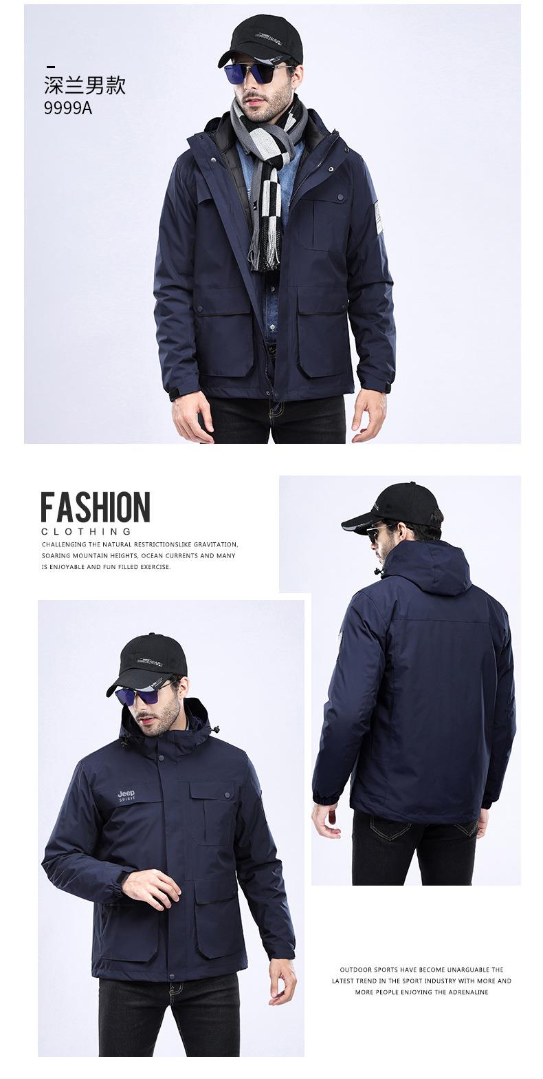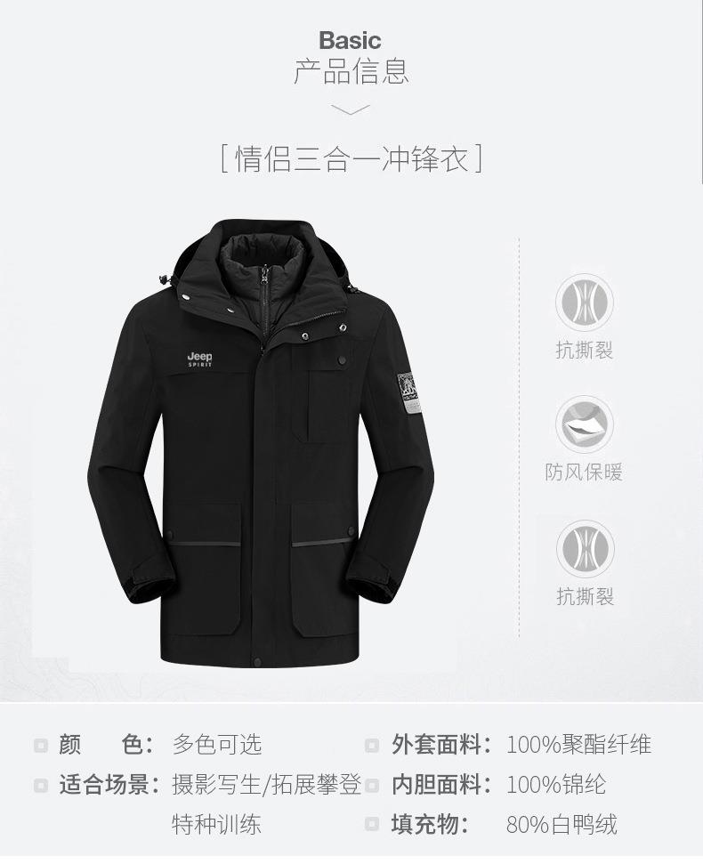 JEEP SPIRIT冲锋衣男情侣两件套可拆卸户外加绒加厚登山服HL8866