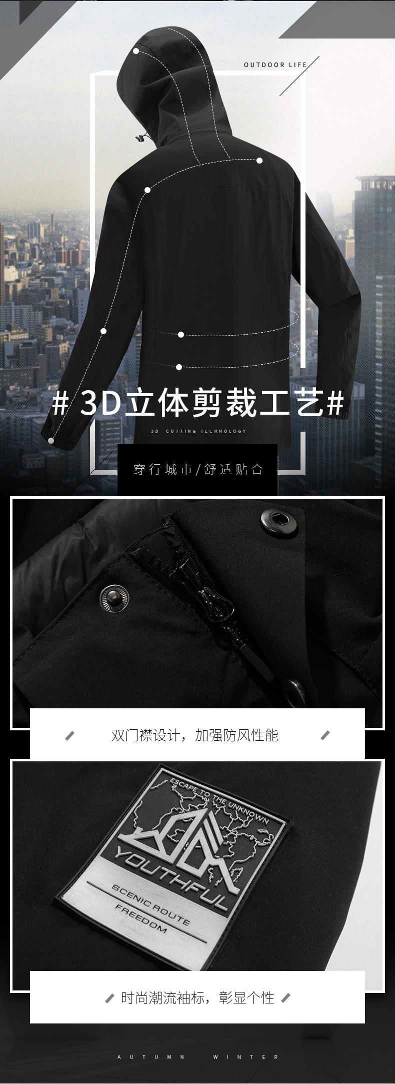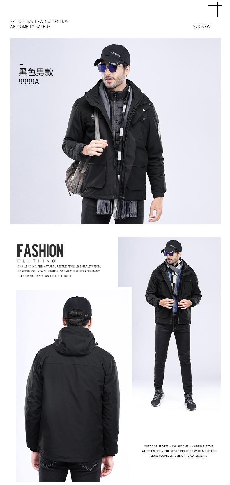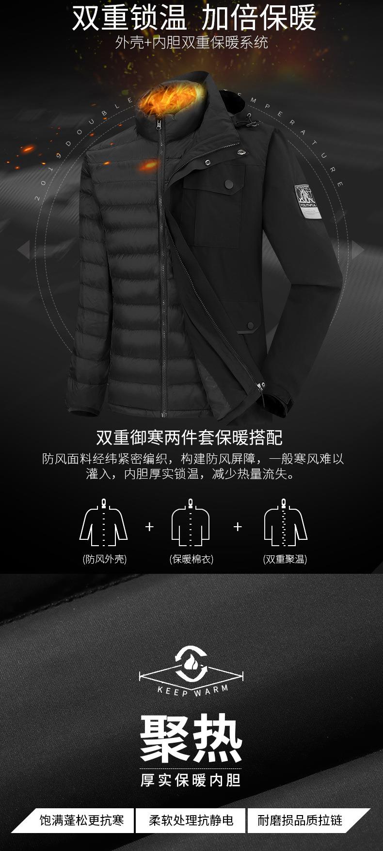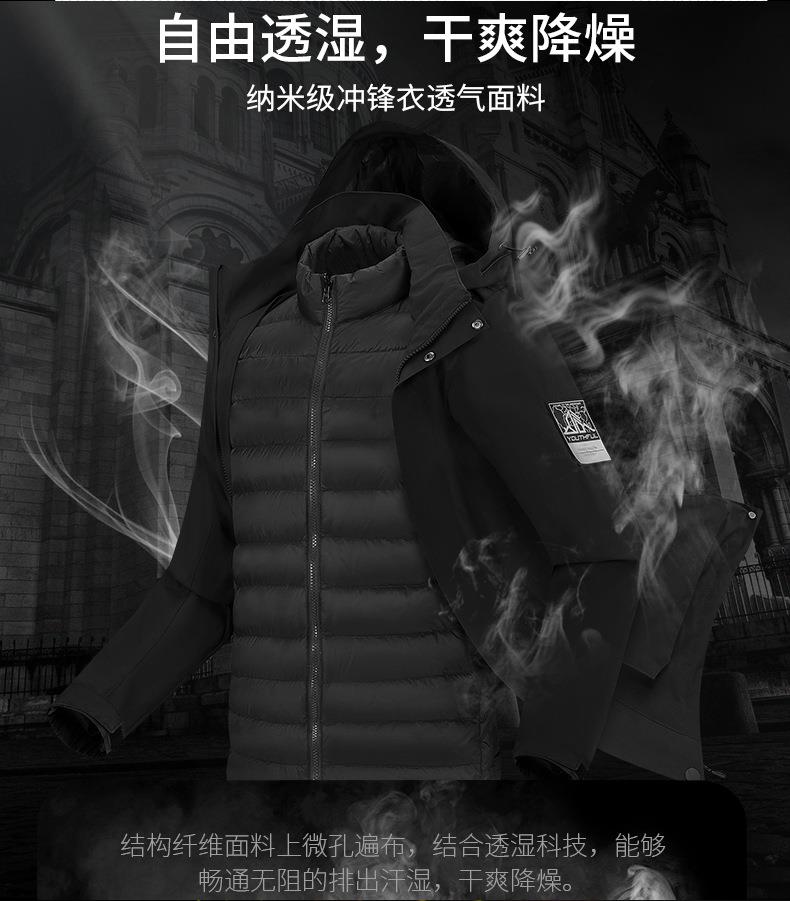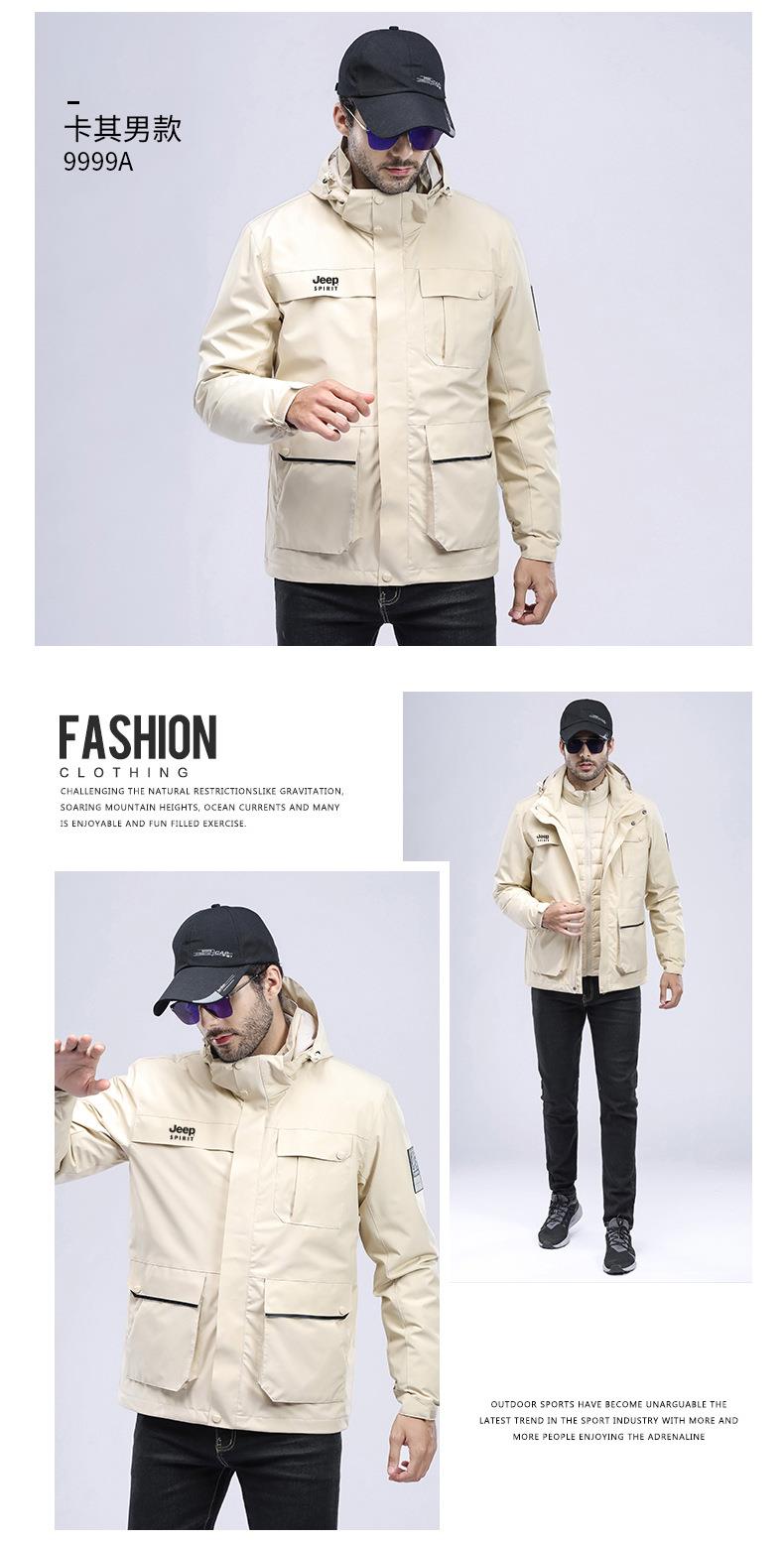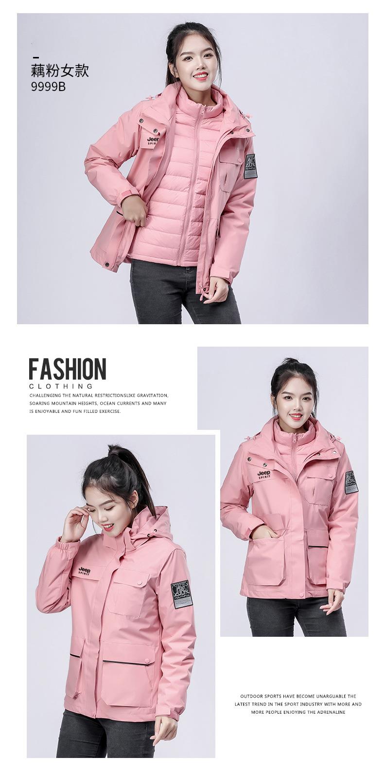 JEEP SPIRIT冲锋衣男情侣两件套可拆卸户外加绒加厚登山服HL8866