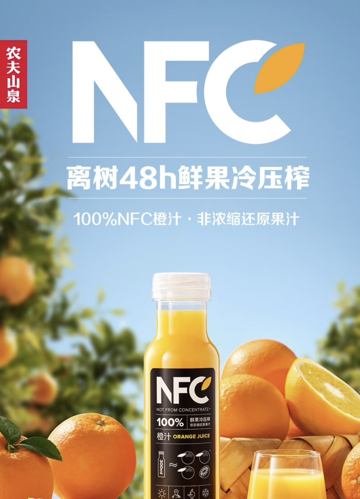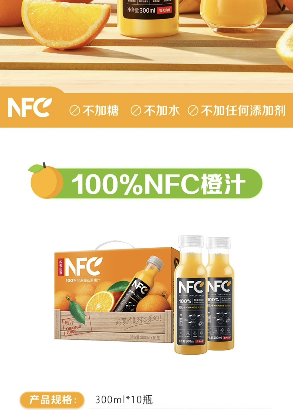 【清凉节】农夫山泉NFC橙汁果汁饮料100%鲜果冷压榨 10瓶装