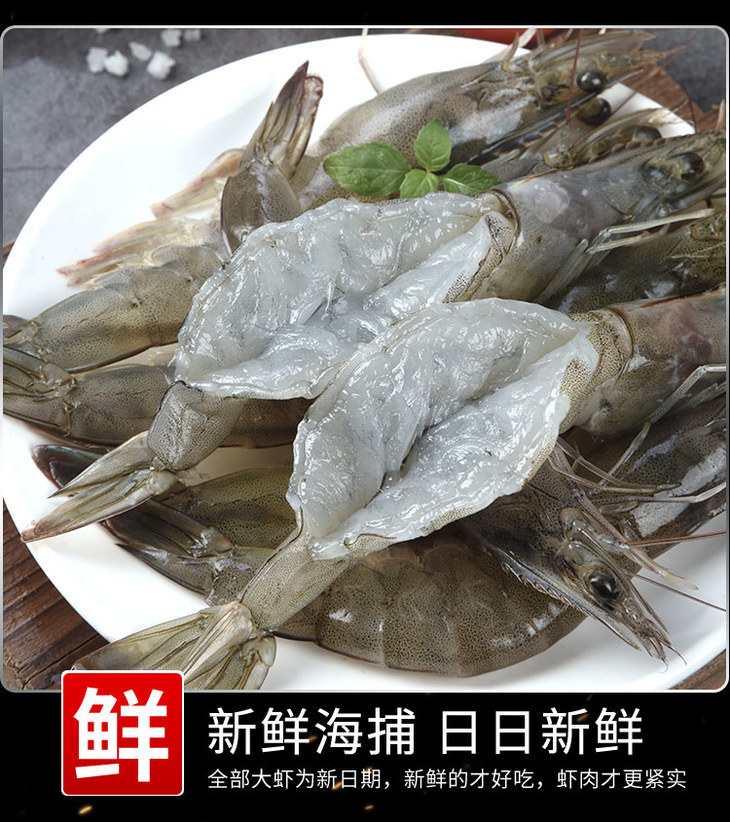 新鲜海捕大虾,液氮速冻保鲜,肉质紧实劲道,味鲜而不腻