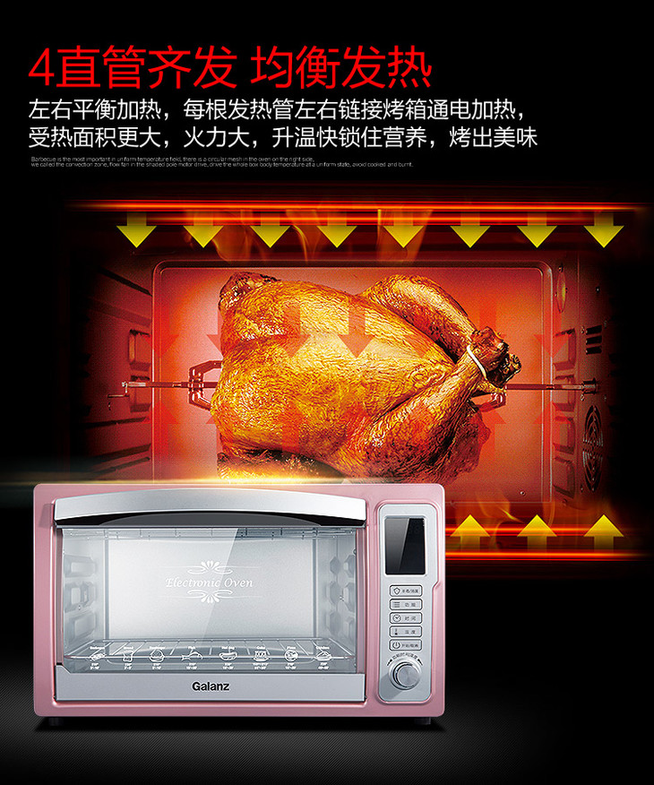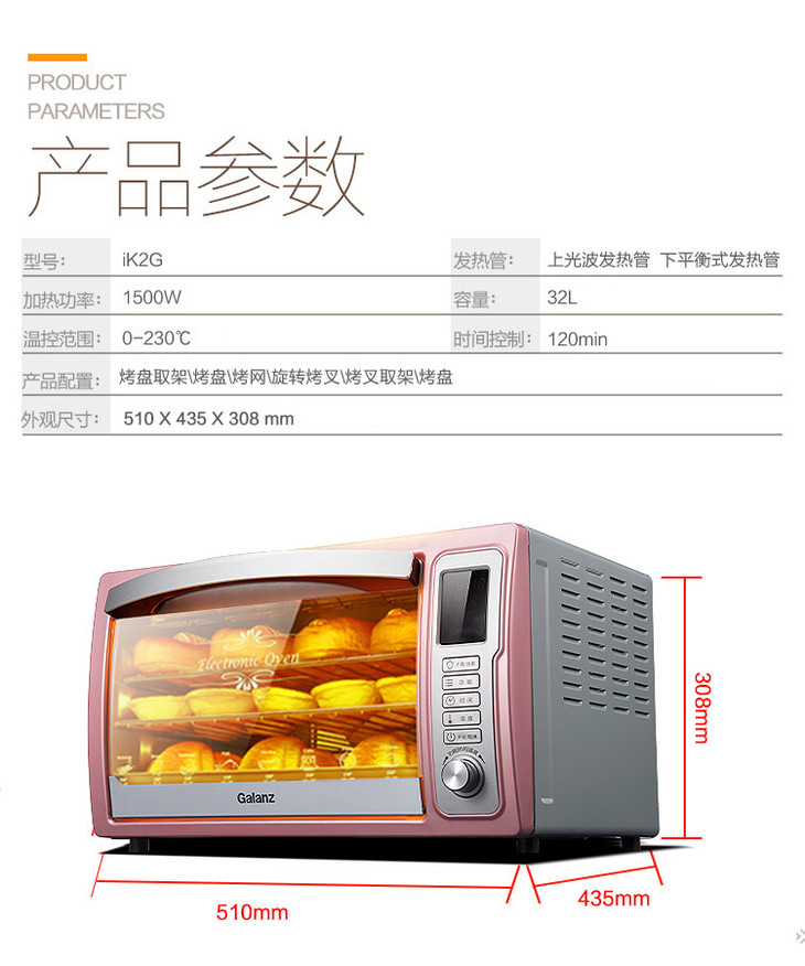 格兰仕(Galanz)家用电烤箱32升 独立控温 电 烤箱 旋转烤叉专业烘焙 热风循环 光波烧烤 iK2G