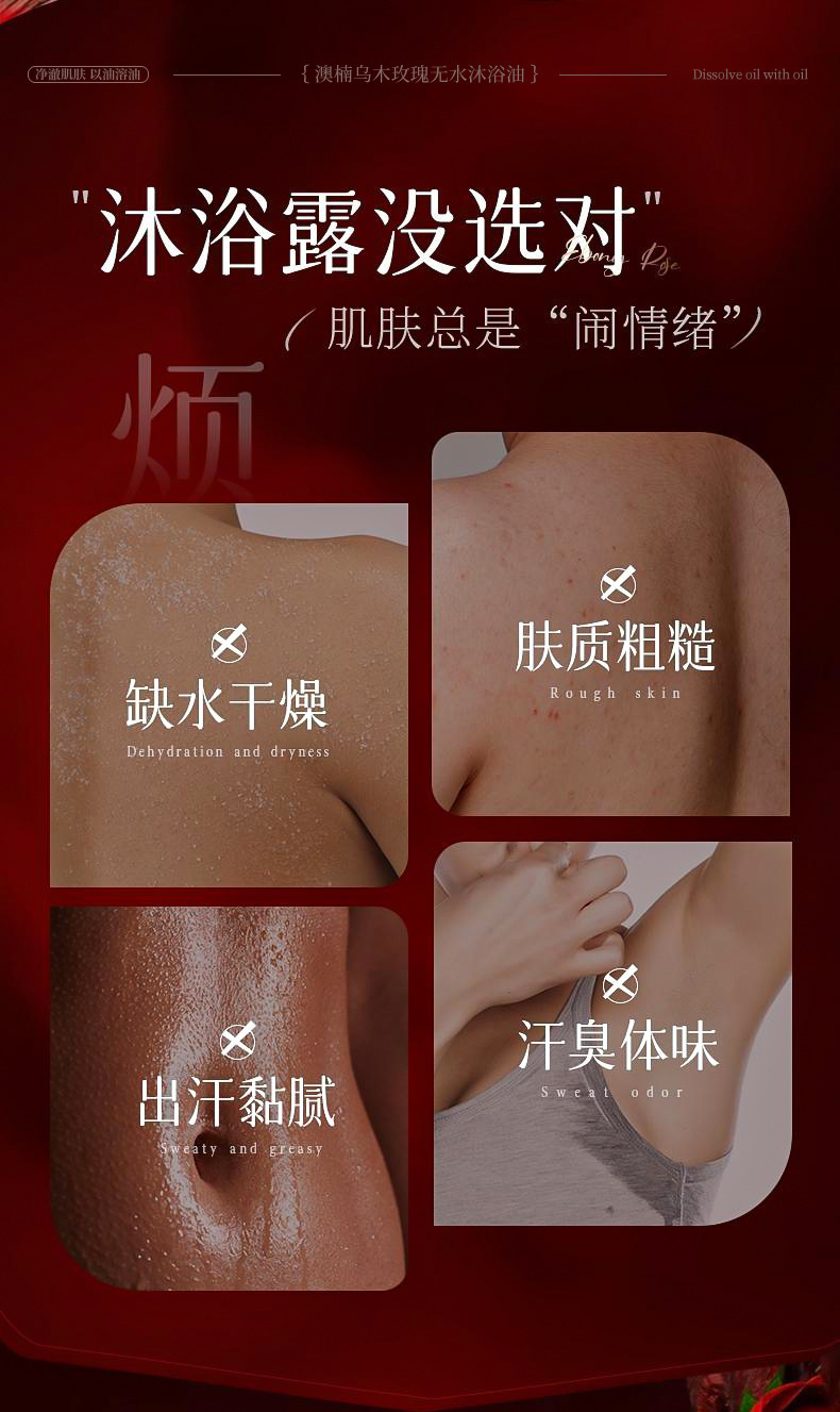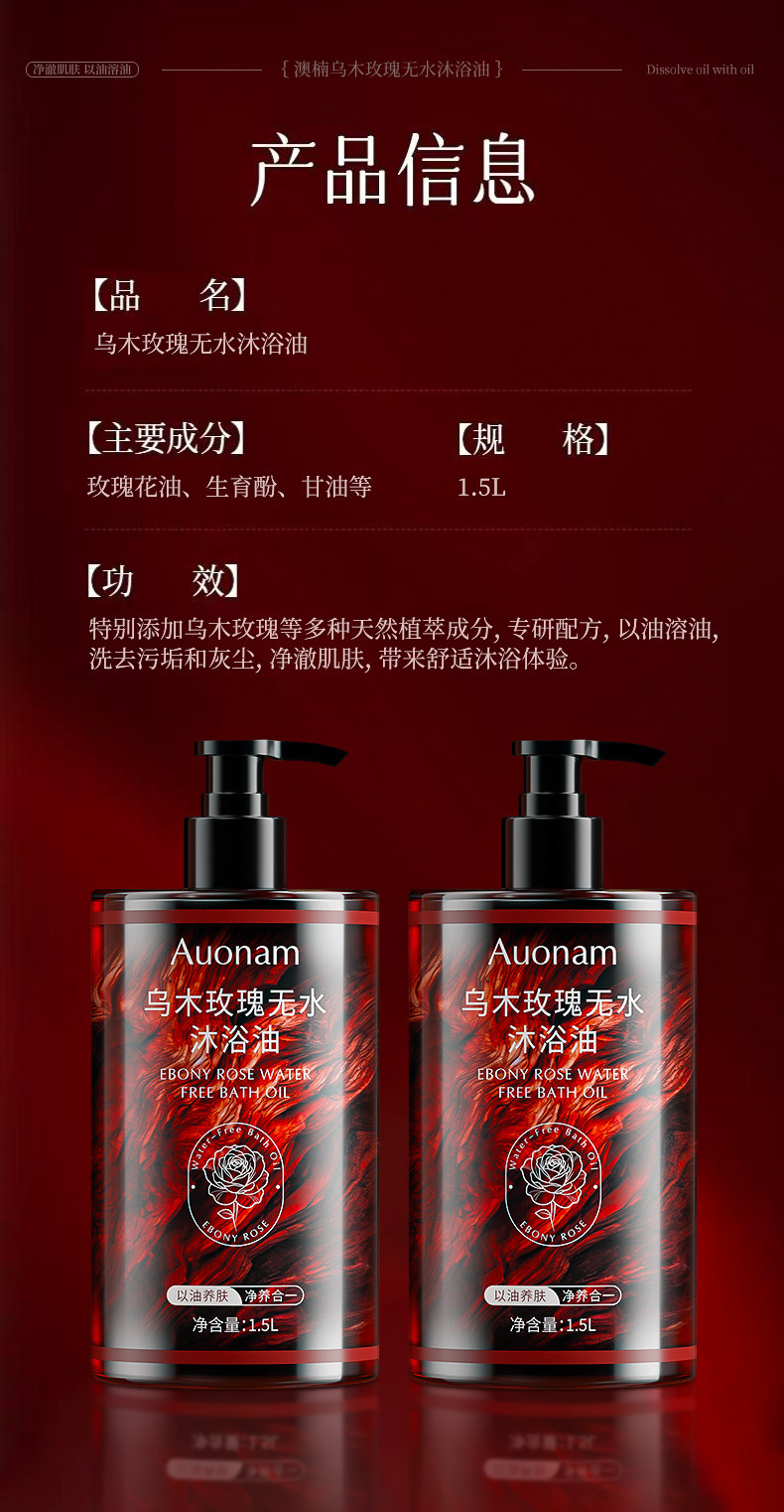 【清洁 + 护肤双效合一】乌木玫瑰无水沐浴油保湿滋润持久留香嫩肤温和清洁水润补水。xb