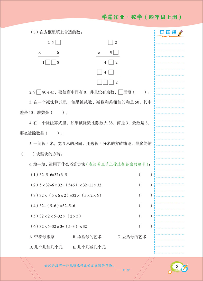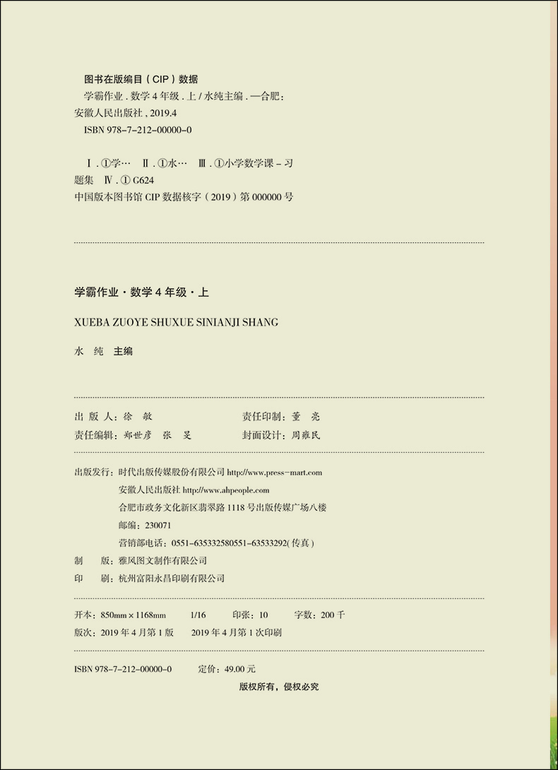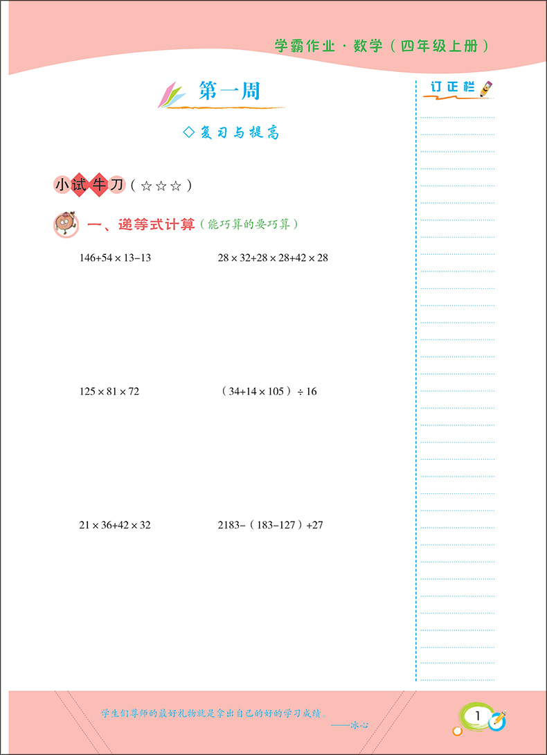 学霸作业 四年级上册/4年级第一学期 数学 含测试卷 与上海版教材配套教辅
