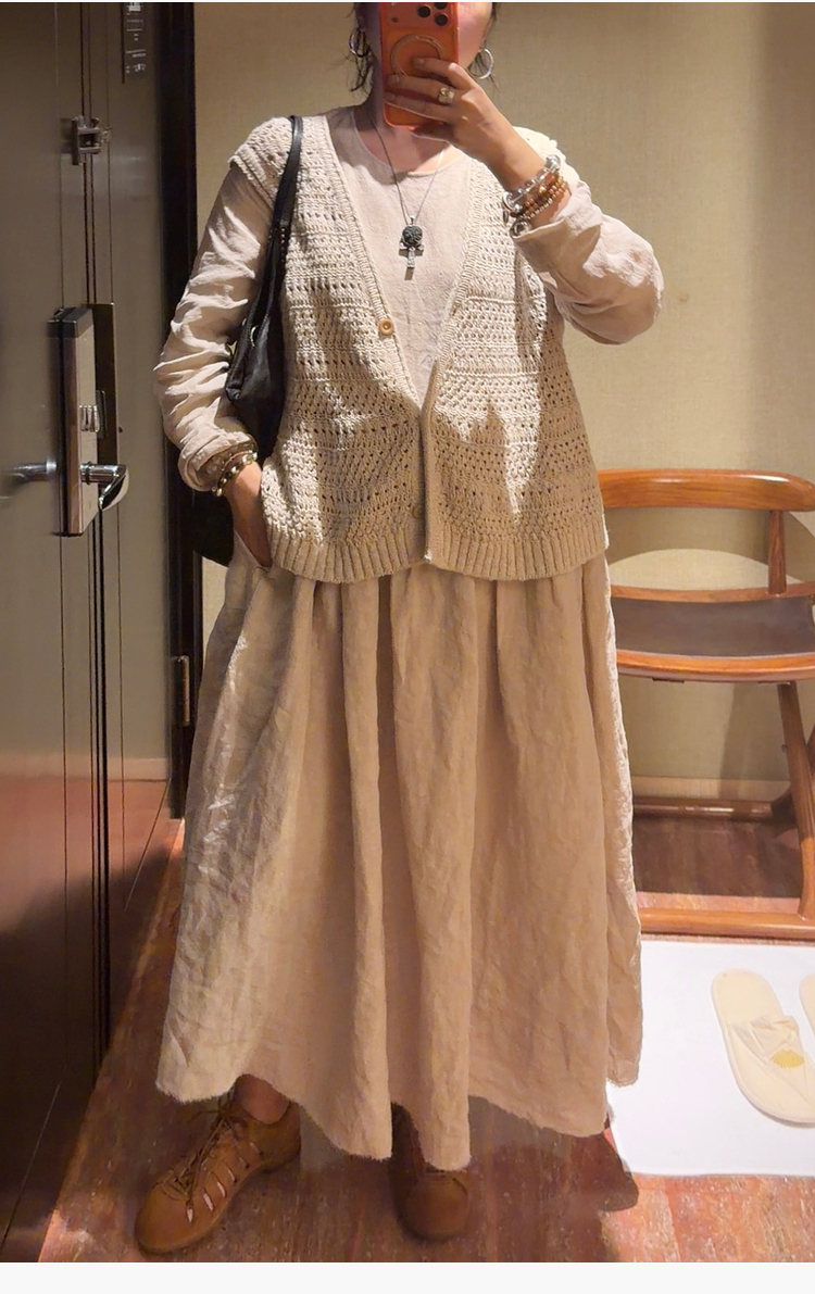 Petit Schan小闪 CLO#1090 Shaped by many strikes 多锤定音 纯亚麻成衣染色宽松文艺感连衣裙