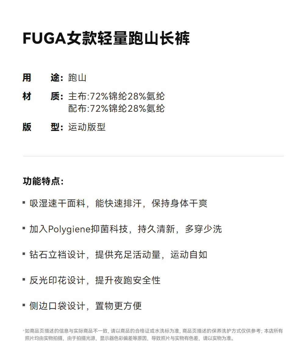 KAILAS凯乐石 FUGA女款轻量跑山长裤 KG2525406【Z】